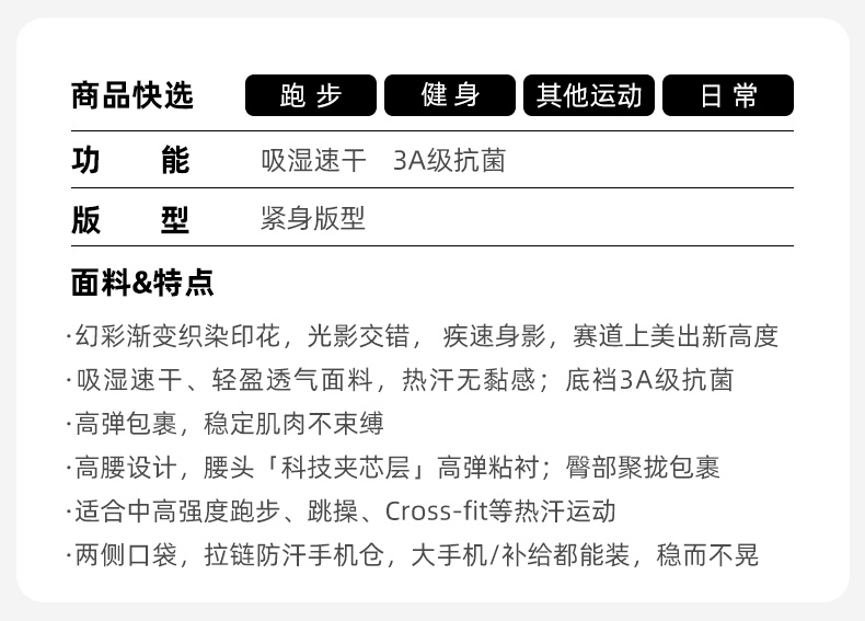 马孔多女子印花紧身长裤 更轻盈 高弹包裹持久不卸力 舒适包裹,防臀腿肌肉抖动 时尚印花吸睛百搭 赛场/运动赚足回头率 适合跑步、跳操、Cross-fit等多场景热汗运动