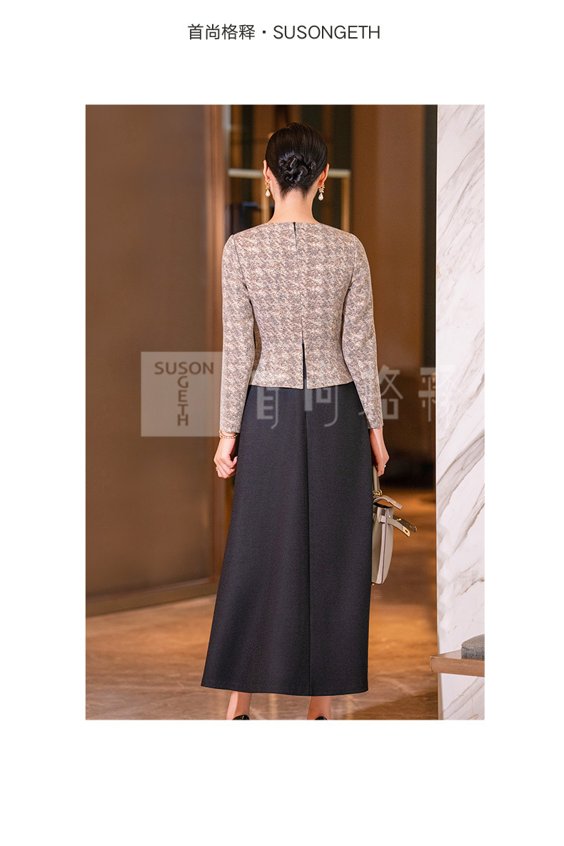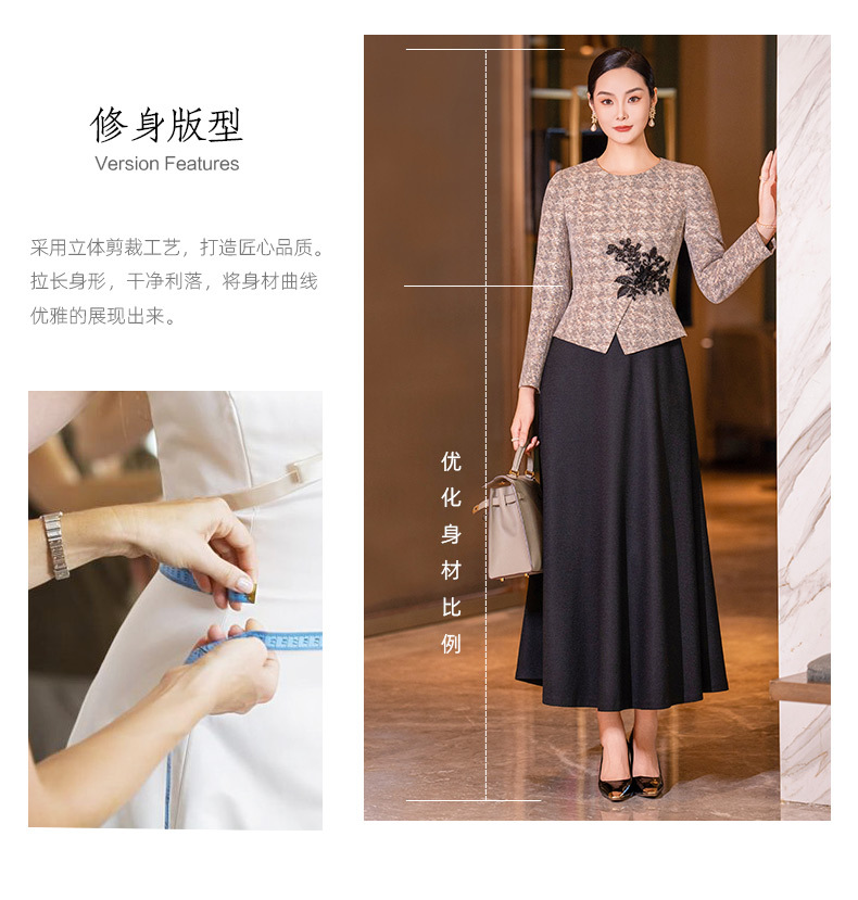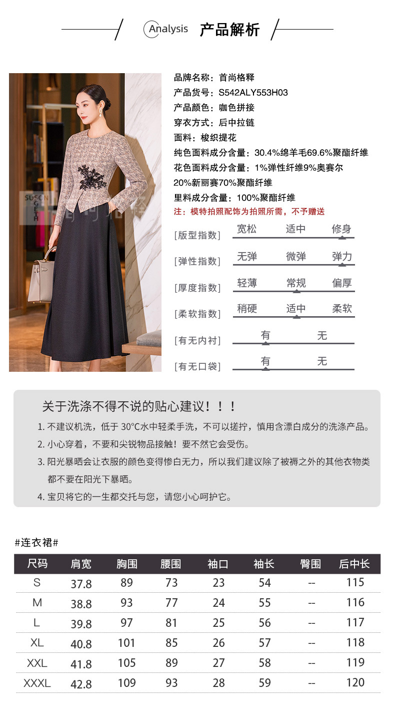 YBY 553H03咖色拼接毛呢连衣裙气质羊毛修身显瘦假两件大摆裙