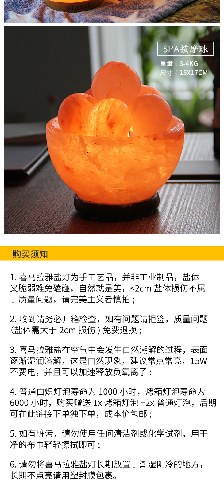 喜马拉雅盐灯 | 含开关1个灯泡3个 释压聚集能量场 负氧离子 空间净化 氛围灯