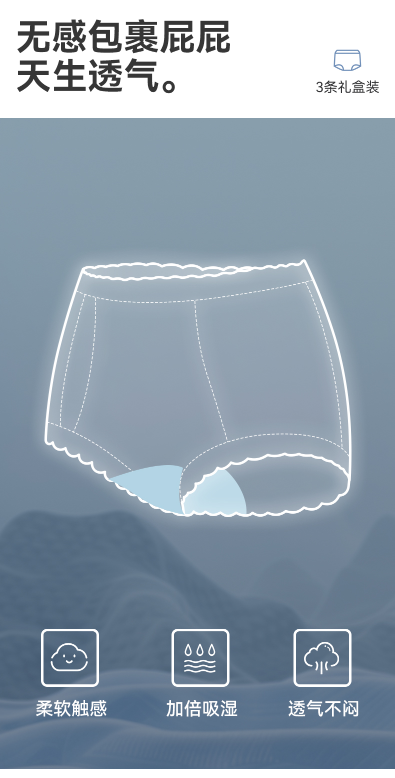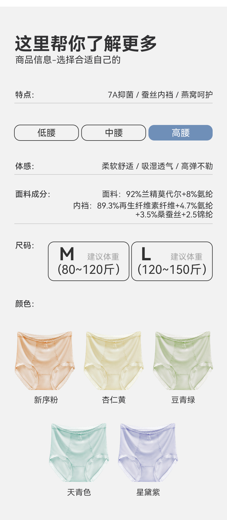 彗星天使7A抑菌智能温感高弹不勒腰经期养护燕窝蚕丝内裤F12#