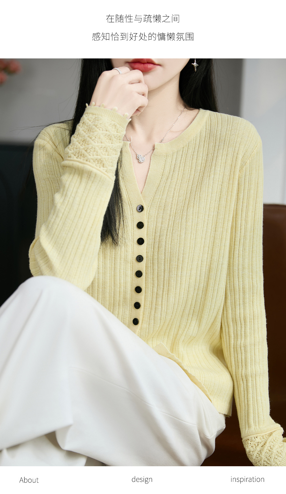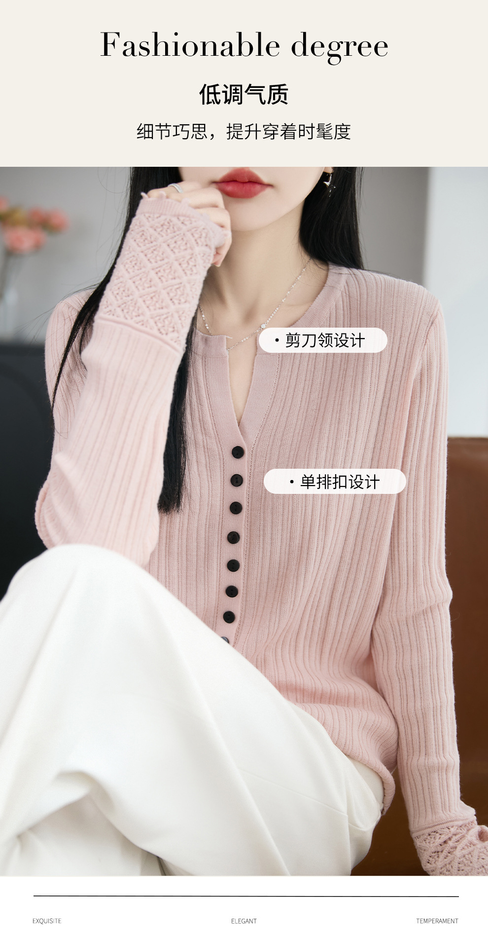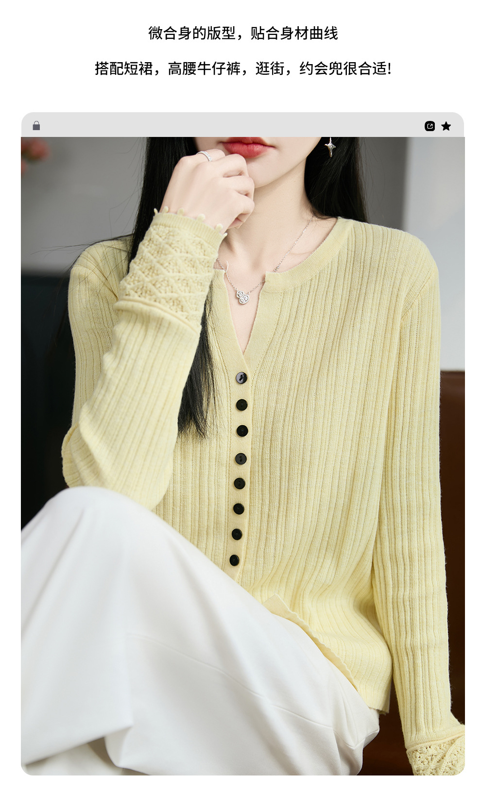 百媚生 V领针织衫女修身显瘦坑条开衫FA-895A-40