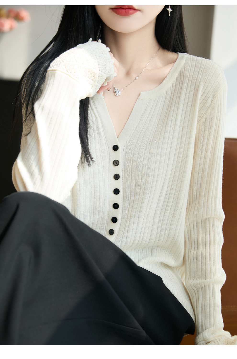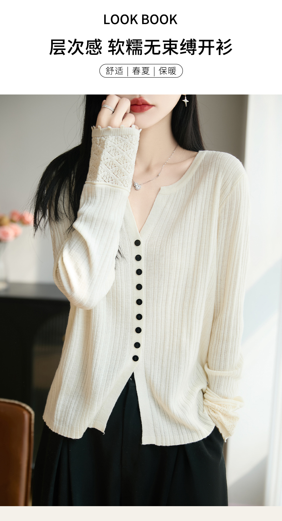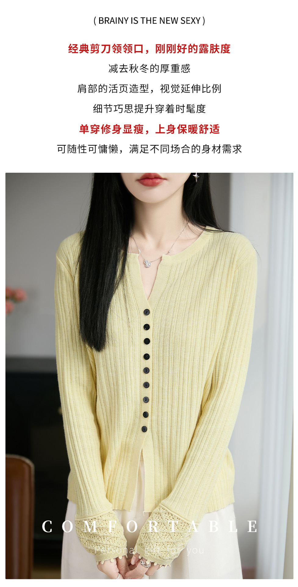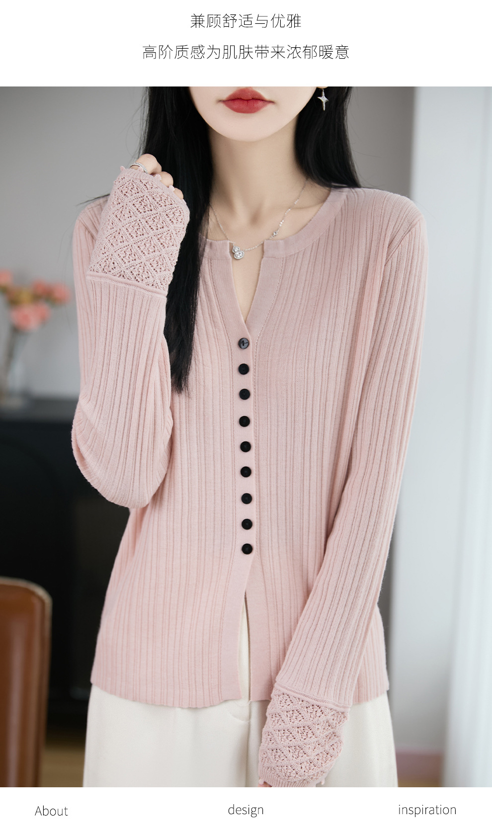 百媚生 V领针织衫女修身显瘦坑条开衫FA-895A-40