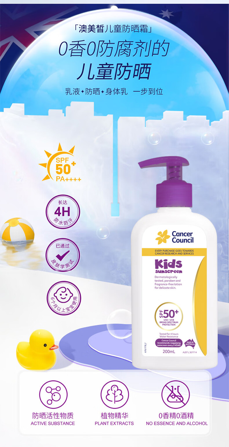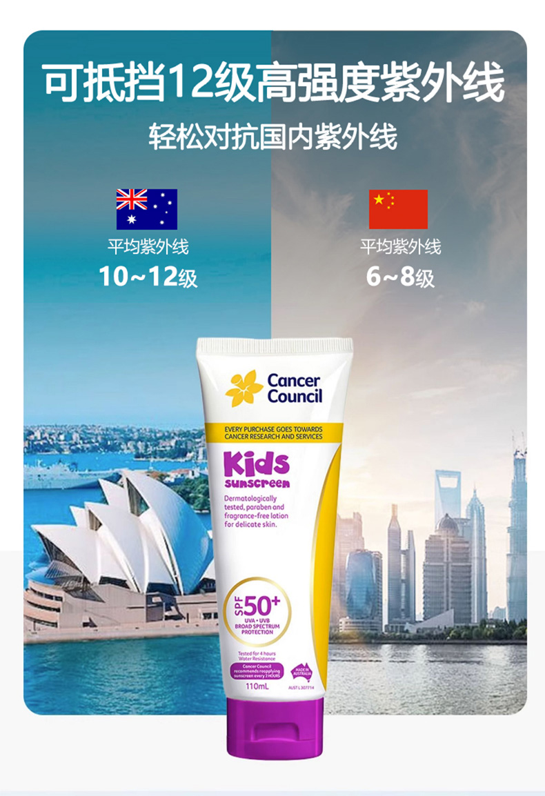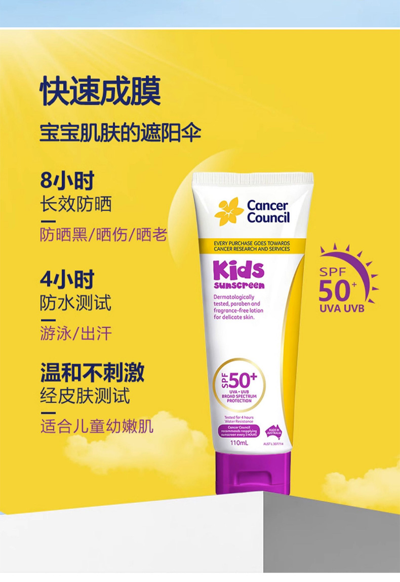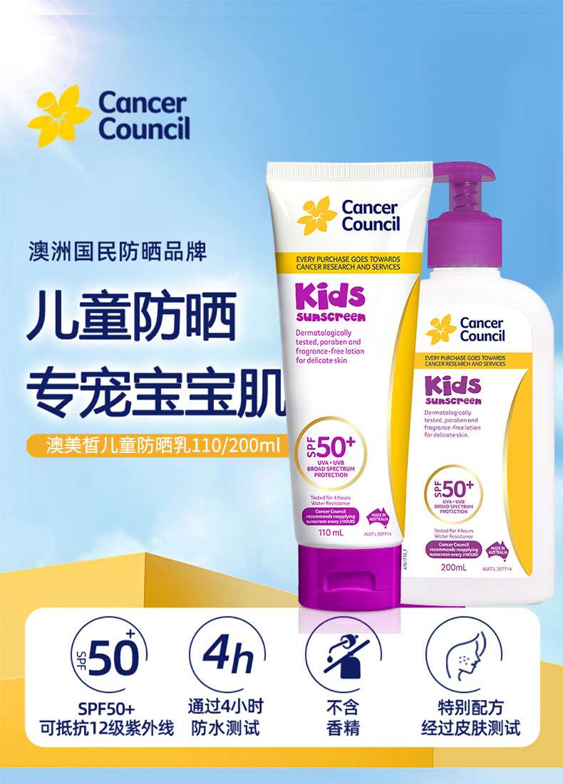 澳洲Cancer Council澳美皙儿童型防晒霜SPF50+200 110ml