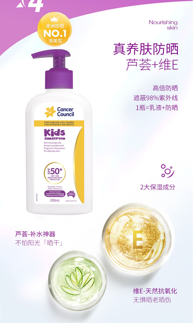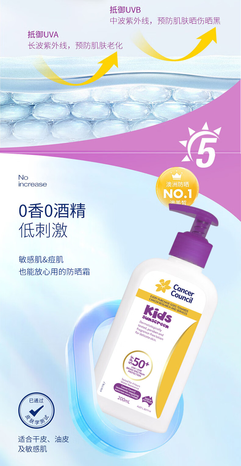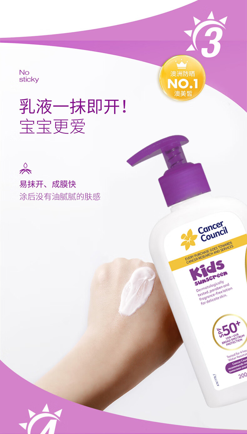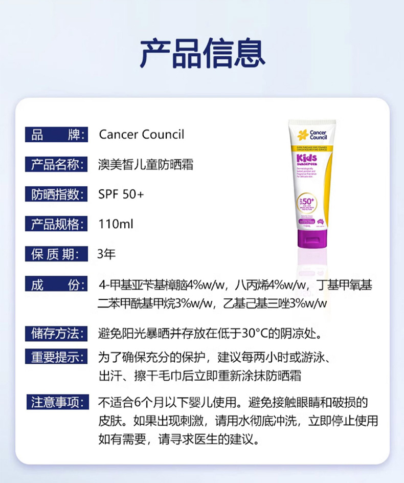 澳洲Cancer Council澳美皙儿童型防晒霜SPF50+200 110ml