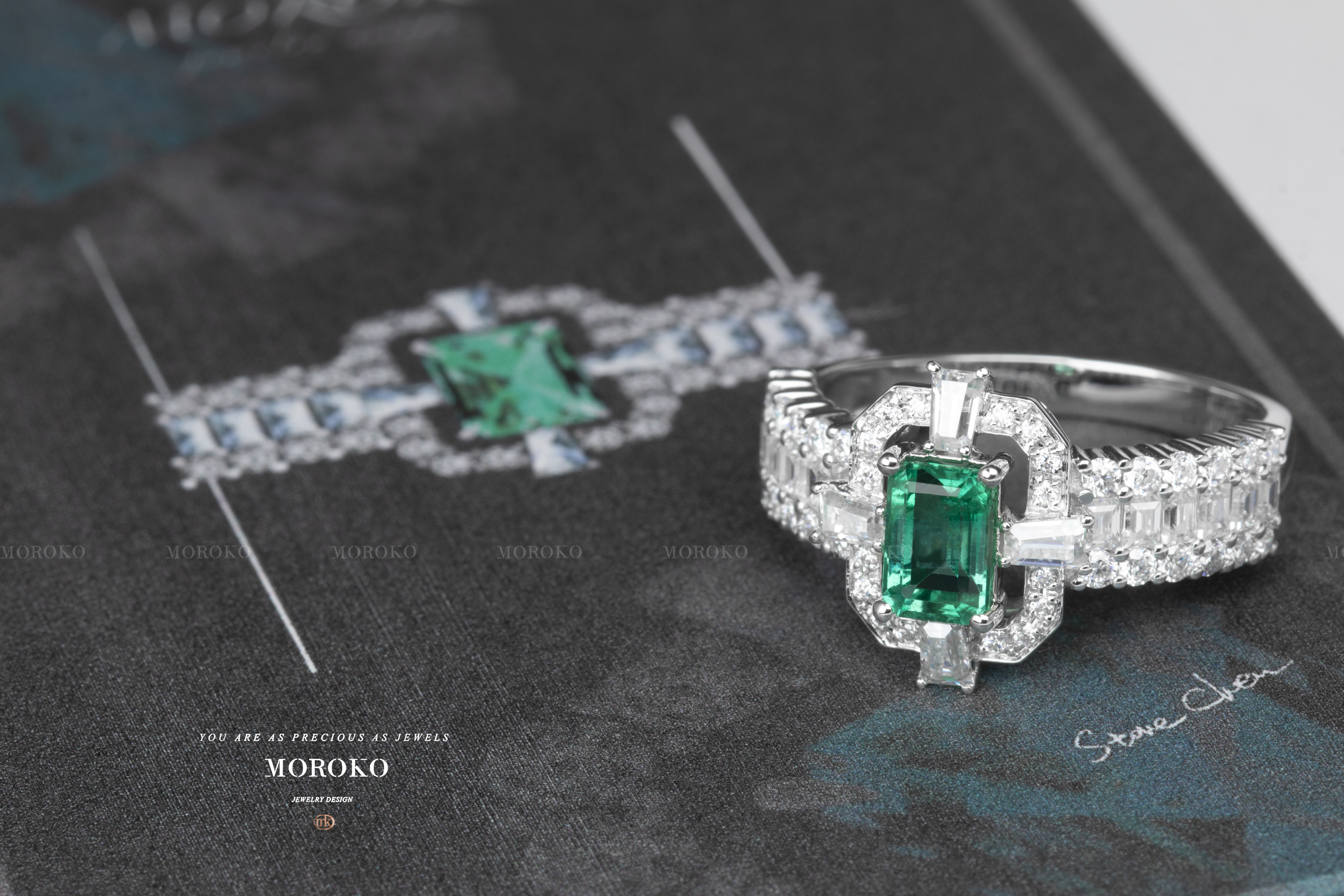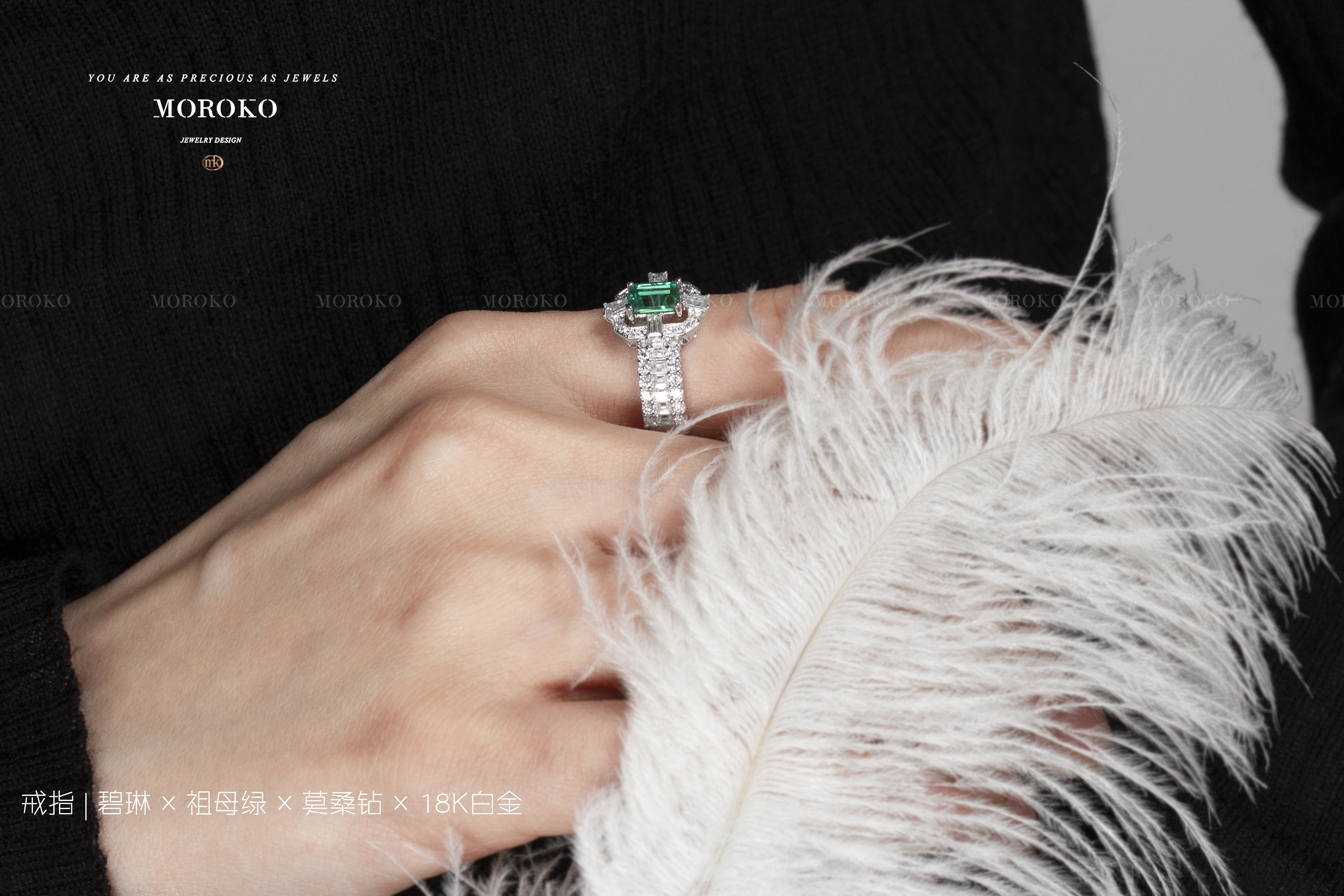 主石部分用镂空营造轻盈闪耀,戒壁突出“满镶”的华丽