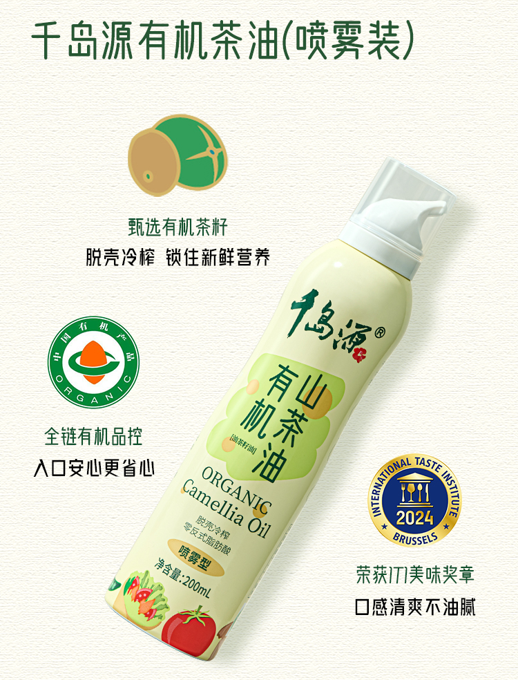 千岛源喷雾型有机山茶油/亚麻籽油/橄榄油组合200mL*3瓶