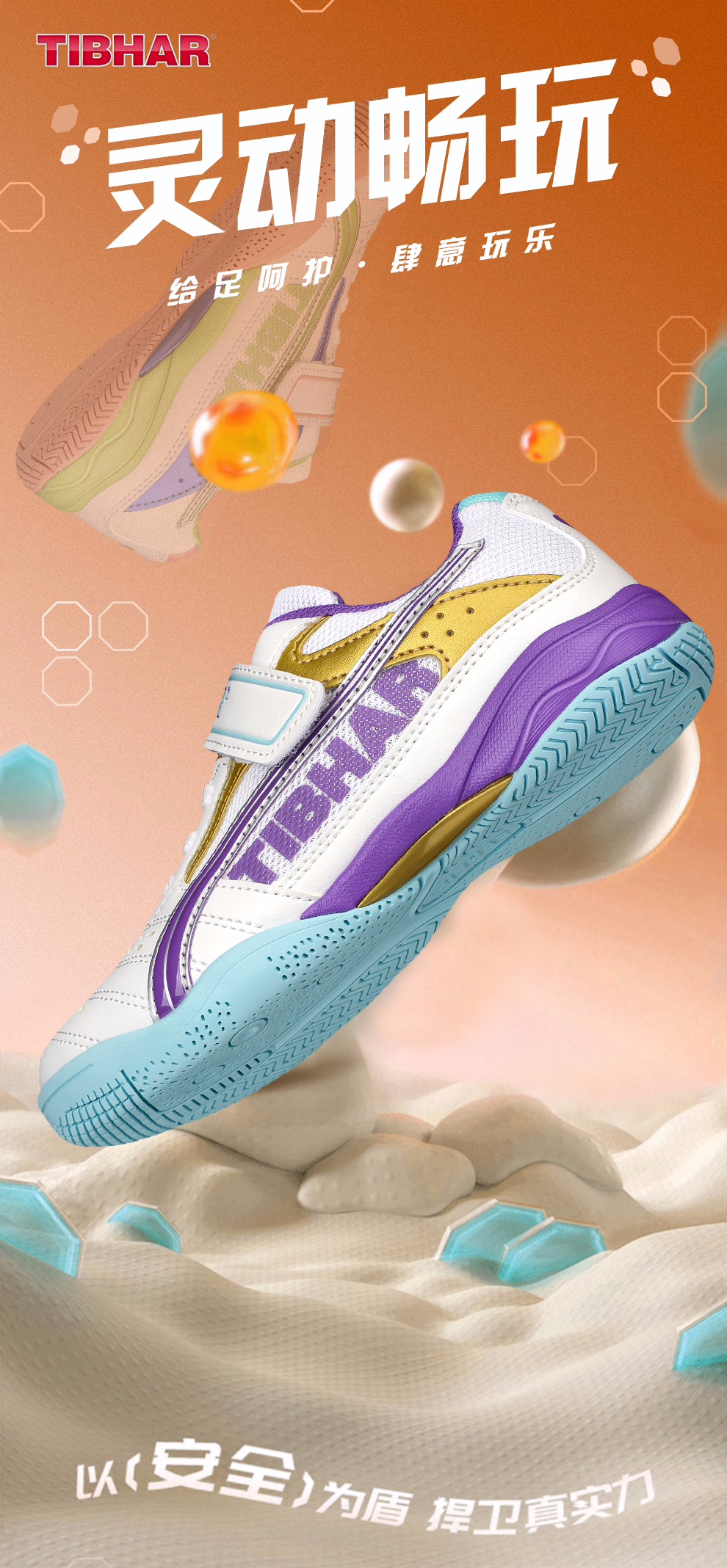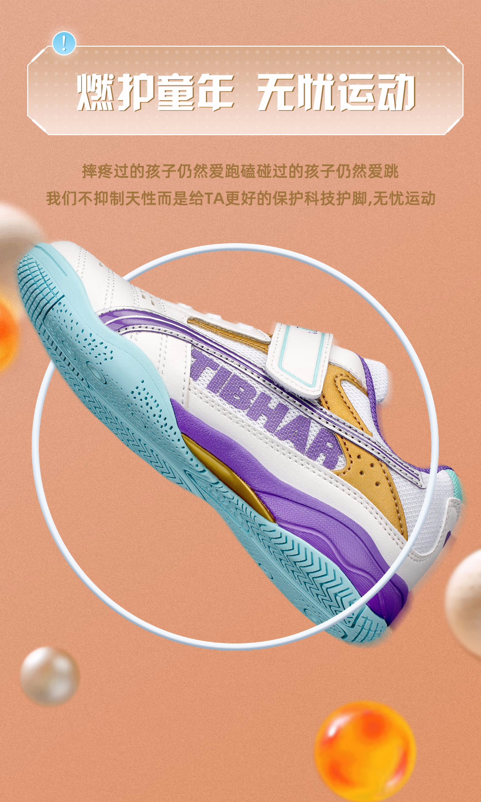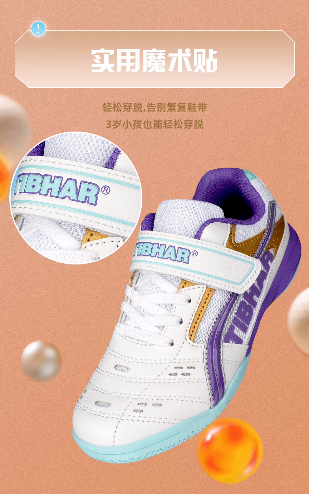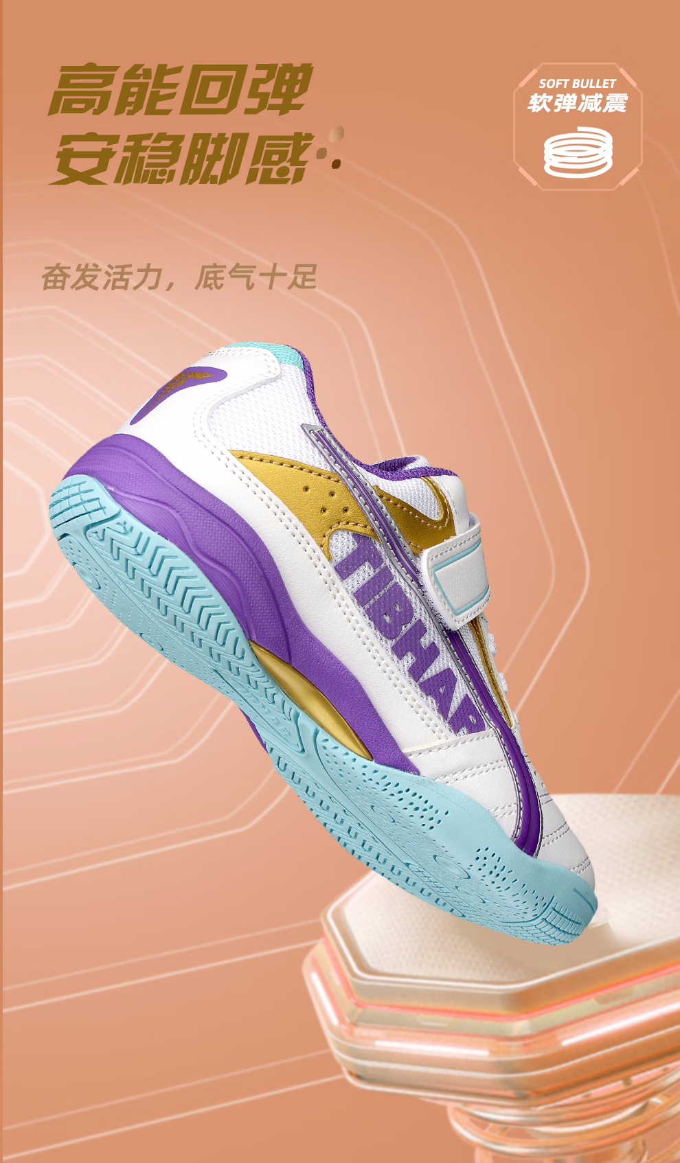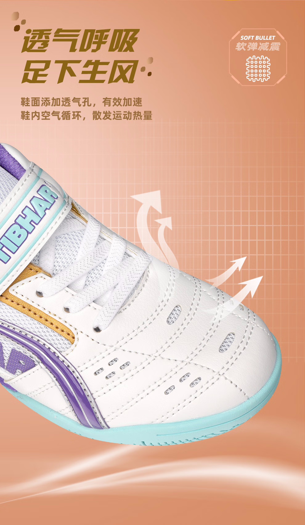 Tibhar挺拔乒乓球鞋飞翔01920儿童乒乓球鞋白紫色耐磨透气防滑保护