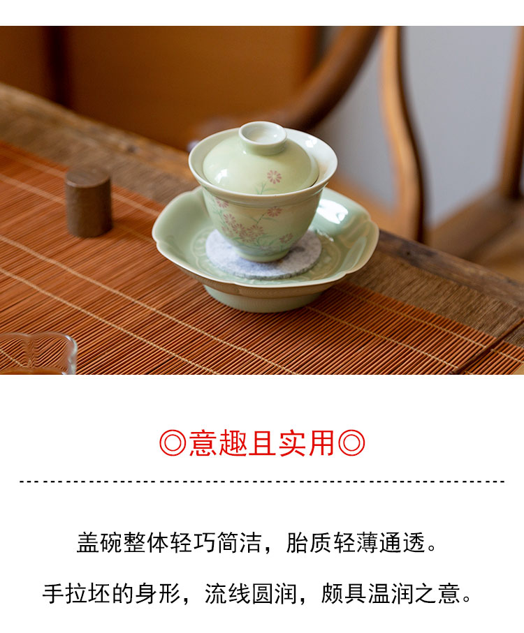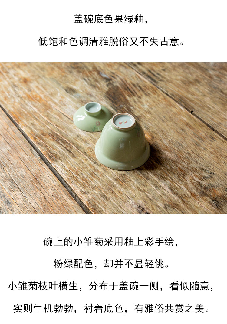 茶香记 果青釉 致远盖碗 手绘小雏菊 果青釉 釉上彩 意趣且实用