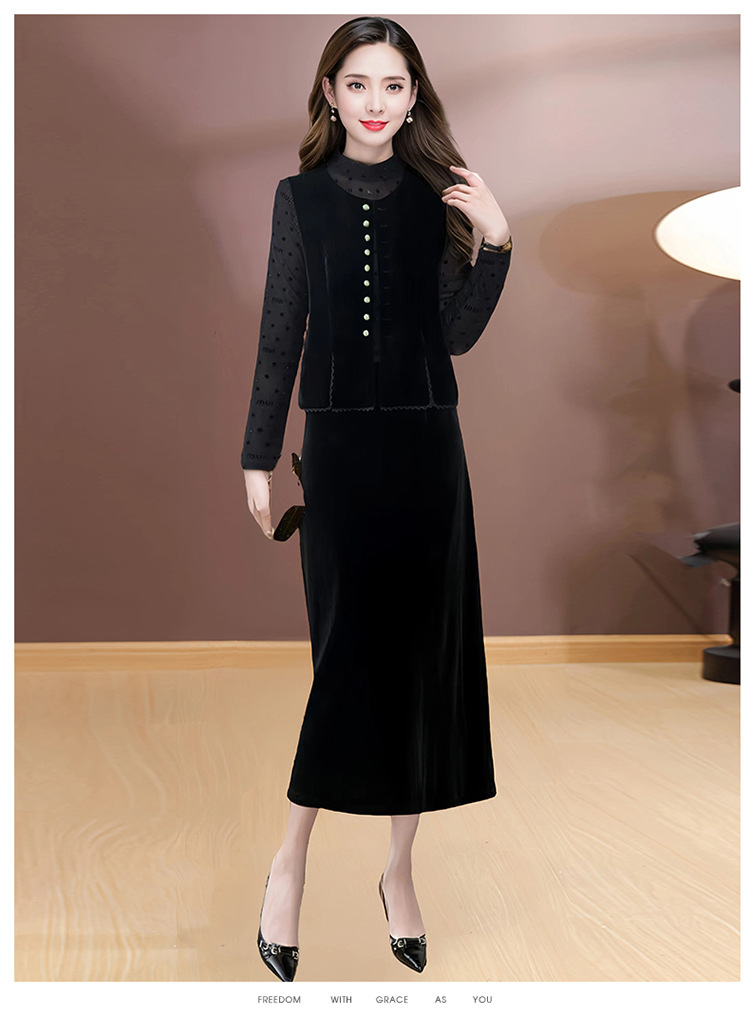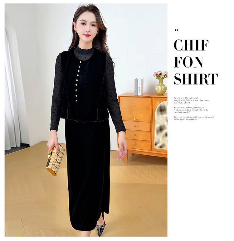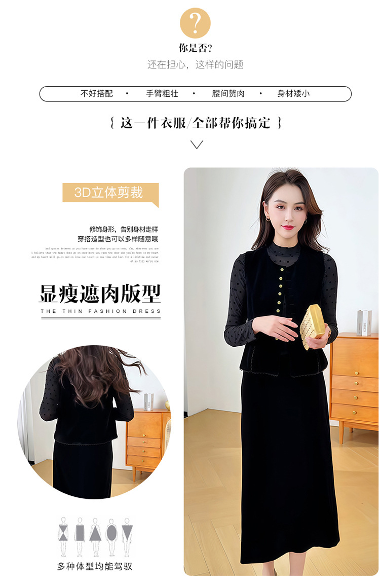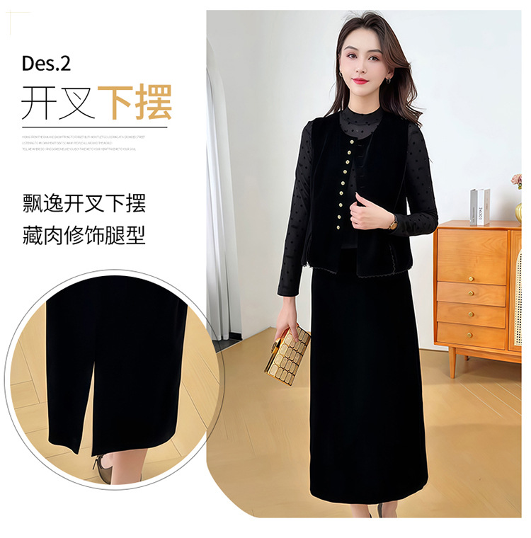 QYM 26806-Y新中式国风金丝绒马甲搭配连衣裙两件套