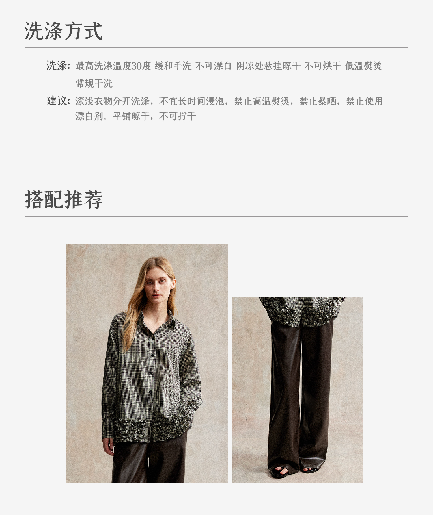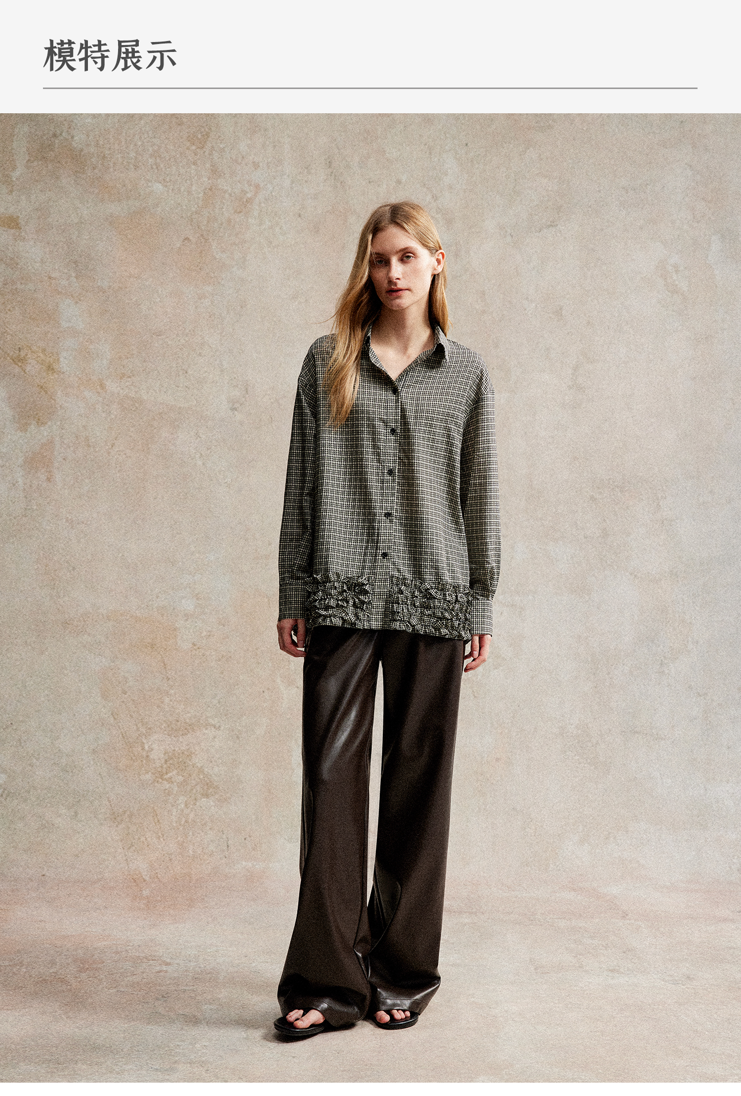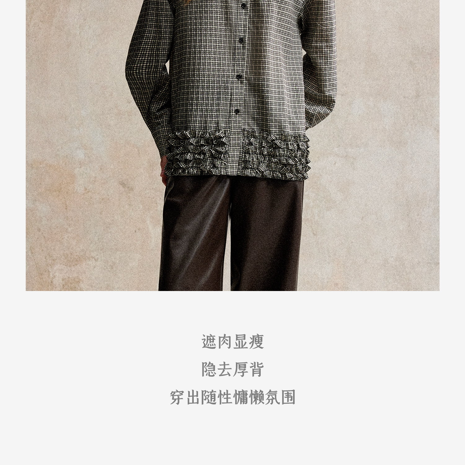 C+IMPRESS/西嘉天丝醋酸提花格纹长袖衬衫木耳边设计感慵懒风上衣