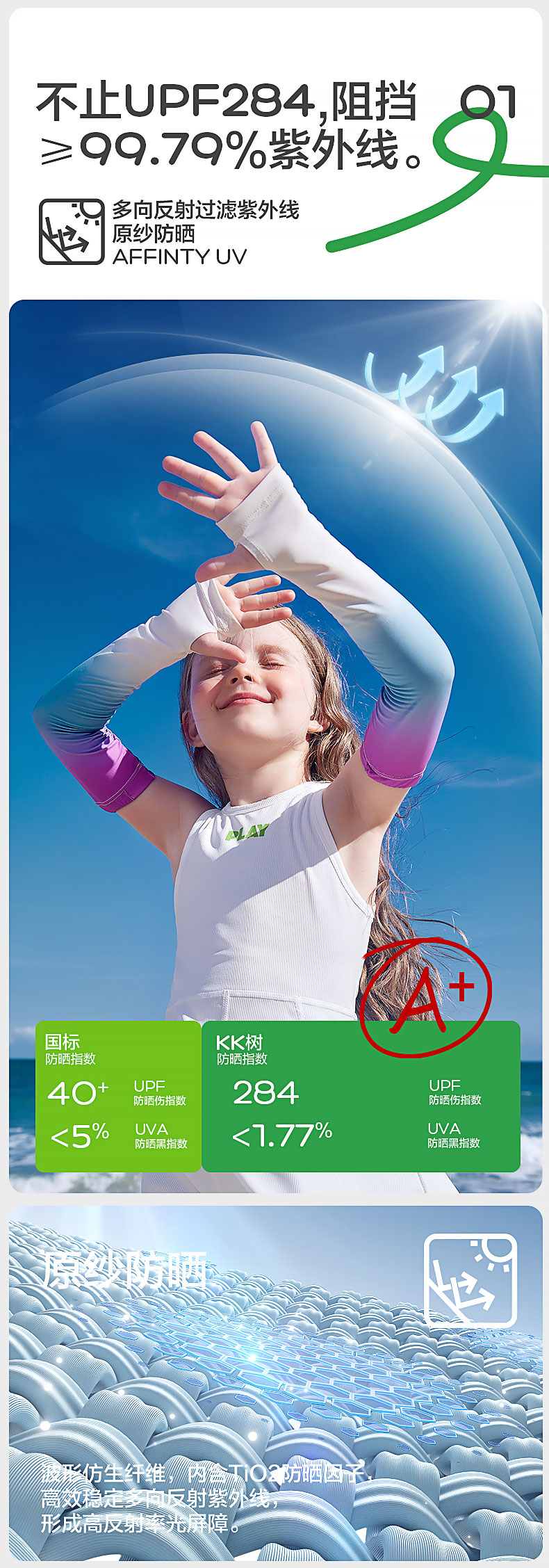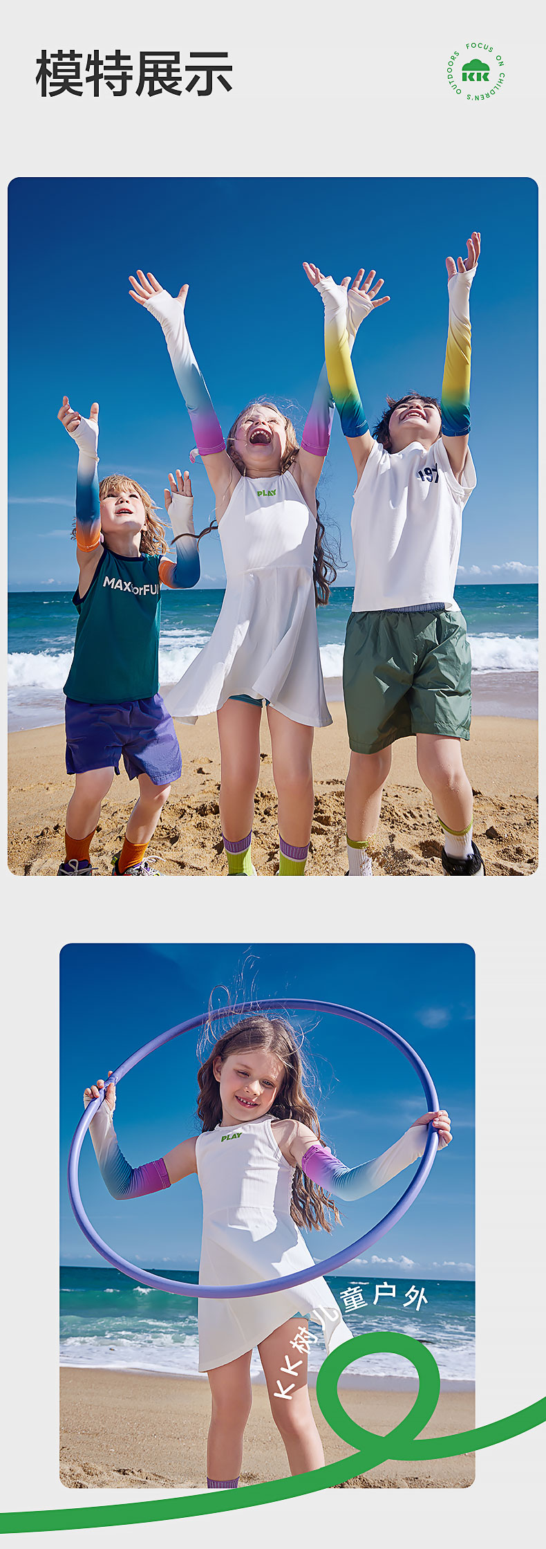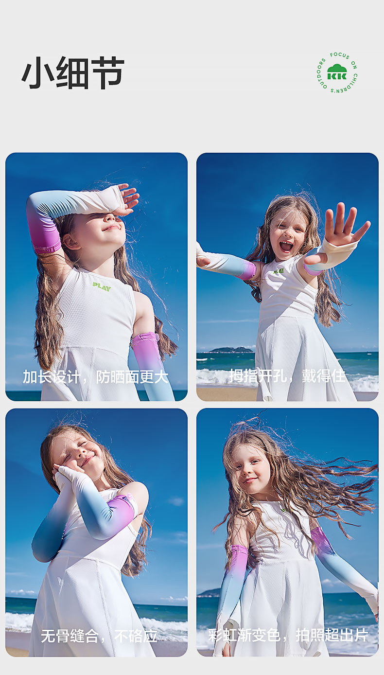 KK树儿童防晒冰袖男童手袖女童护袖原纱防紫外线宝宝冰丝袖套A类彩虹庄园运动冰袖