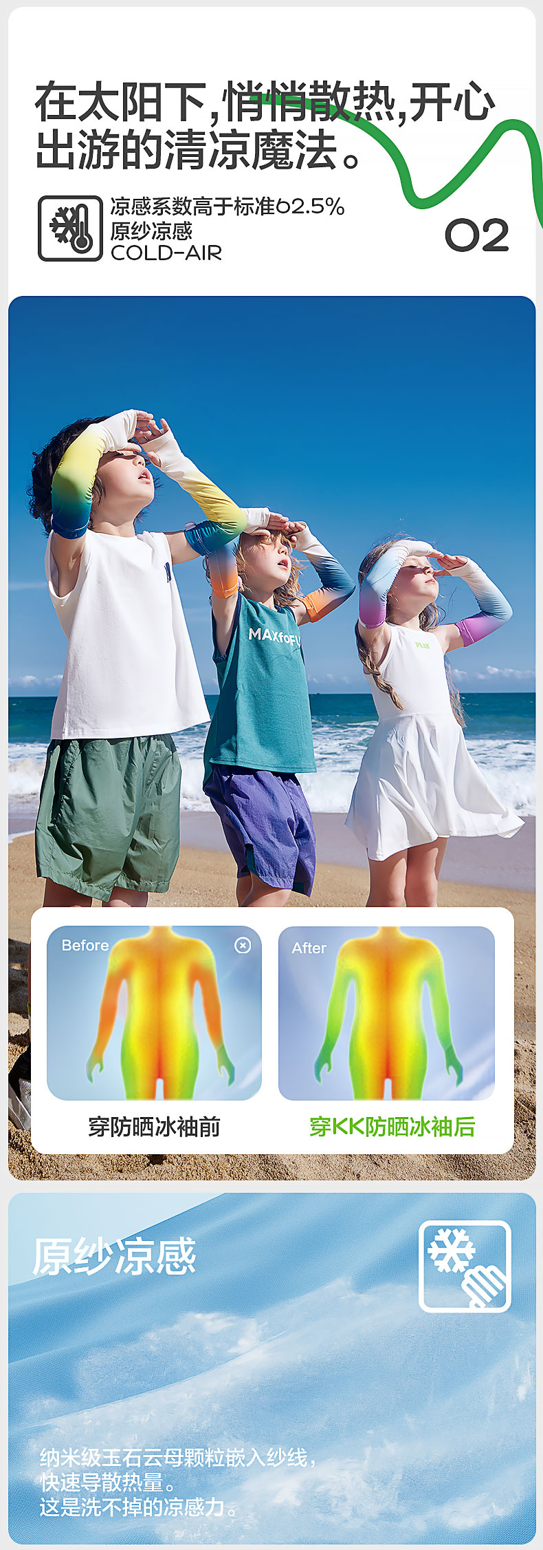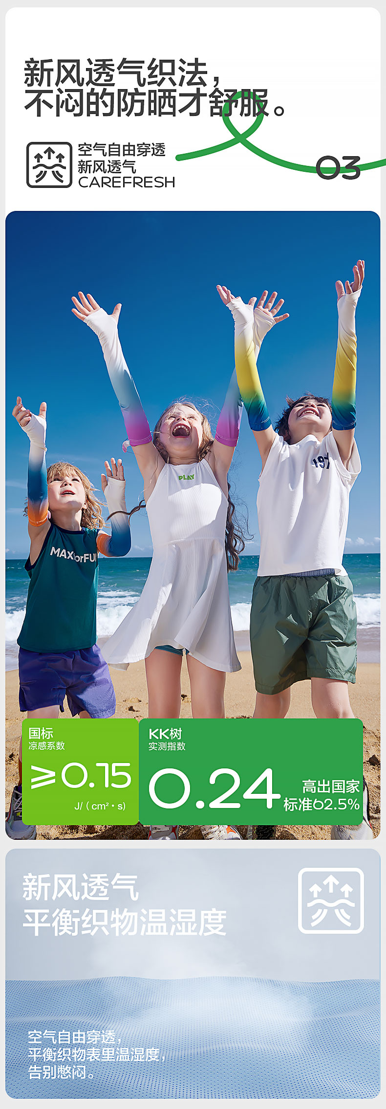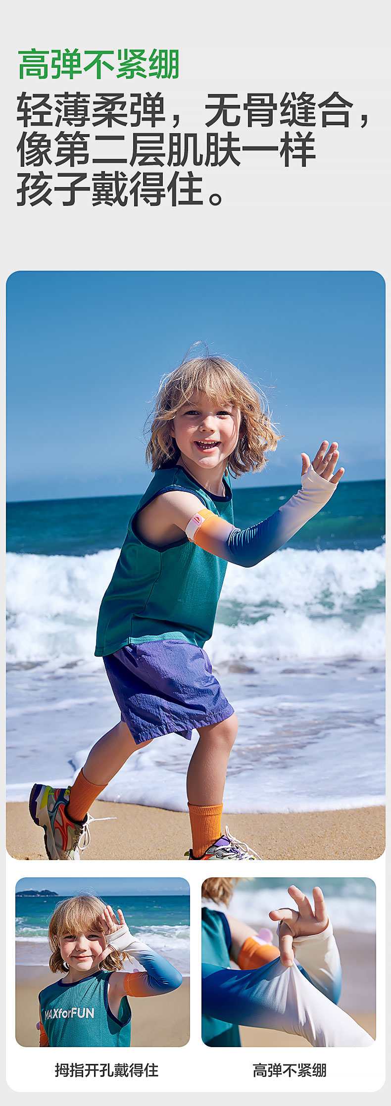 KK树儿童防晒冰袖男童手袖女童护袖原纱防紫外线宝宝冰丝袖套A类彩虹庄园运动冰袖