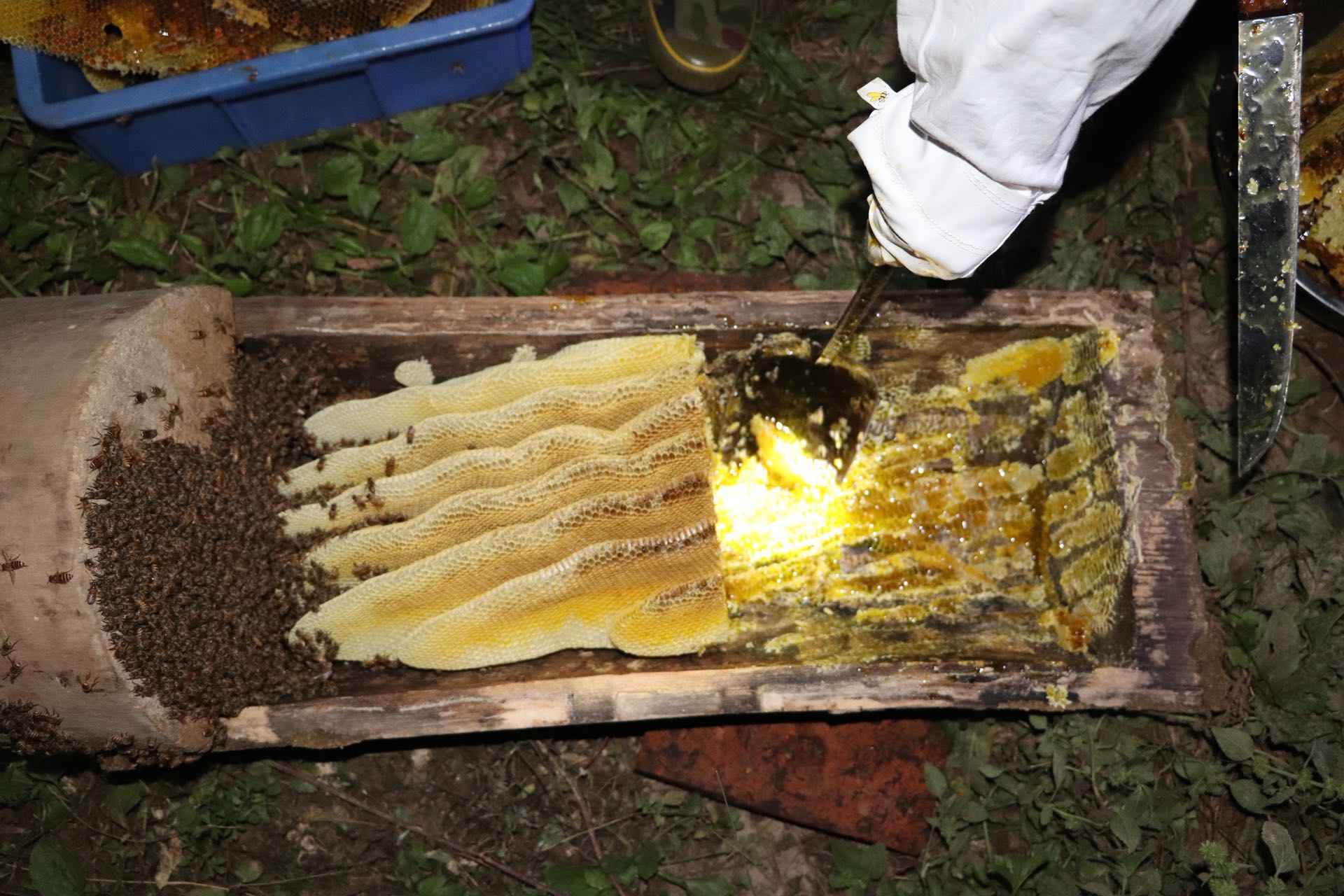 蜜蜂采集党参、漆树、娑罗、板栗、五倍子、山葡萄等多种野花、药材花,自然酿造蜂蜜到成熟老蜜。