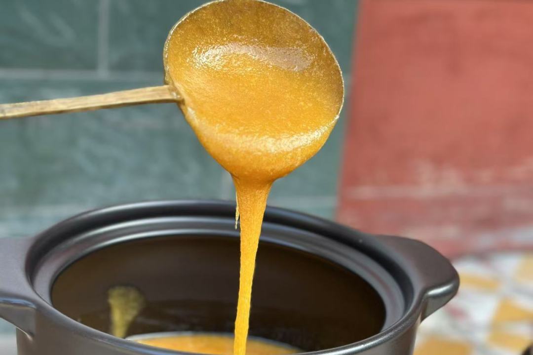 山茱萸很酸,我们一直在探索更好的吃法,例如,泡蜜、酿酒、做蜜饯。这次,我们用传统炼蜜与熬膏结合,将它做成了现在的形态。