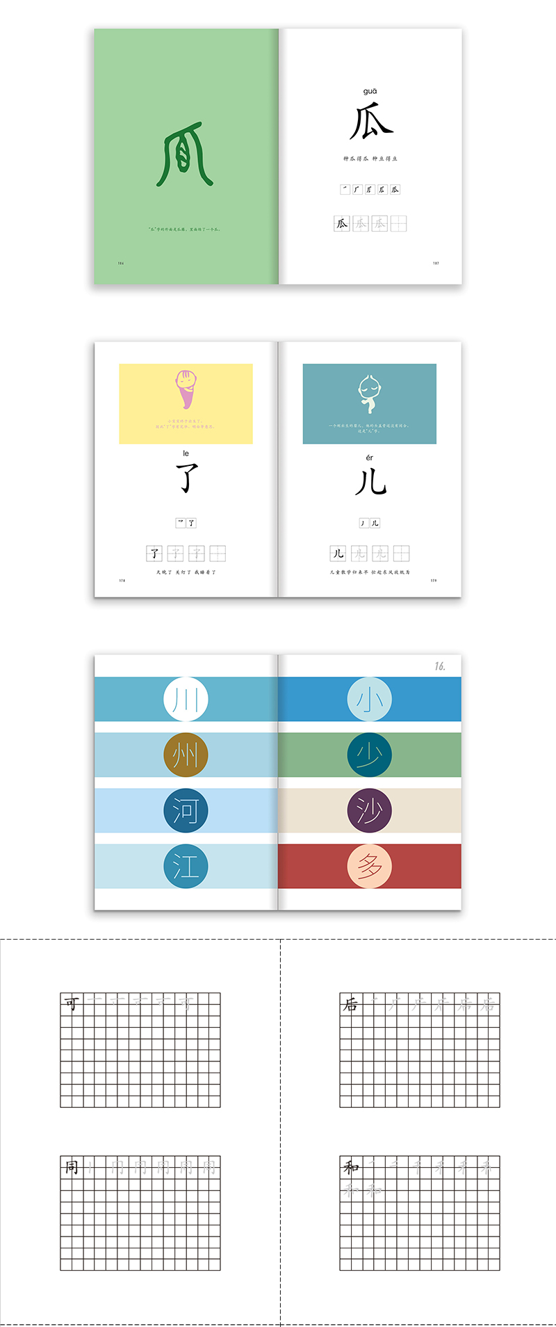 选字由简到难。 据教育部新编小学语文一年级教材,收录最常用的208个汉字。
