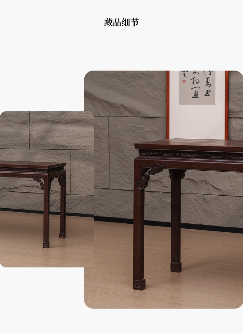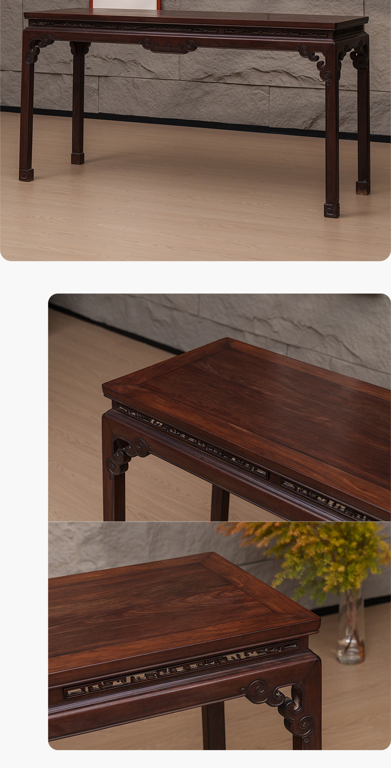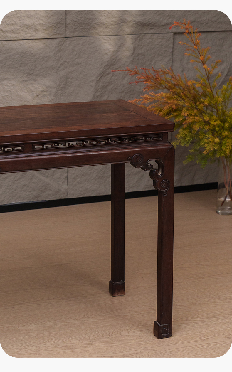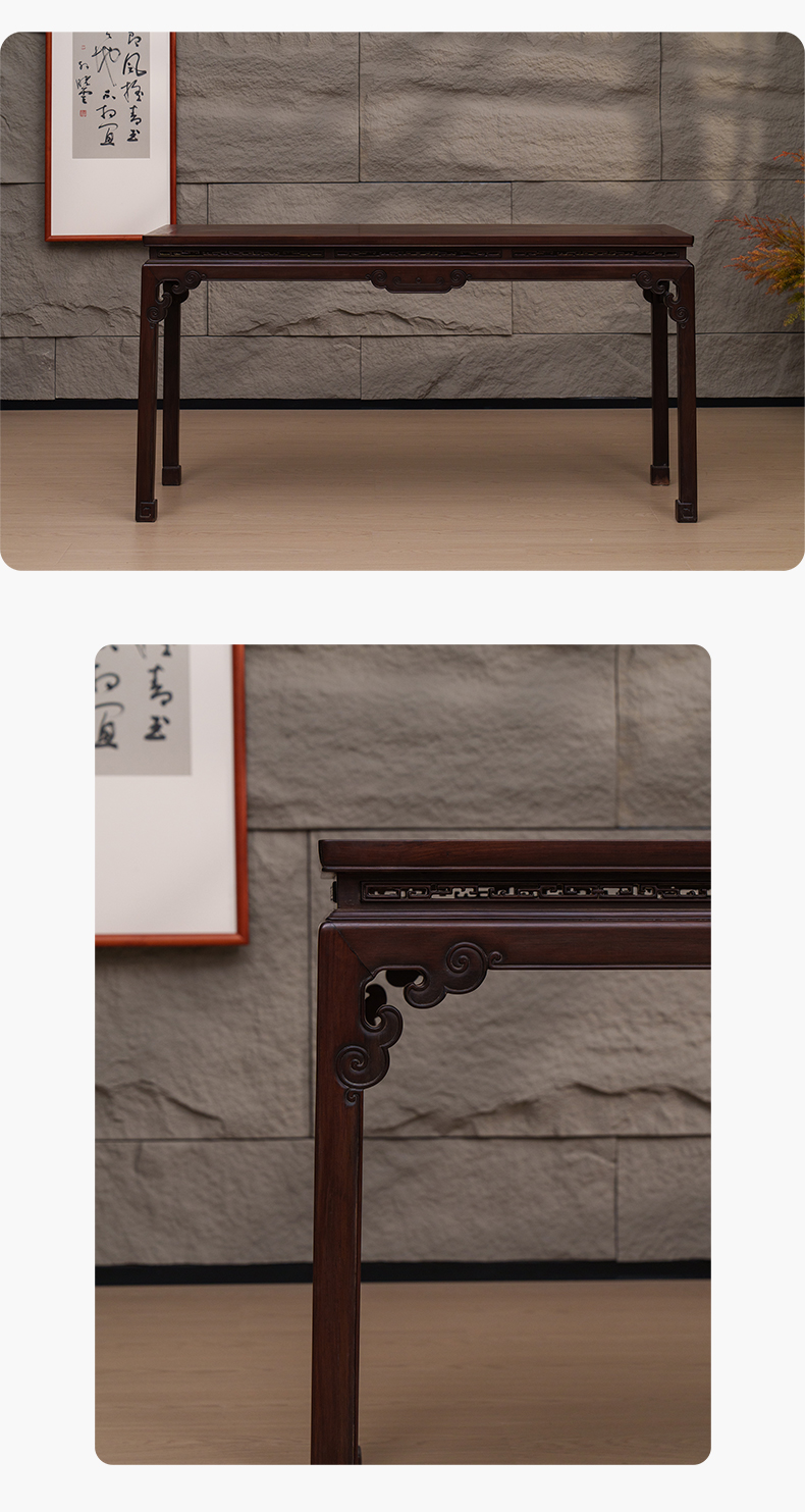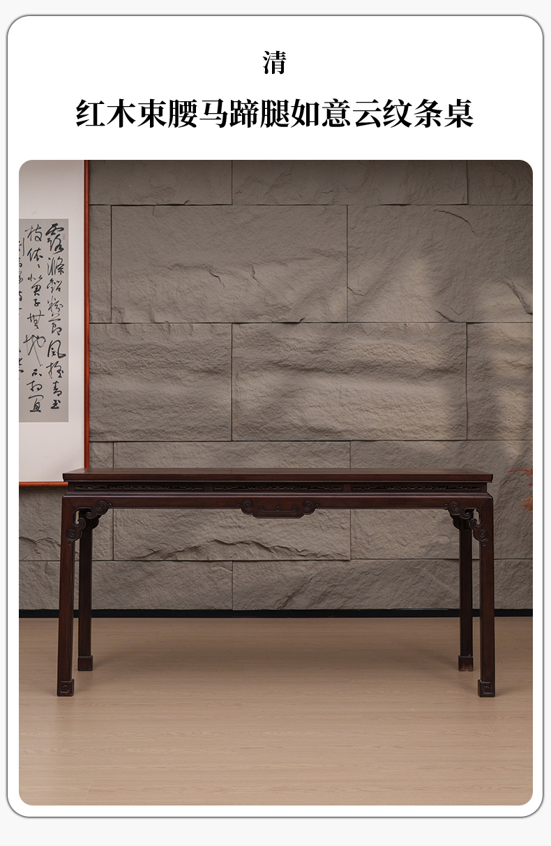 清 红木束腰马蹄腿如意云纹条桌