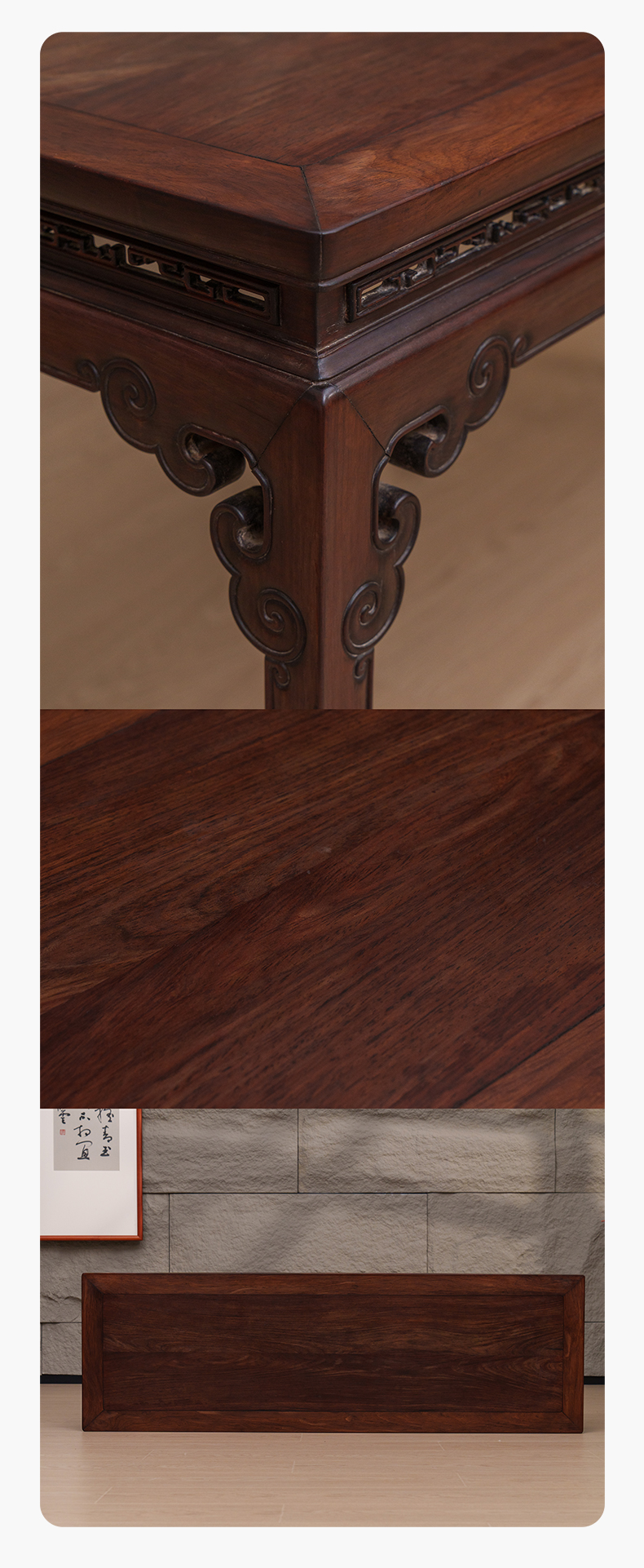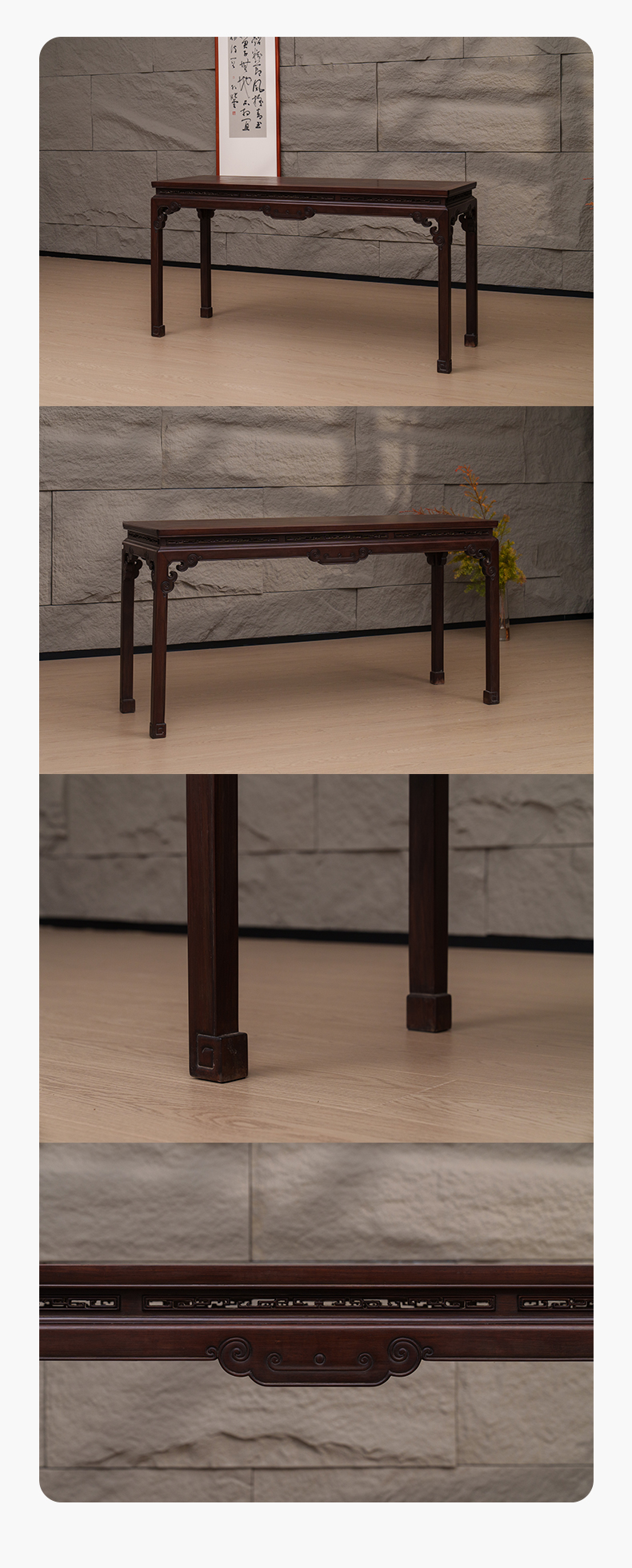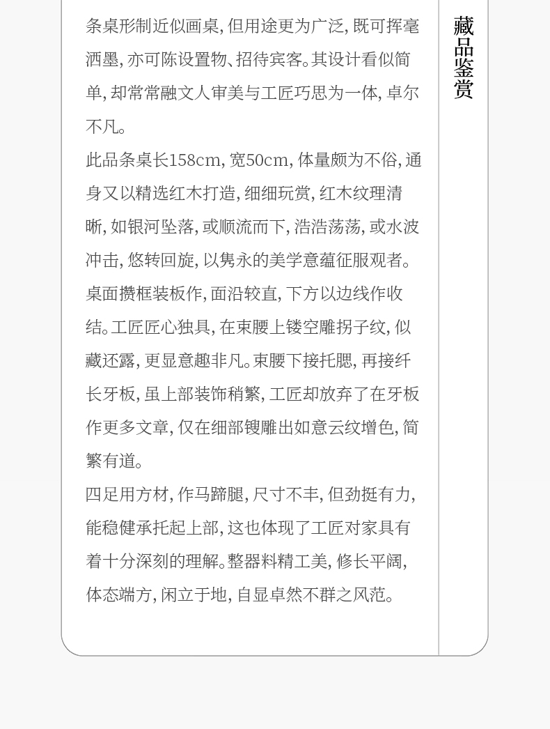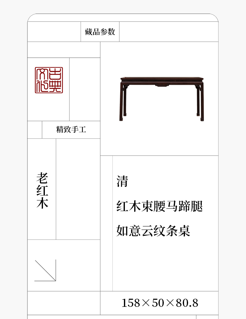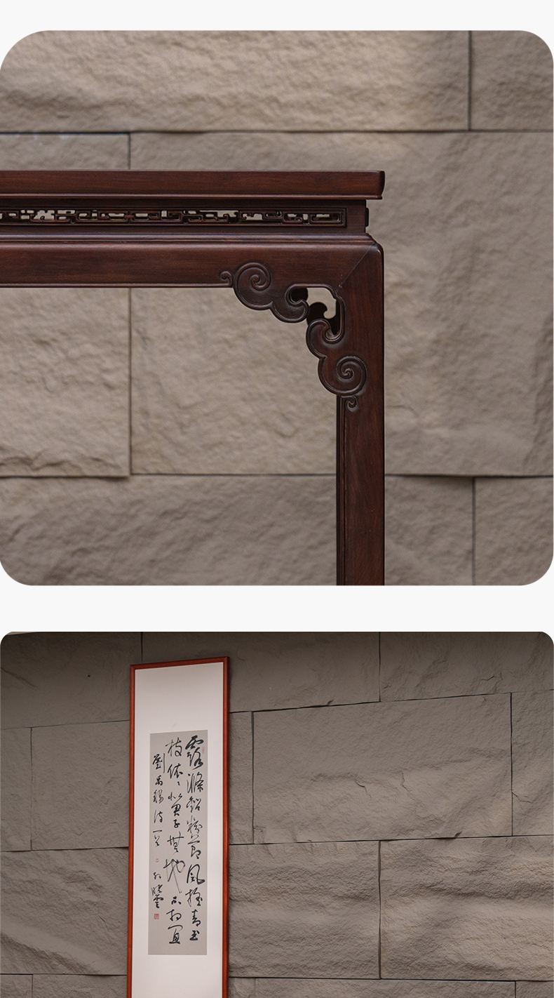 清 红木束腰马蹄腿如意云纹条桌