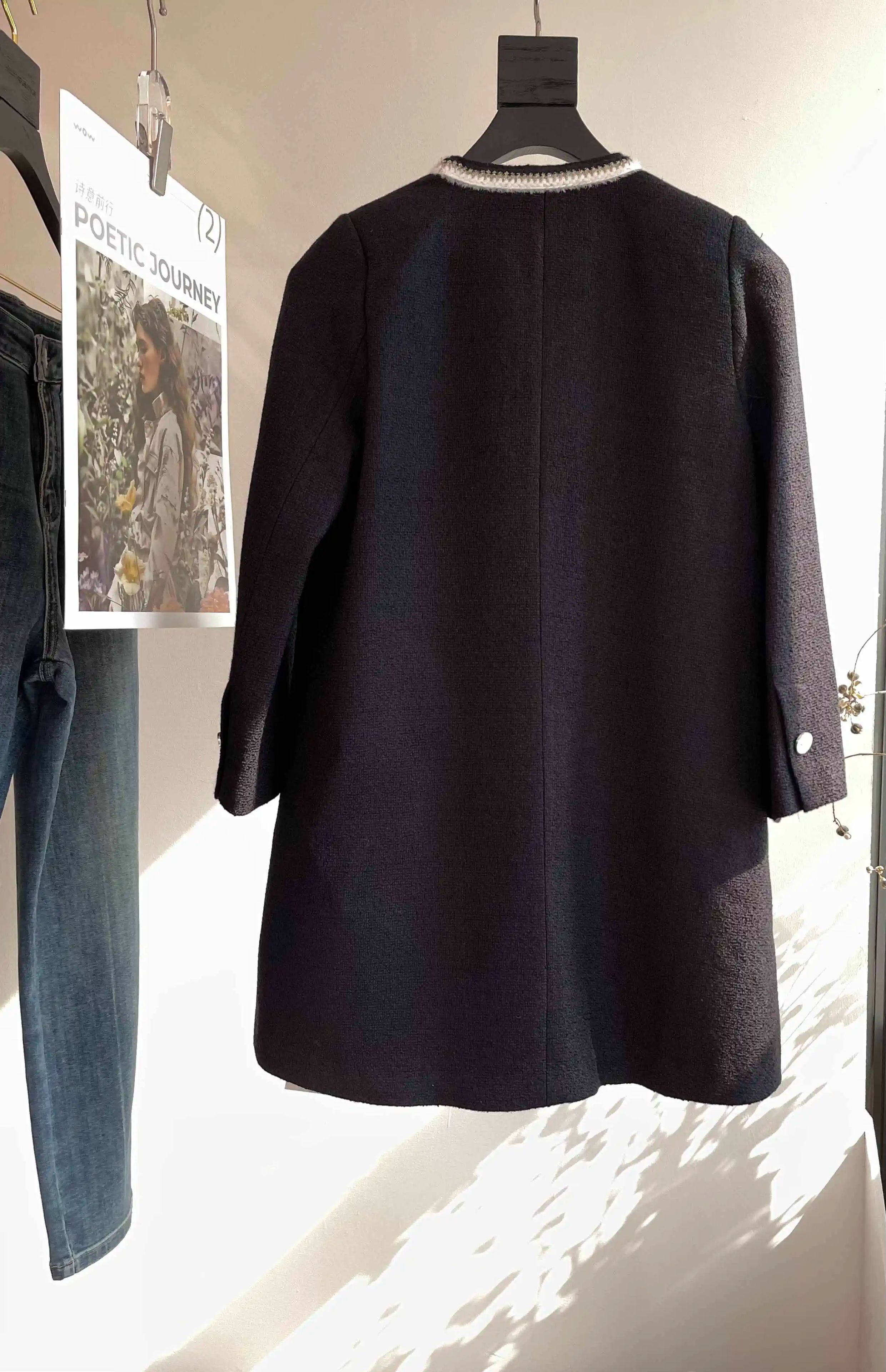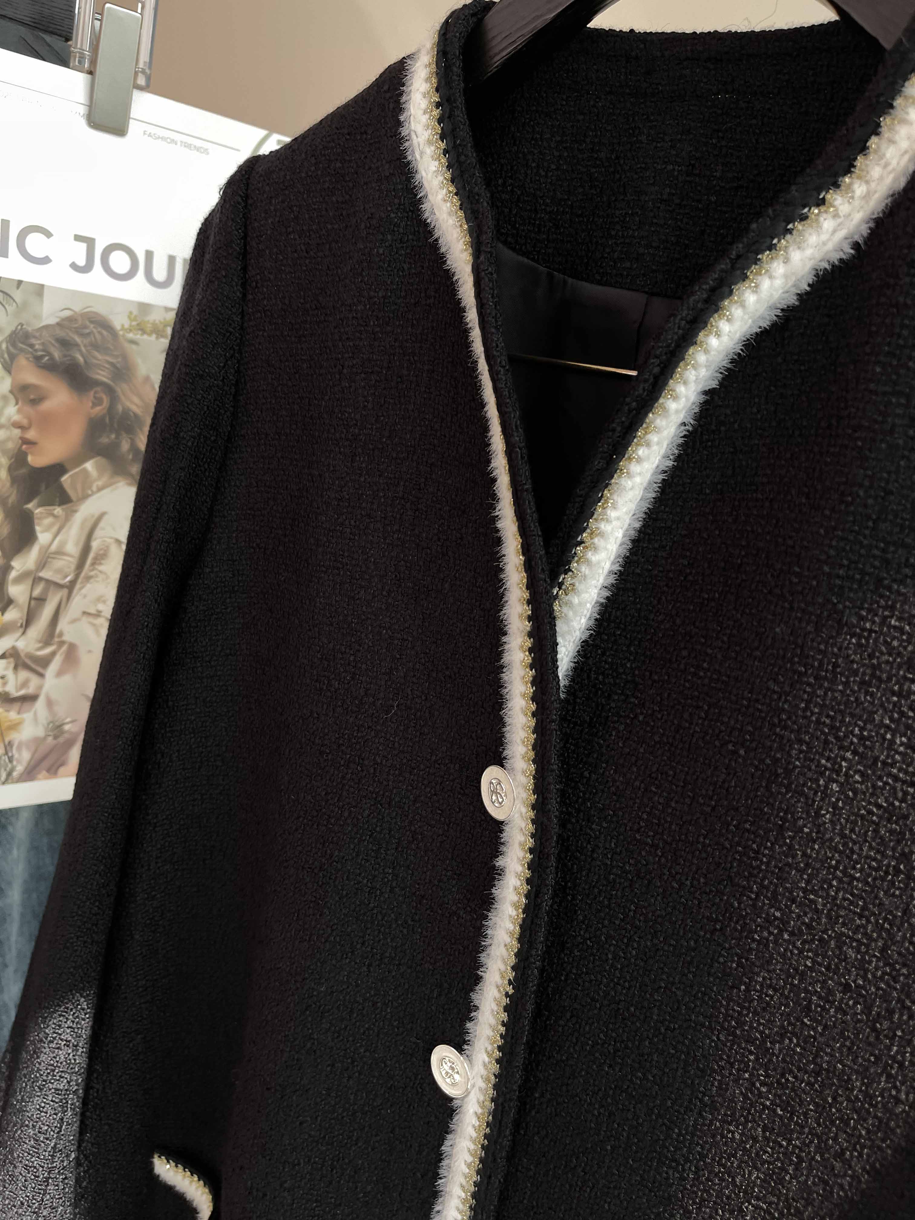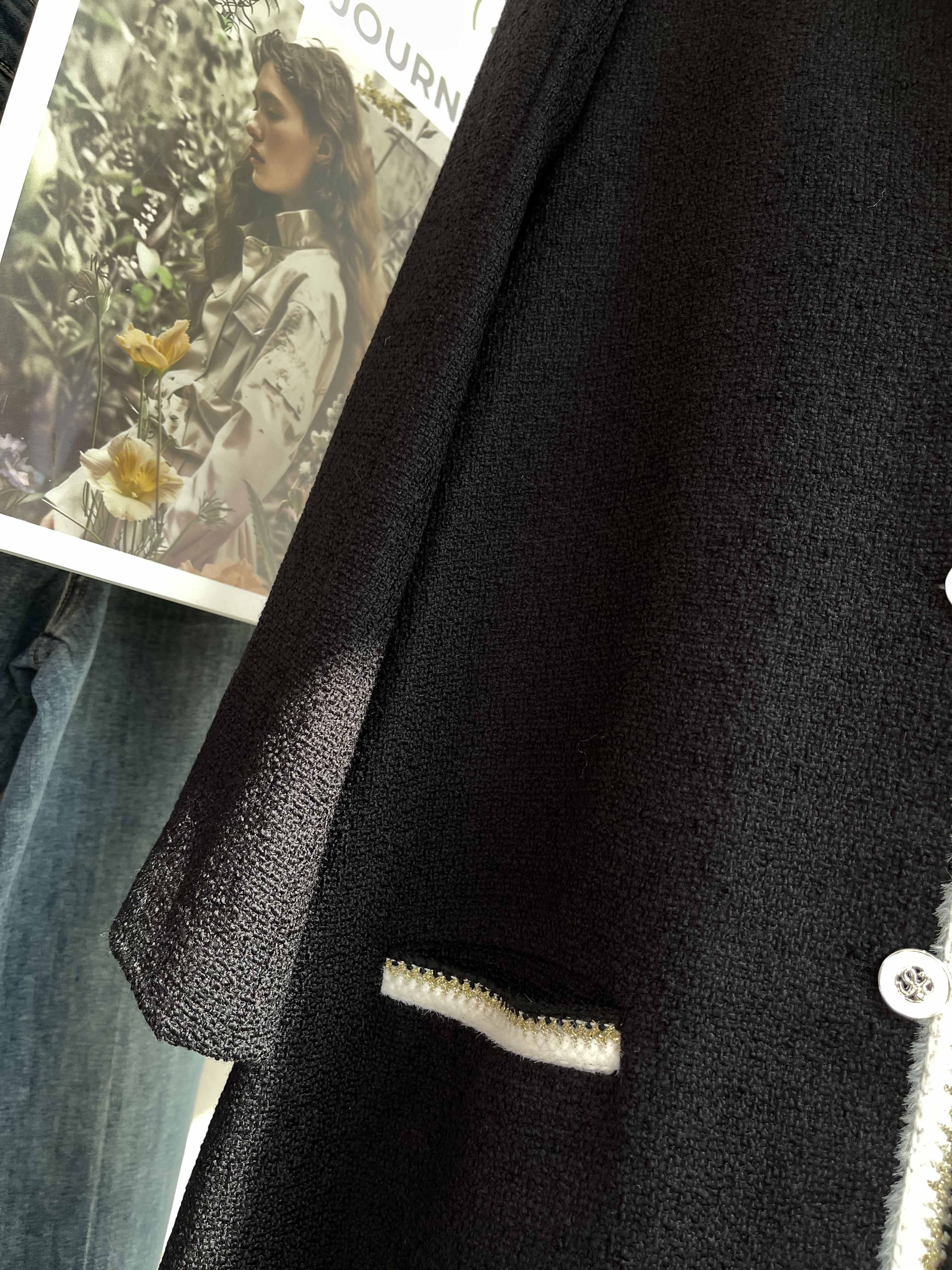 顺丰包邮洛诗琳53543设计感小香风外套春季V领7分袖中长外套02018