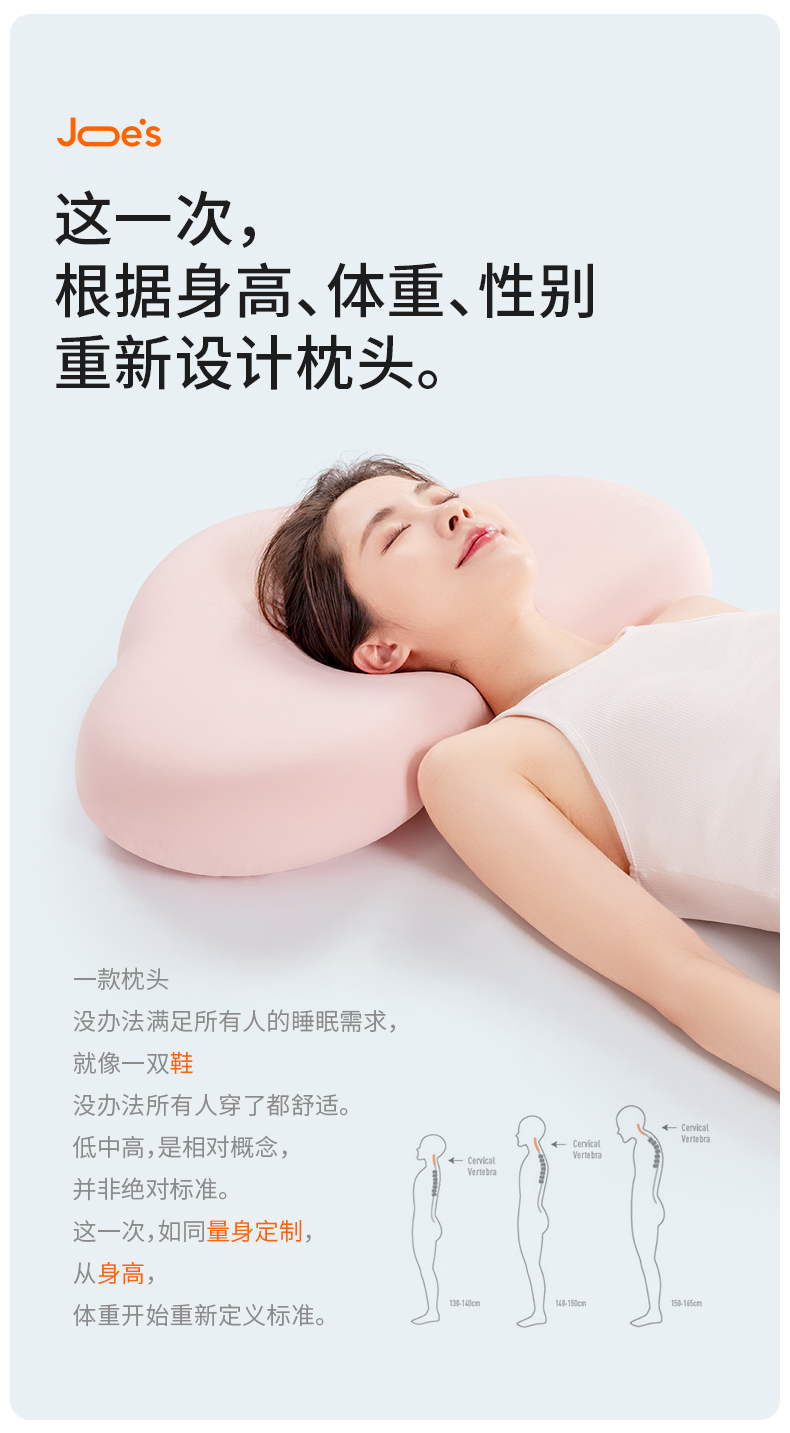 山妈用的枕头是乔德的Soft5颈椎枕,是纯记忆棉材质,也叫慢回弹枕和聚氨酯枕,用的是美国HUNTSMAN技术,比乳胶枕更柔软,贴合颈部曲线,对颈椎的放松更好。
