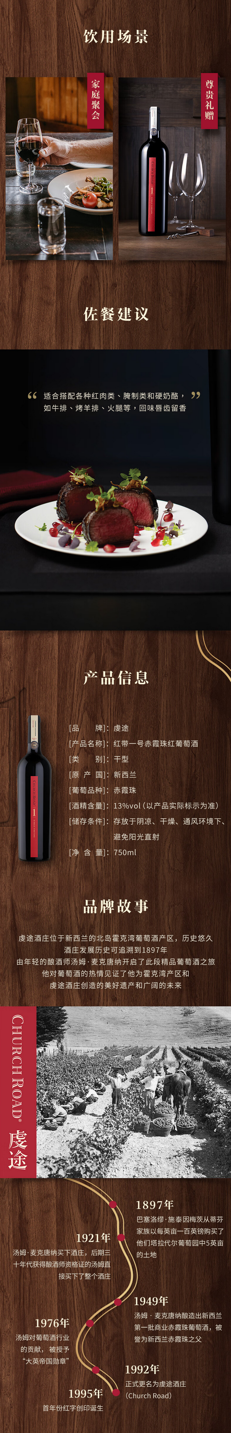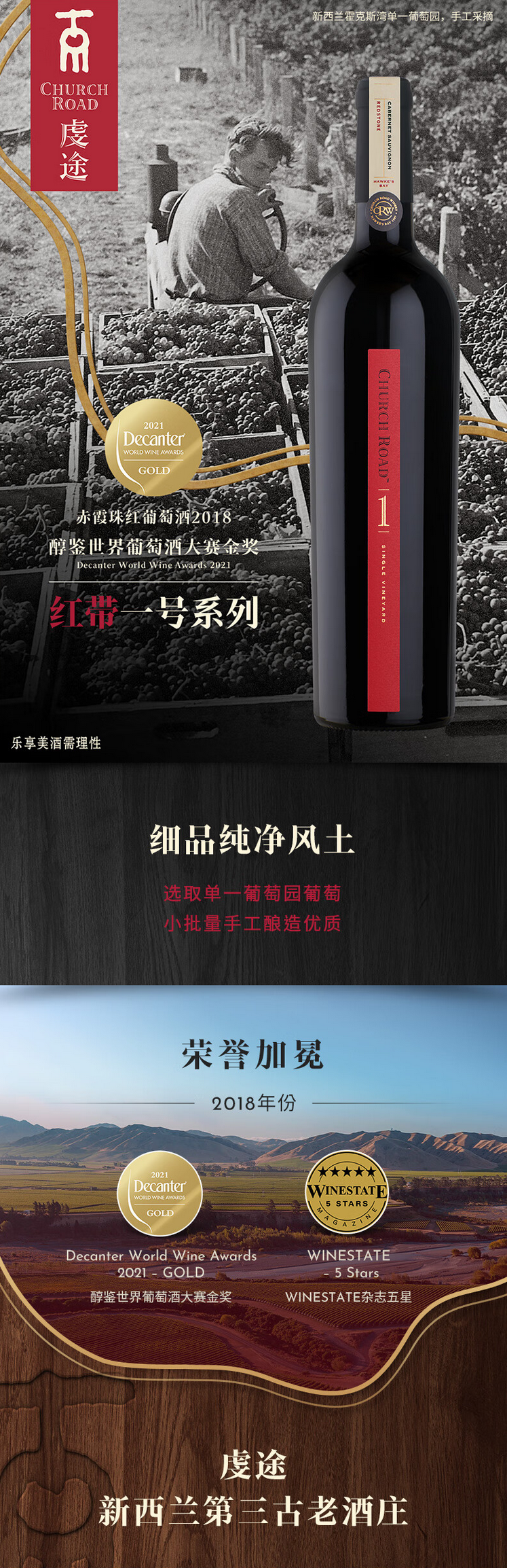 虔途红带一号 赤霞珠红葡萄酒 新西兰原瓶进口红酒