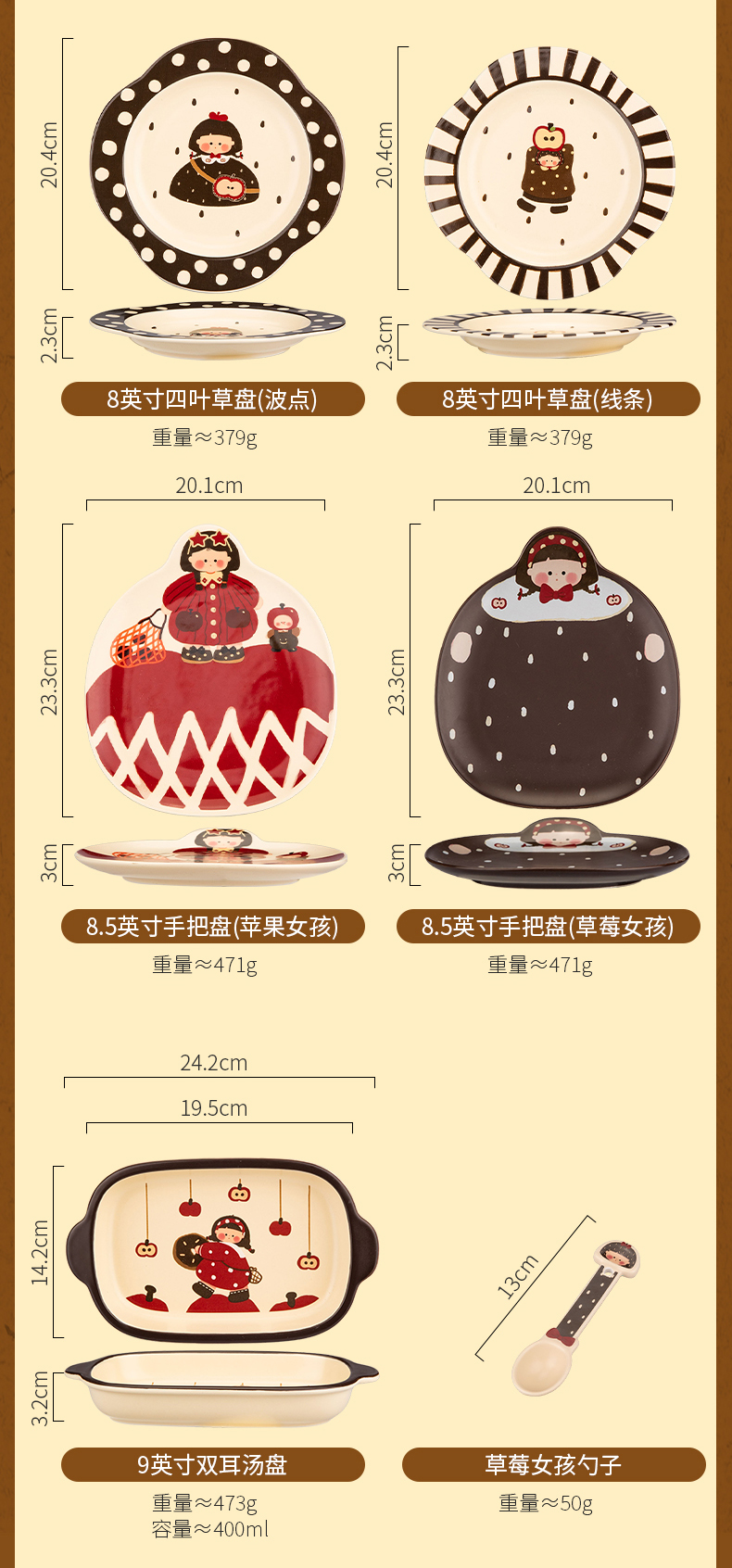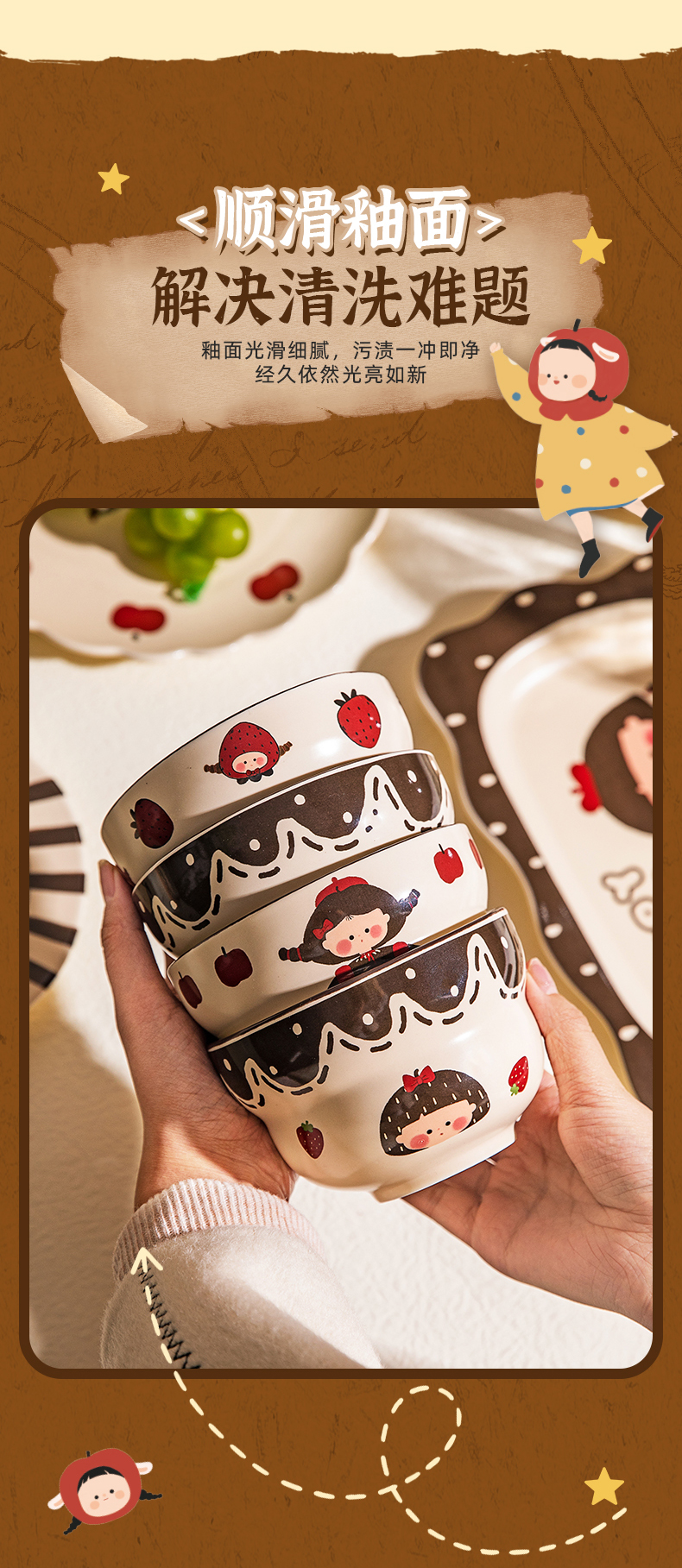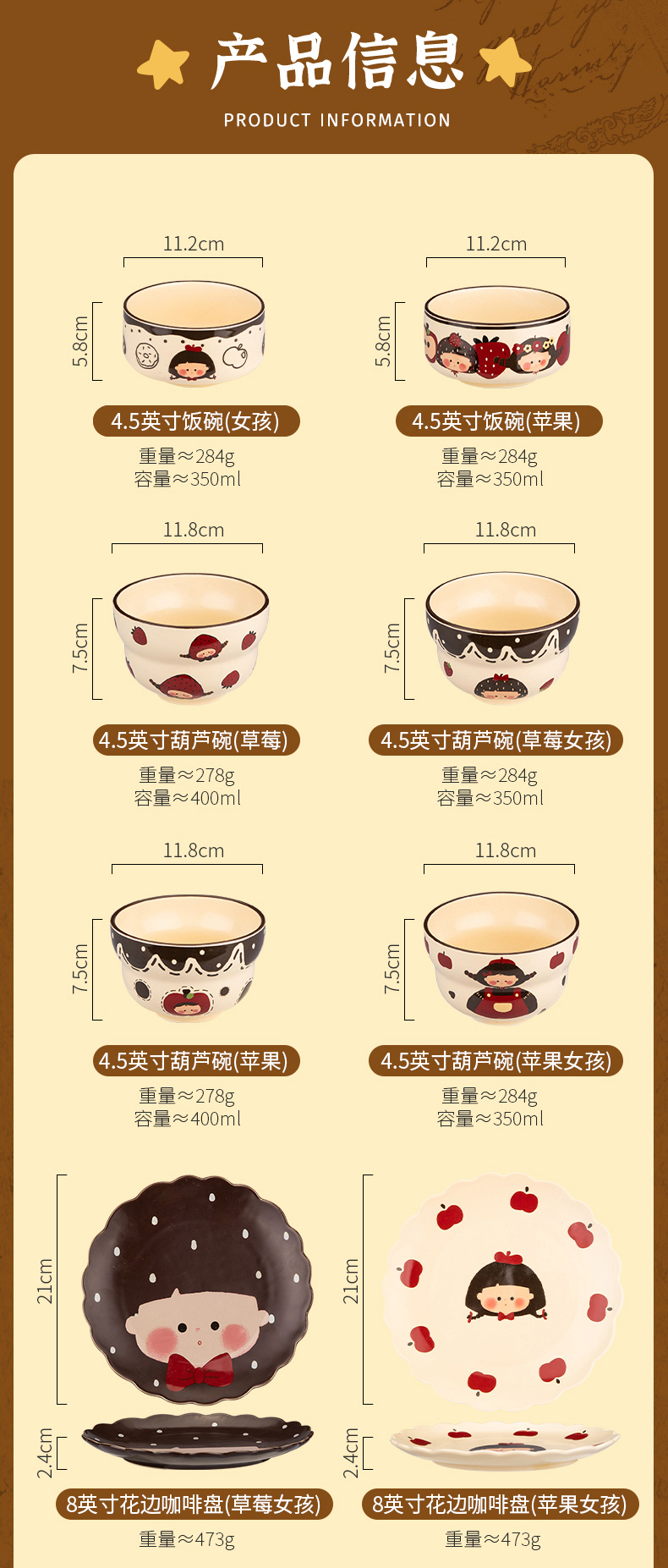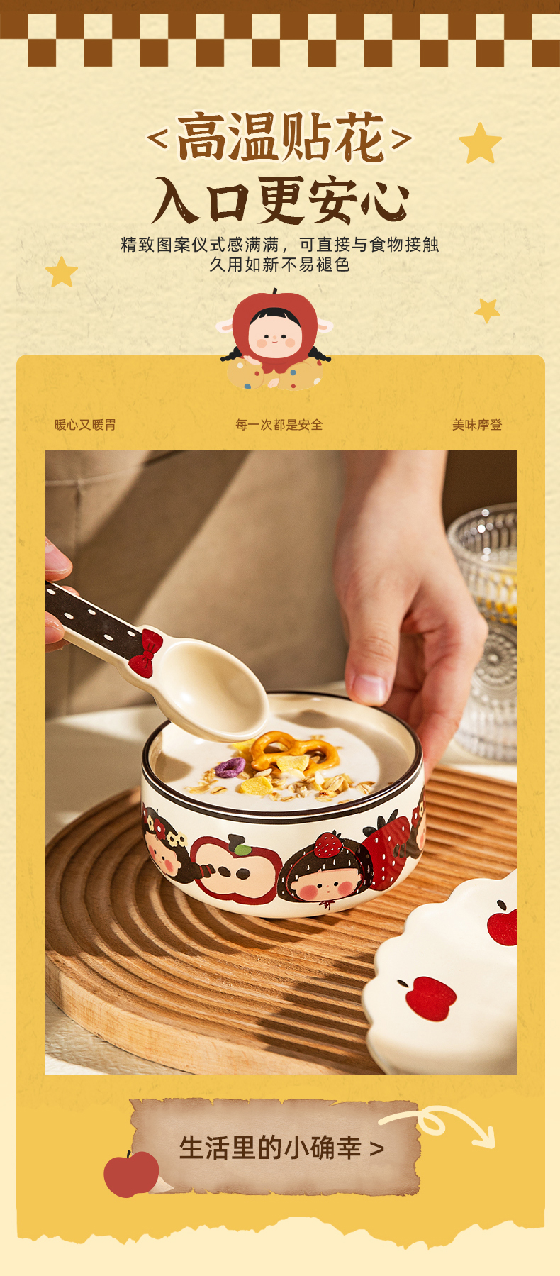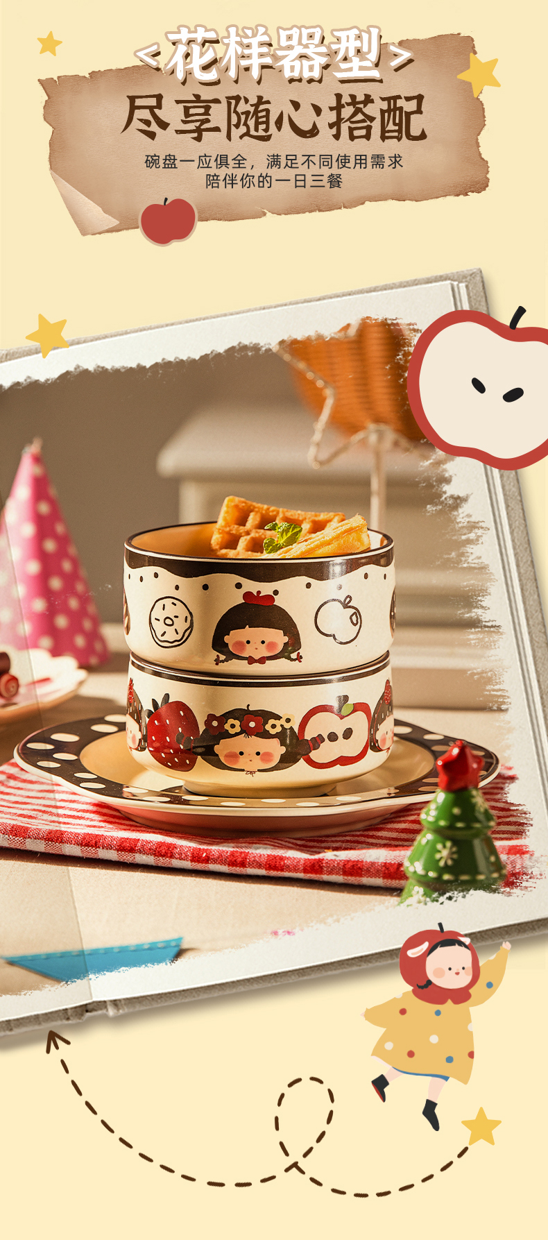 摩登主妇苹果女孩餐具碗碟家用可爱盘子陶瓷碗乔迁生日礼物送女生