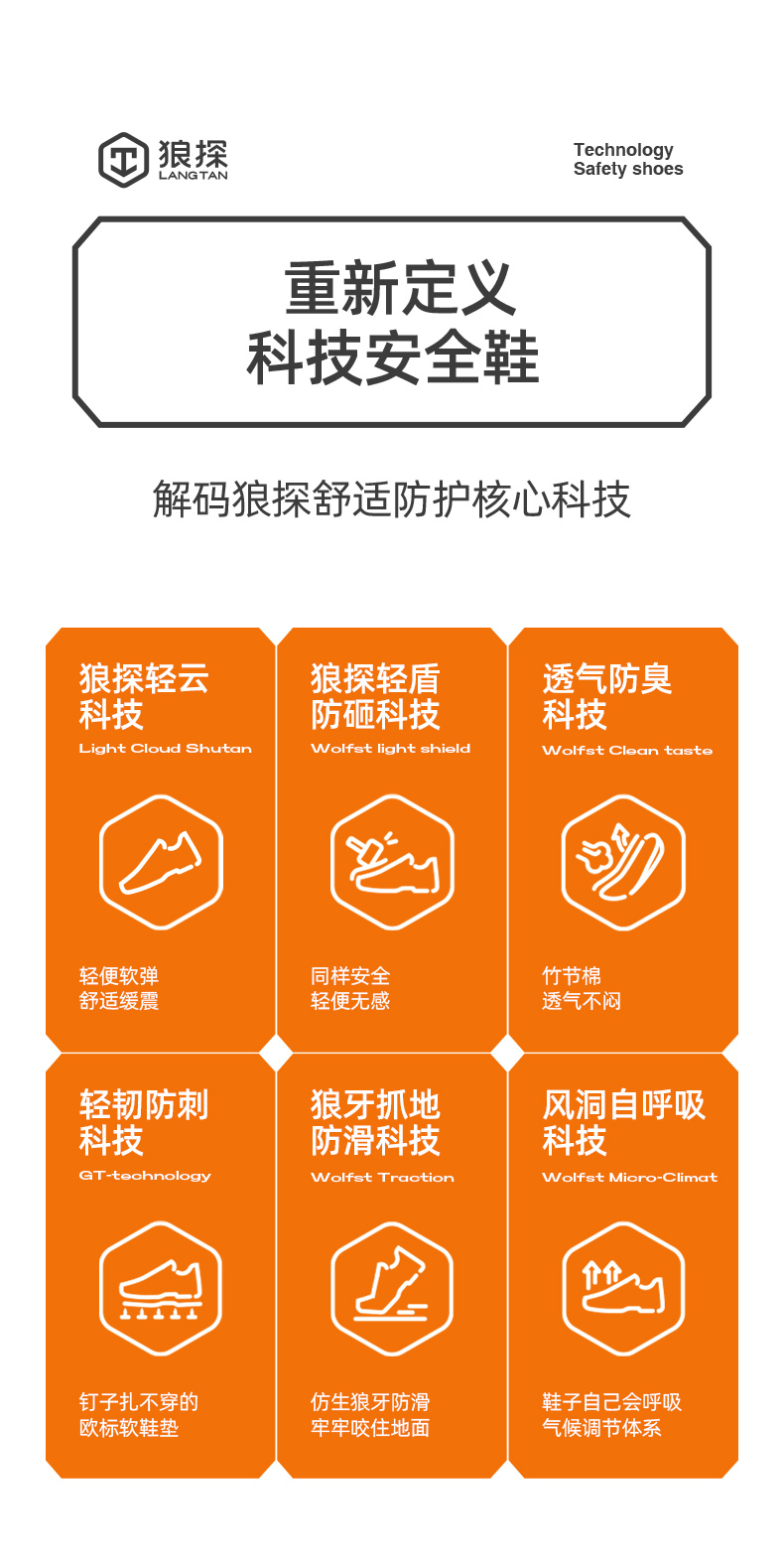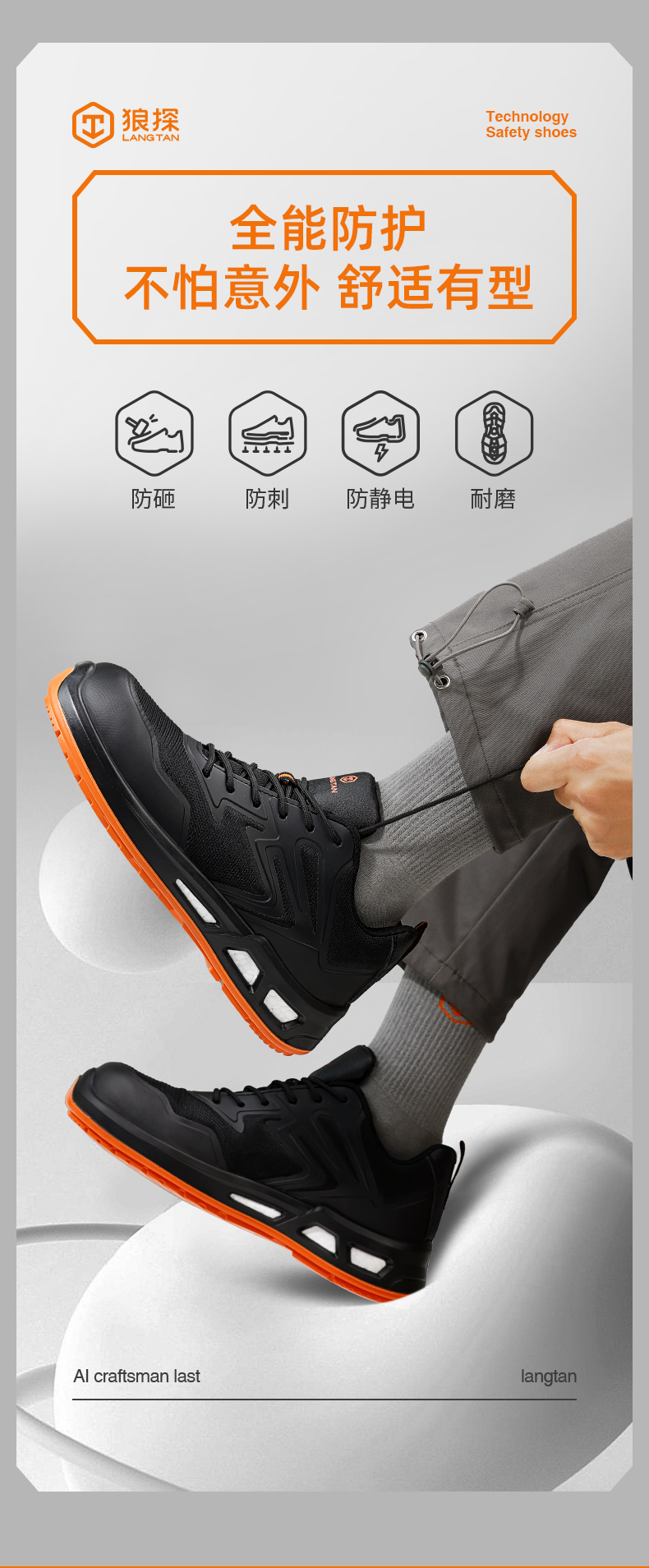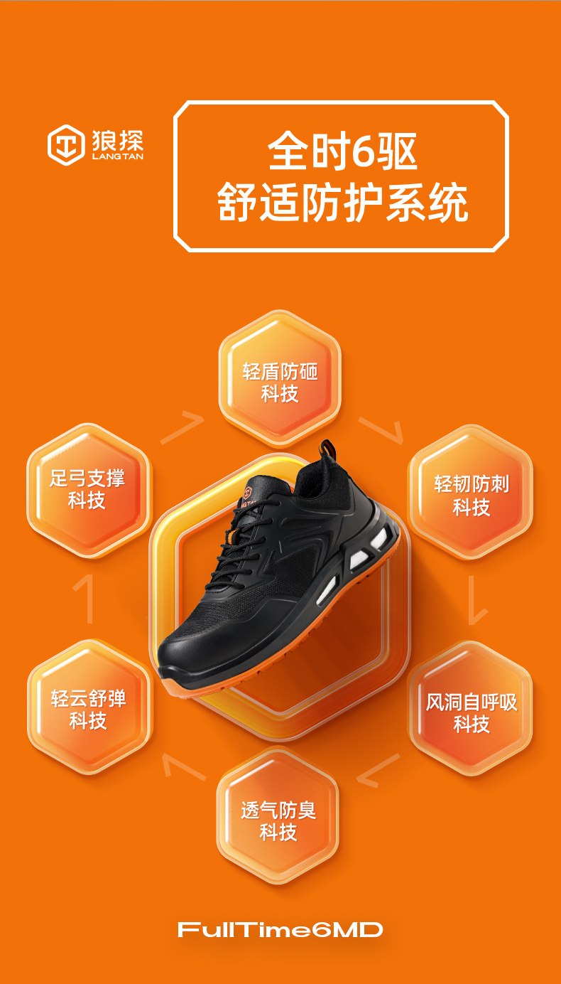 狼探劳保鞋男四季款玻纤头防静电防砸防刺高端科技安全鞋