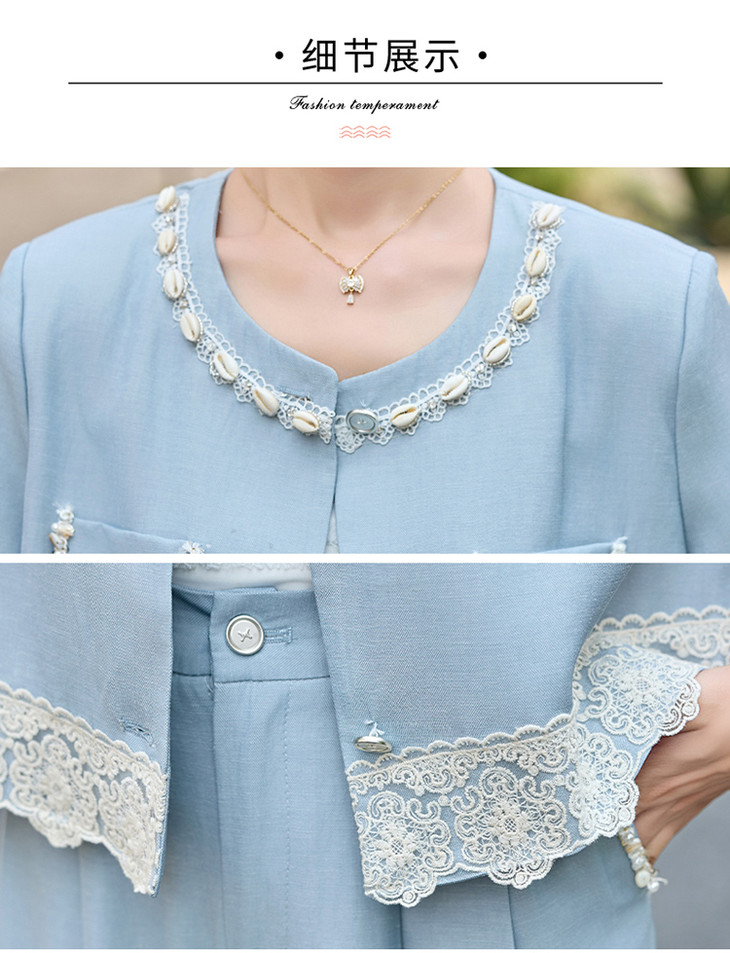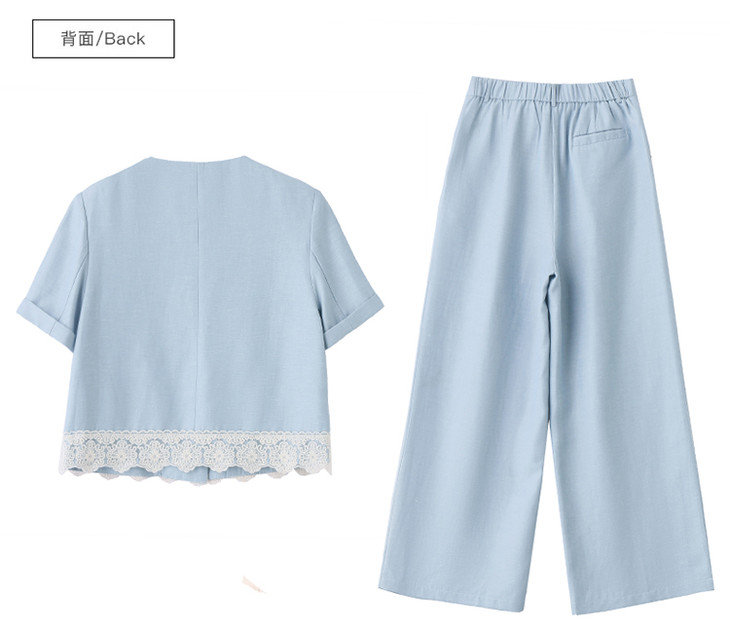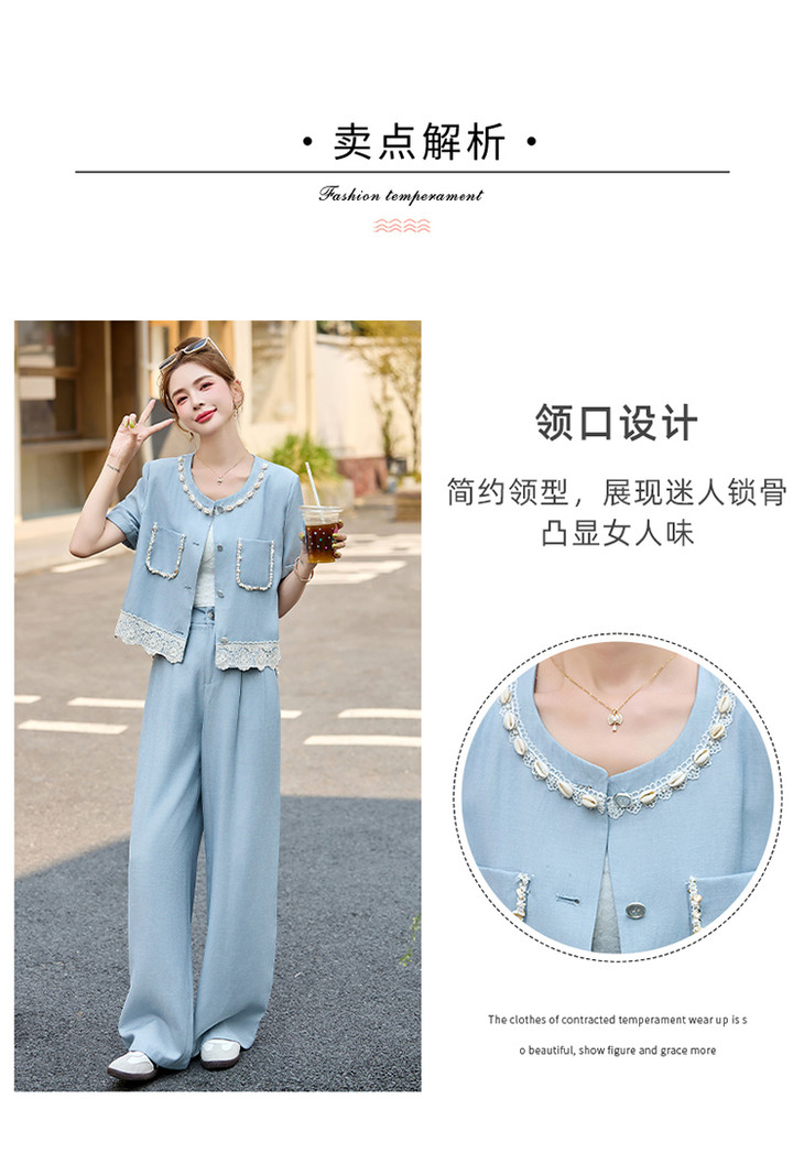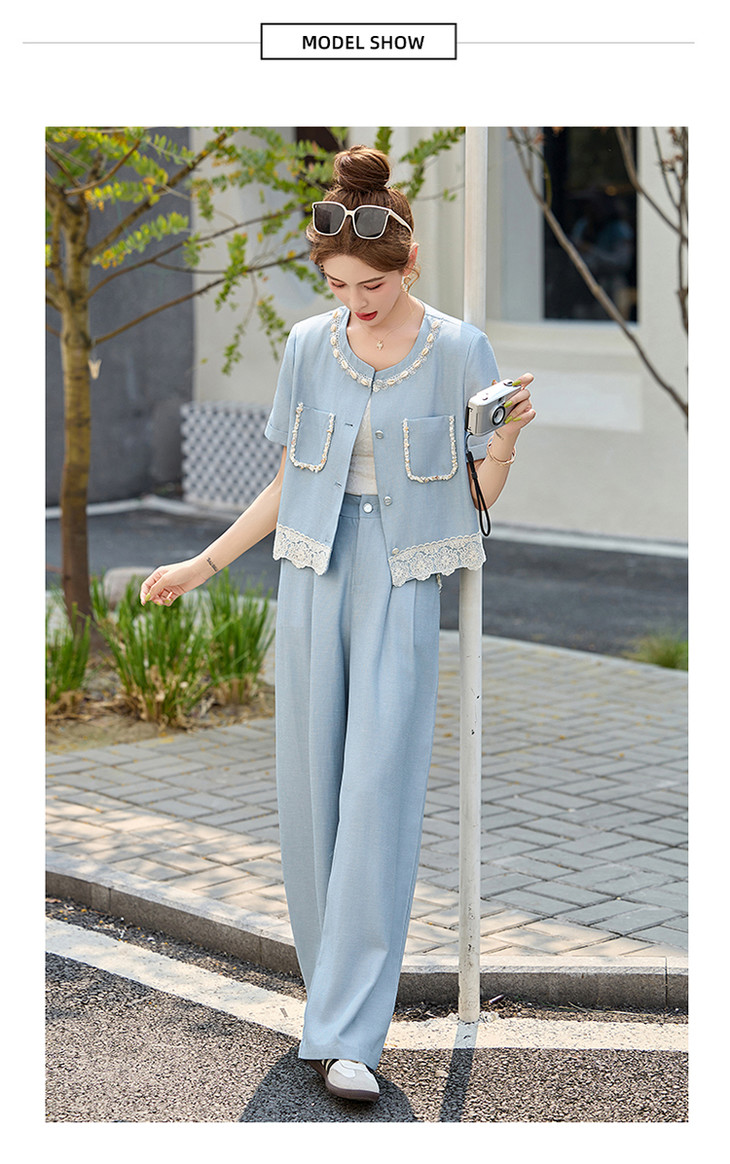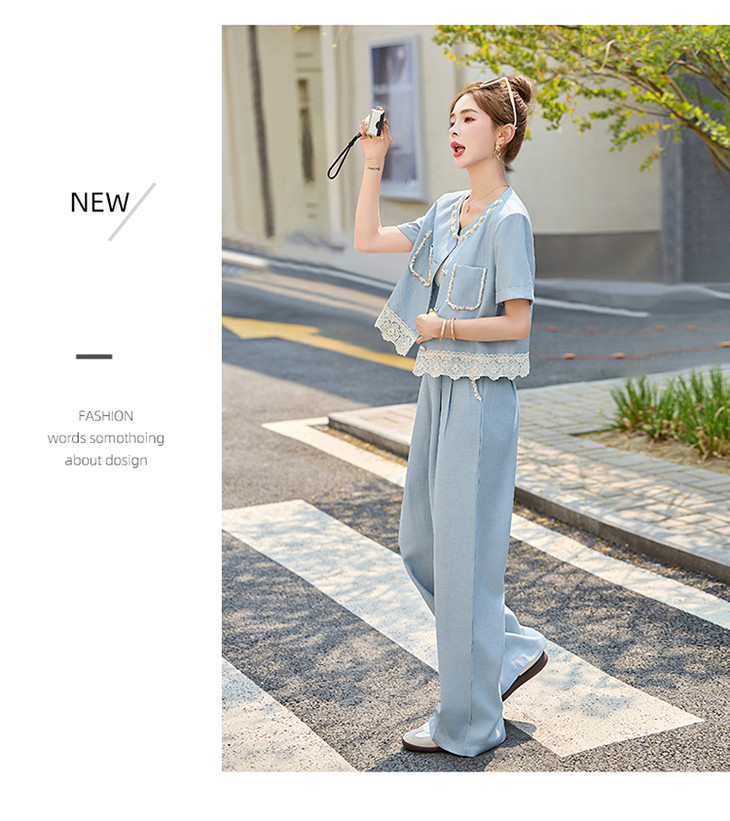 时尚香风套装2025新款夏日穿搭蕾丝拼接名媛气质阔腿裤两件套YQH9201