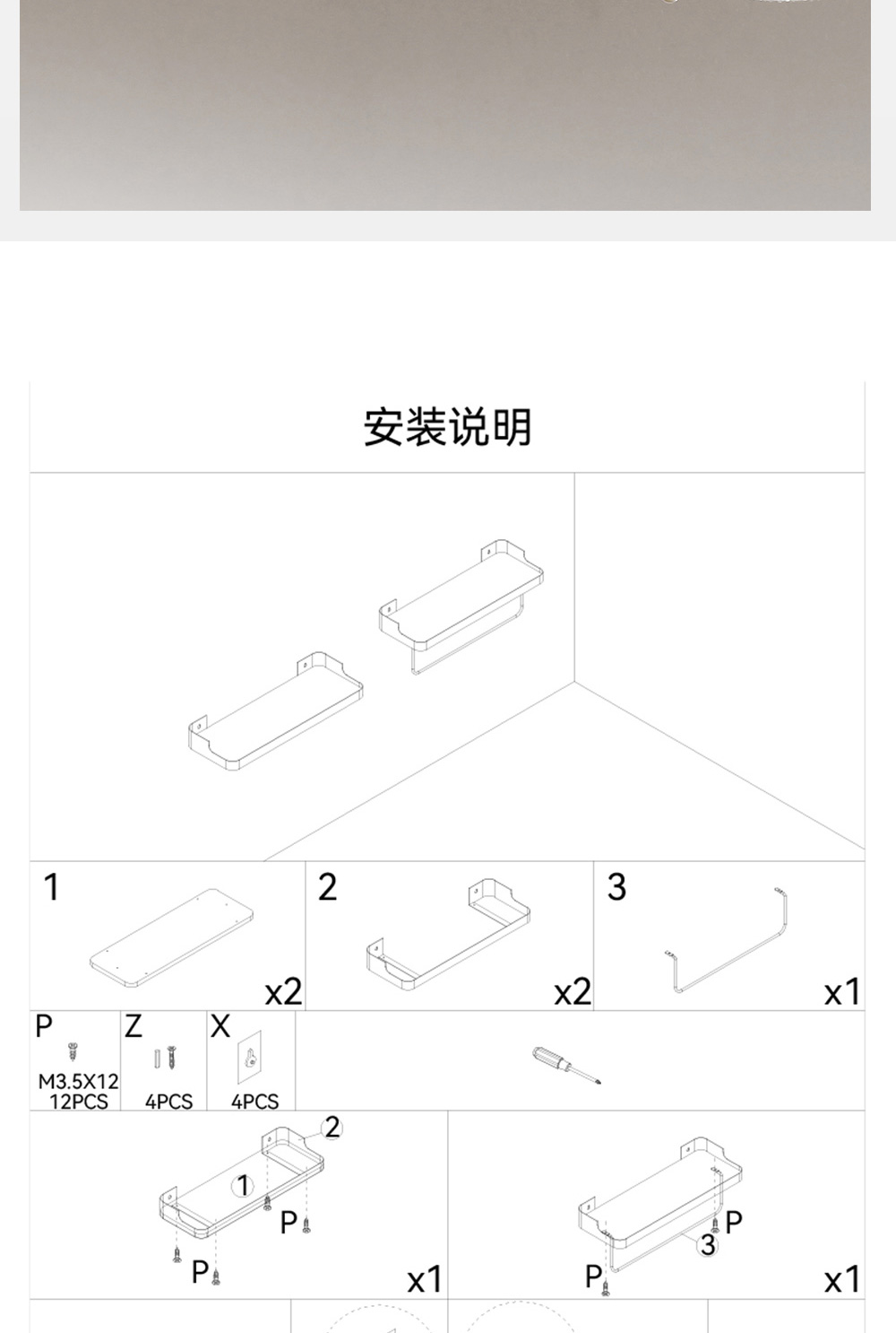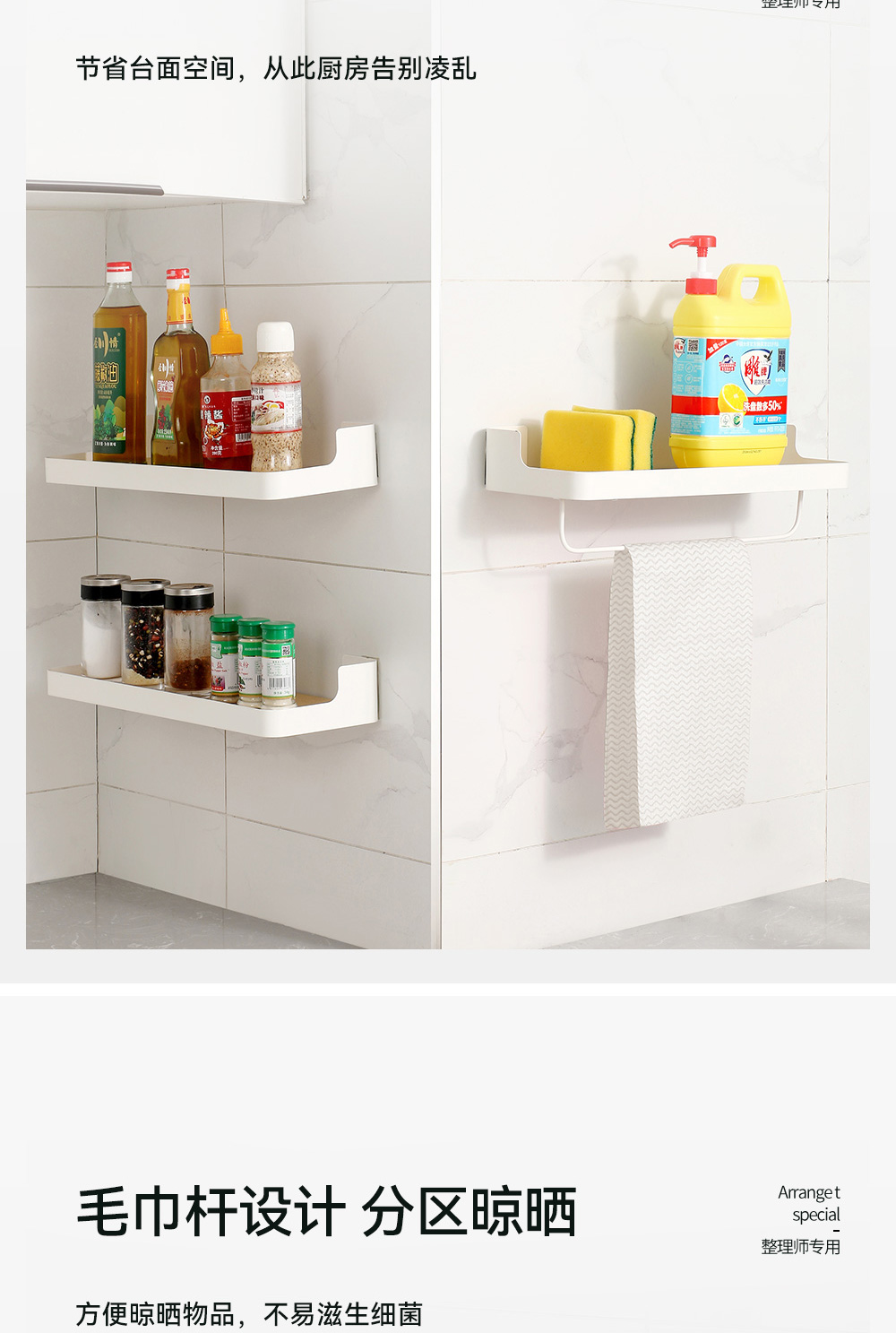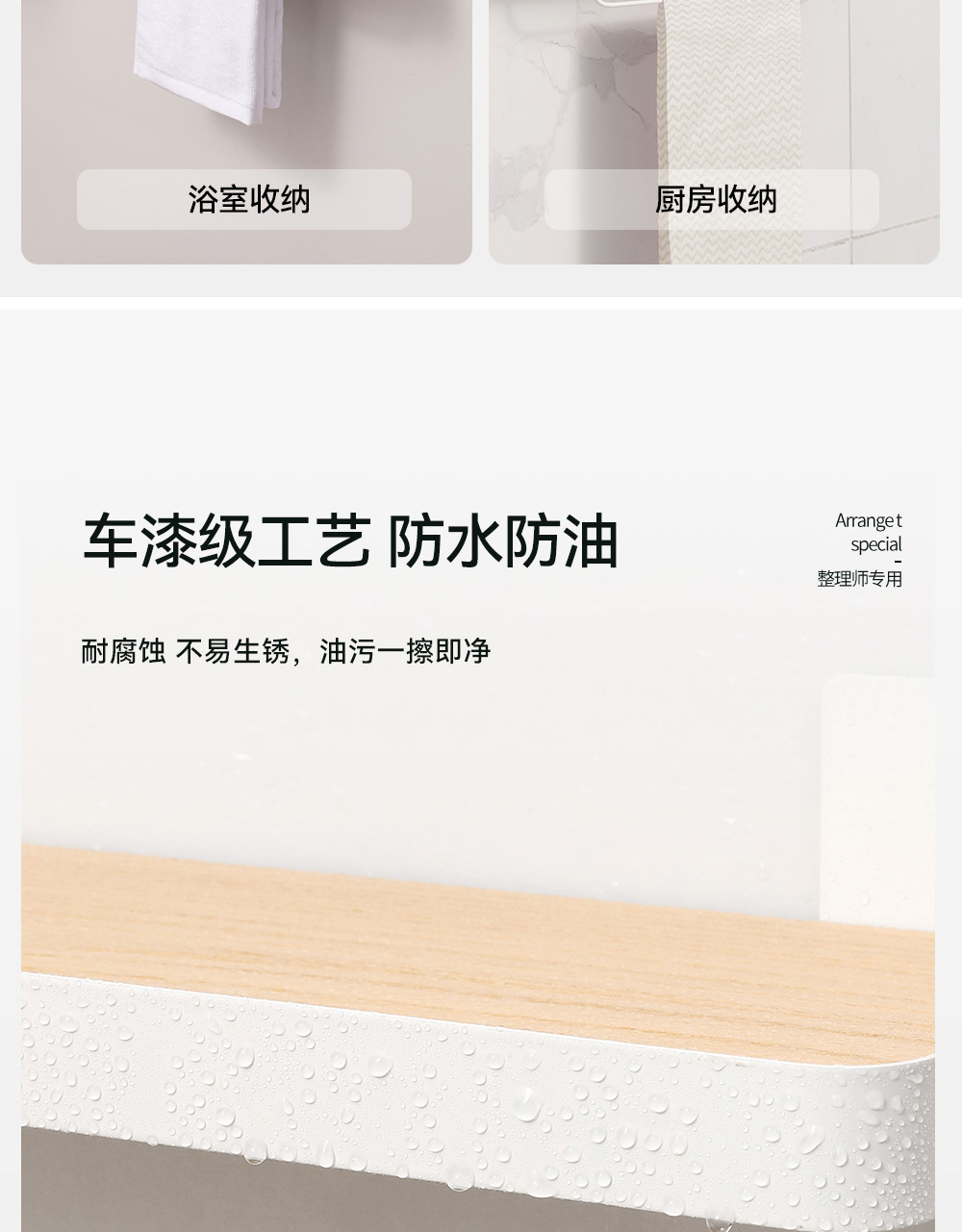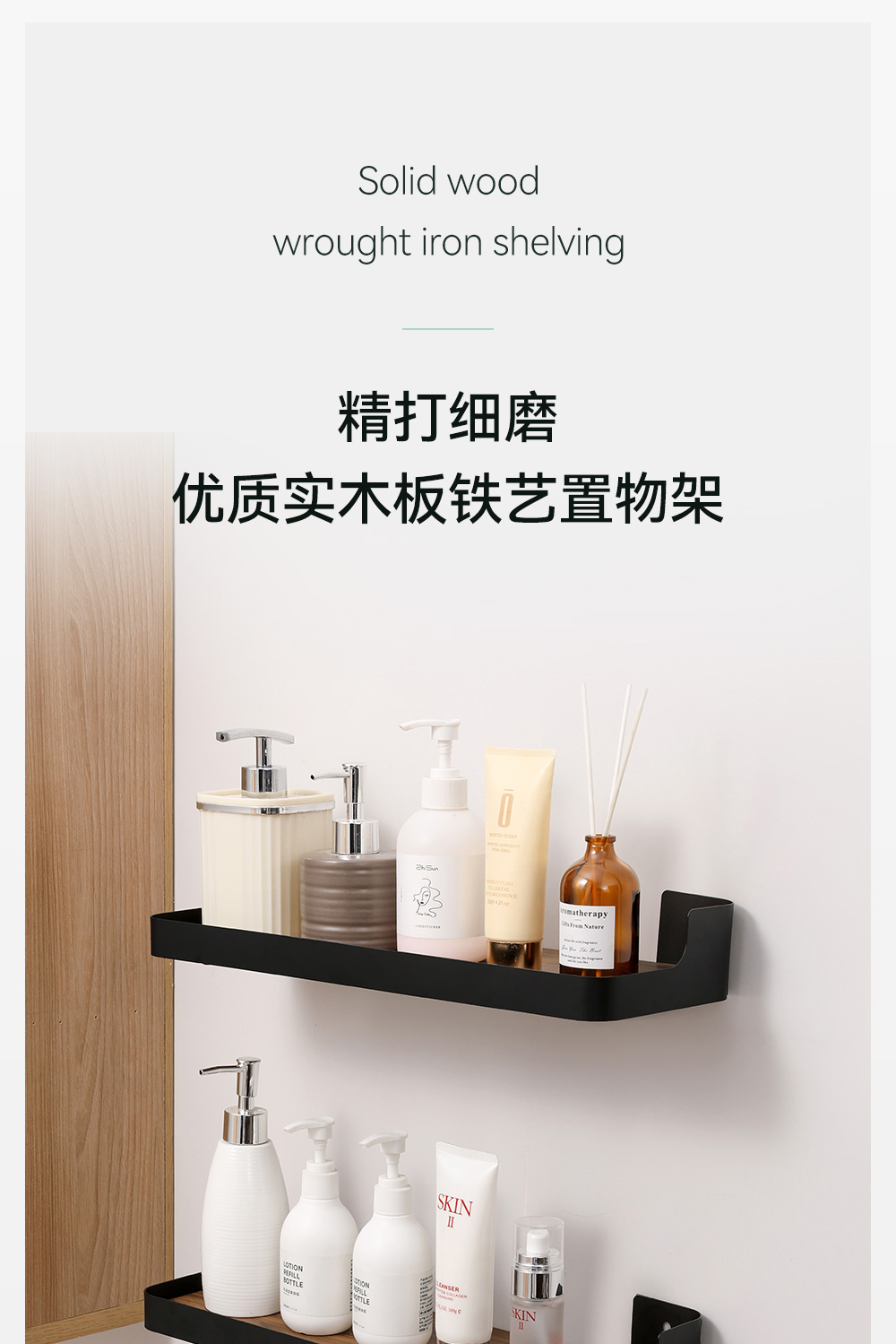 【秒杀】【2个装】厨房卫生间收纳架木板铁艺置物架