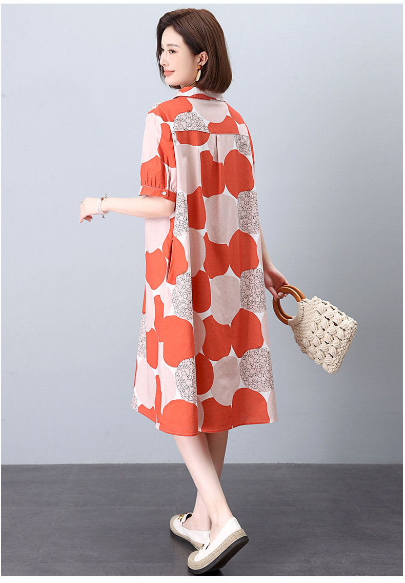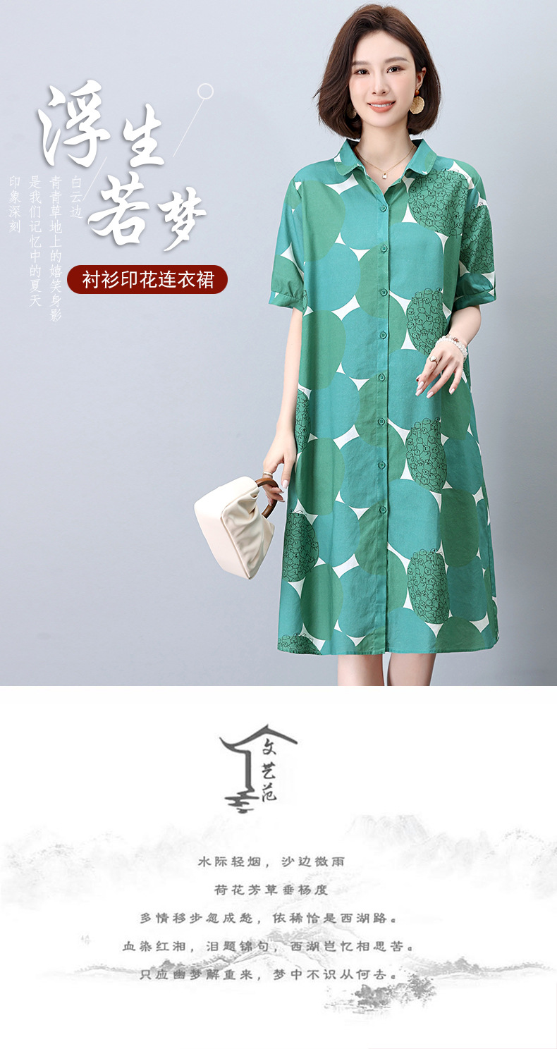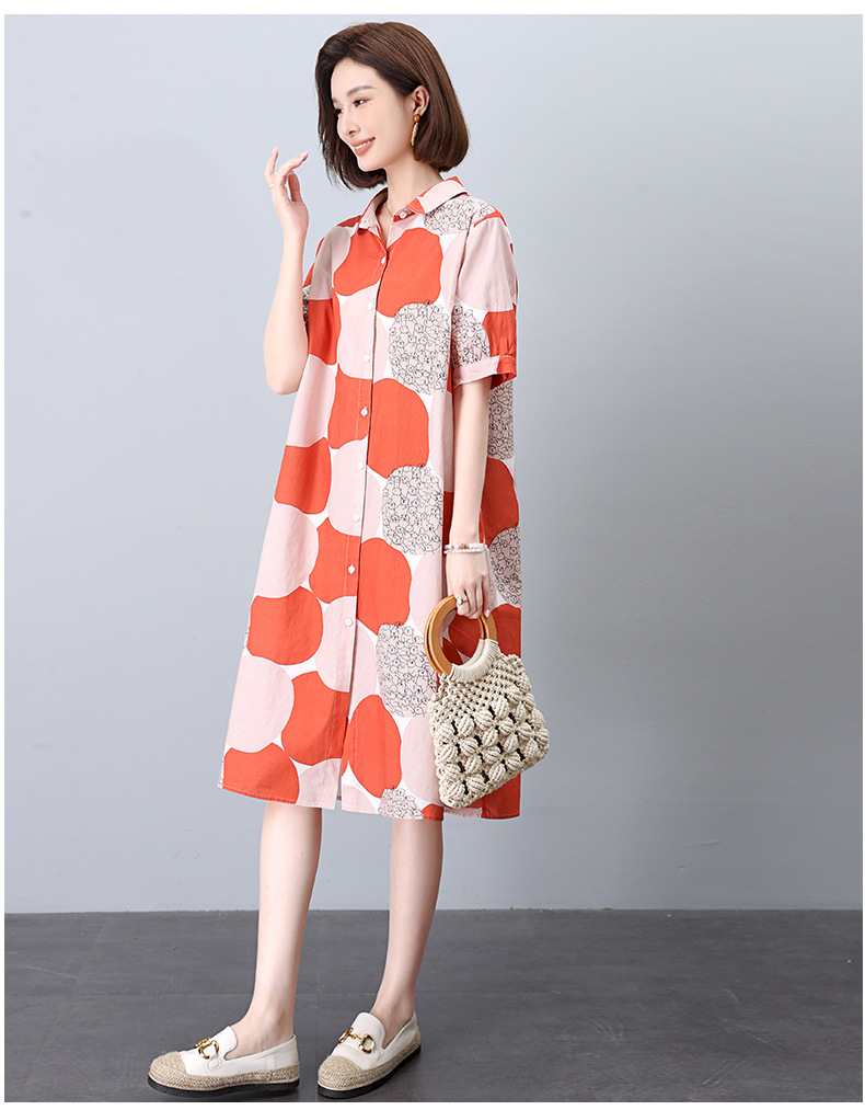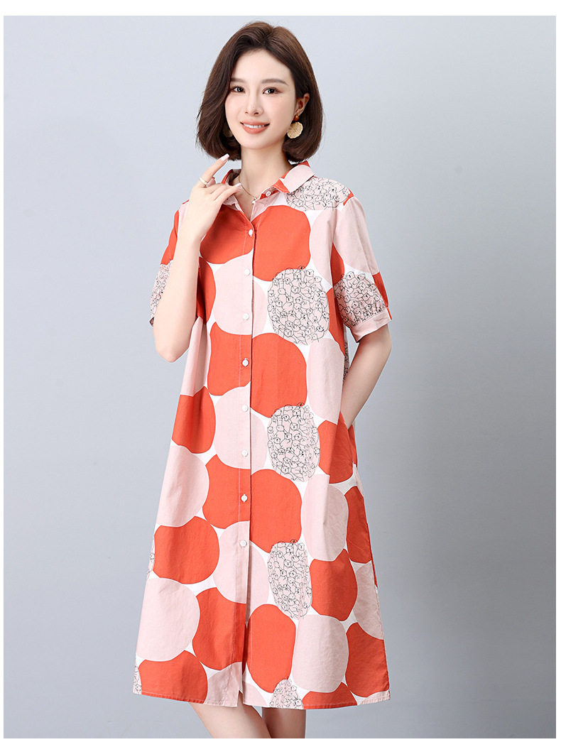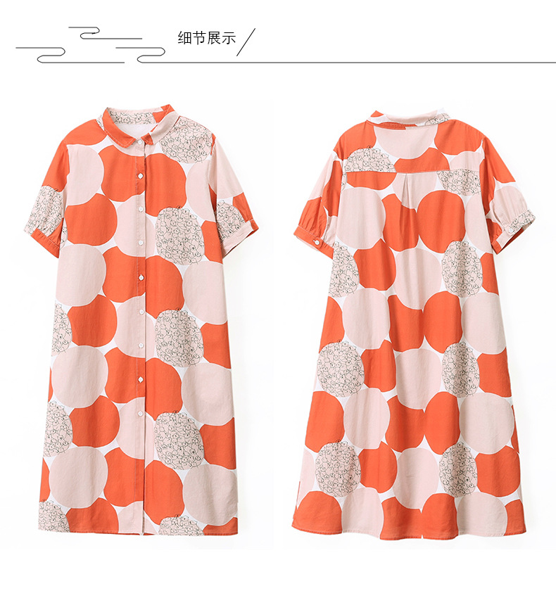 丁摩 纯棉印花连衣裙女中长款衬衫裙子Y7630