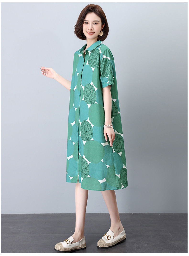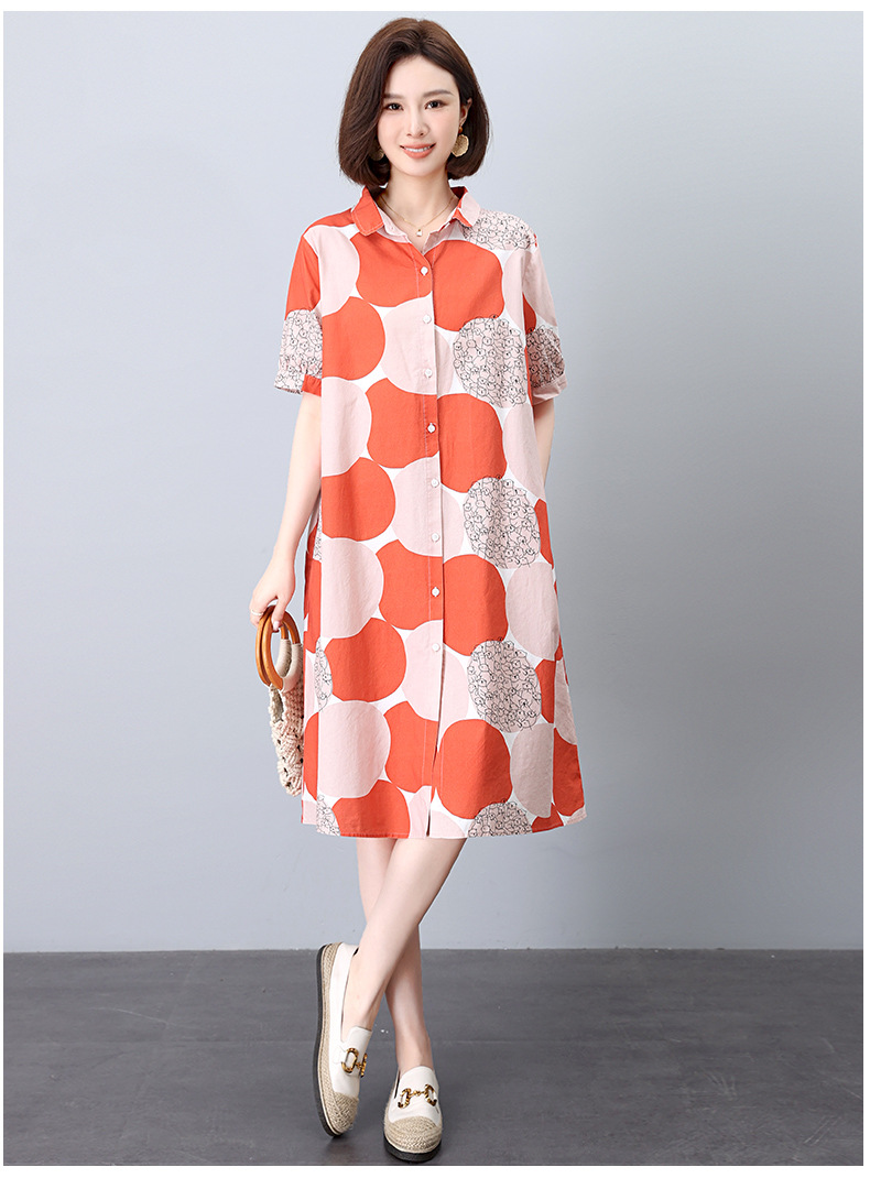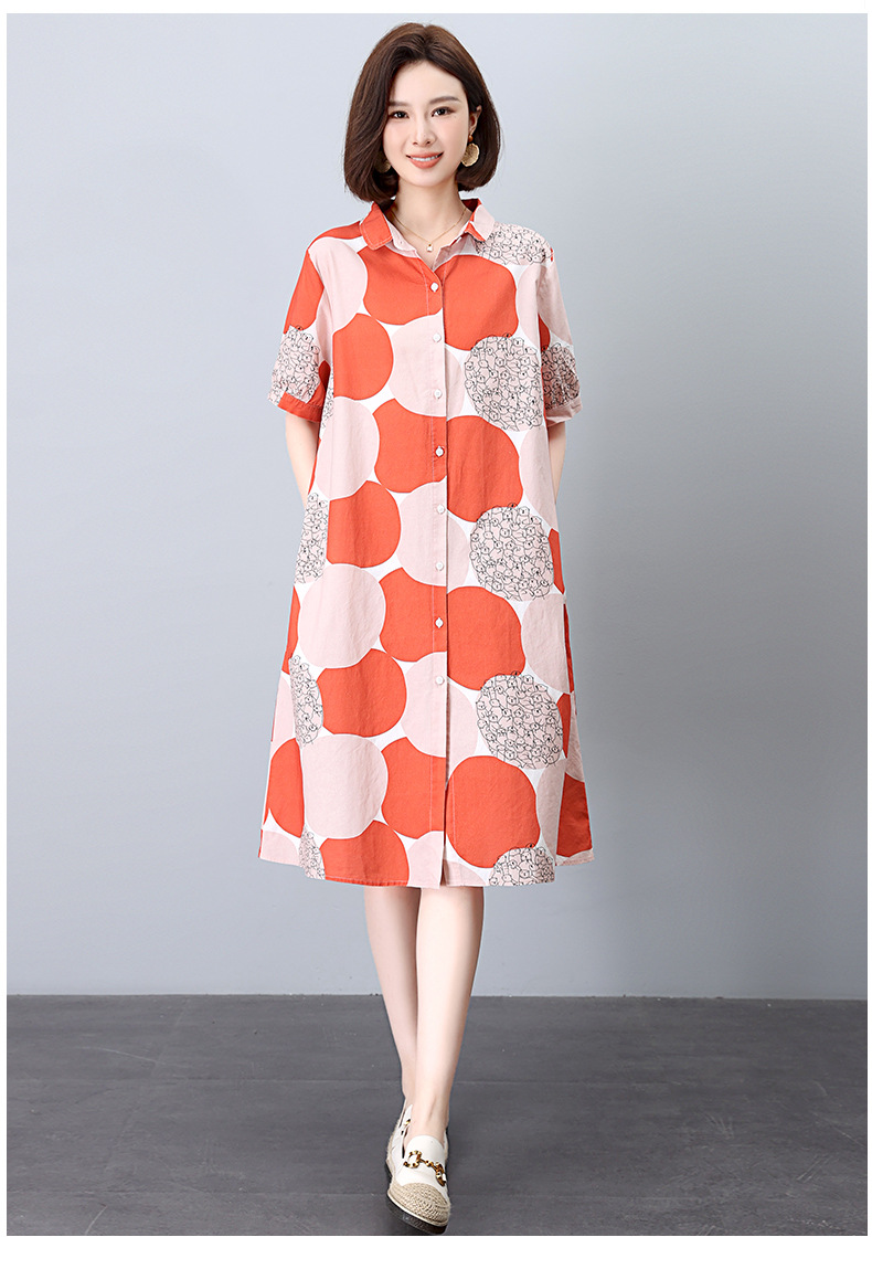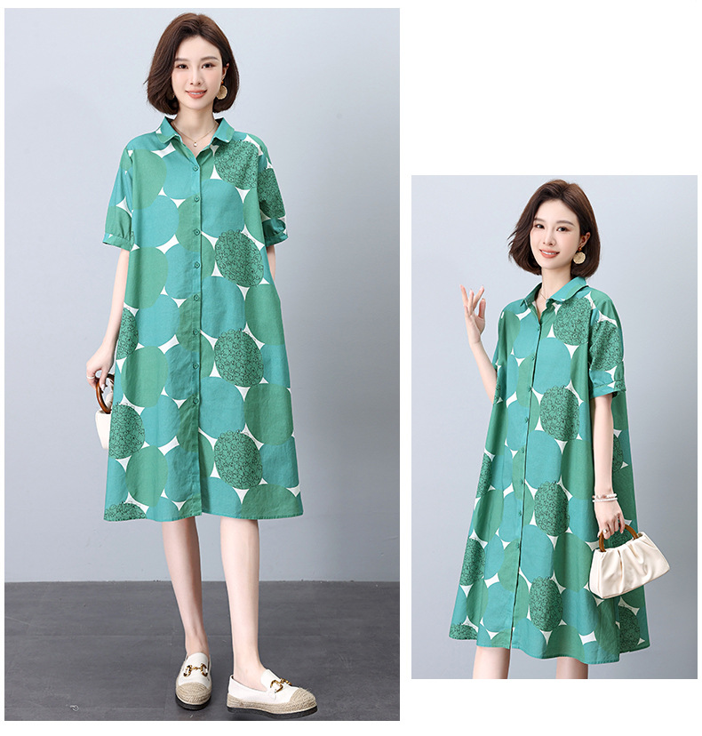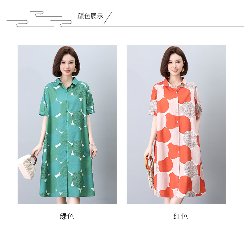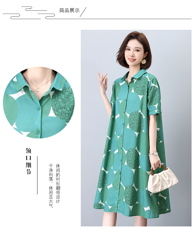 丁摩 纯棉印花连衣裙女中长款衬衫裙子Y7630