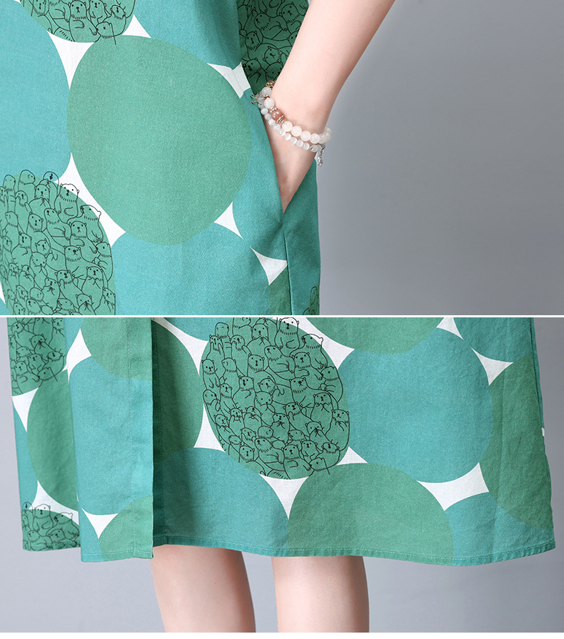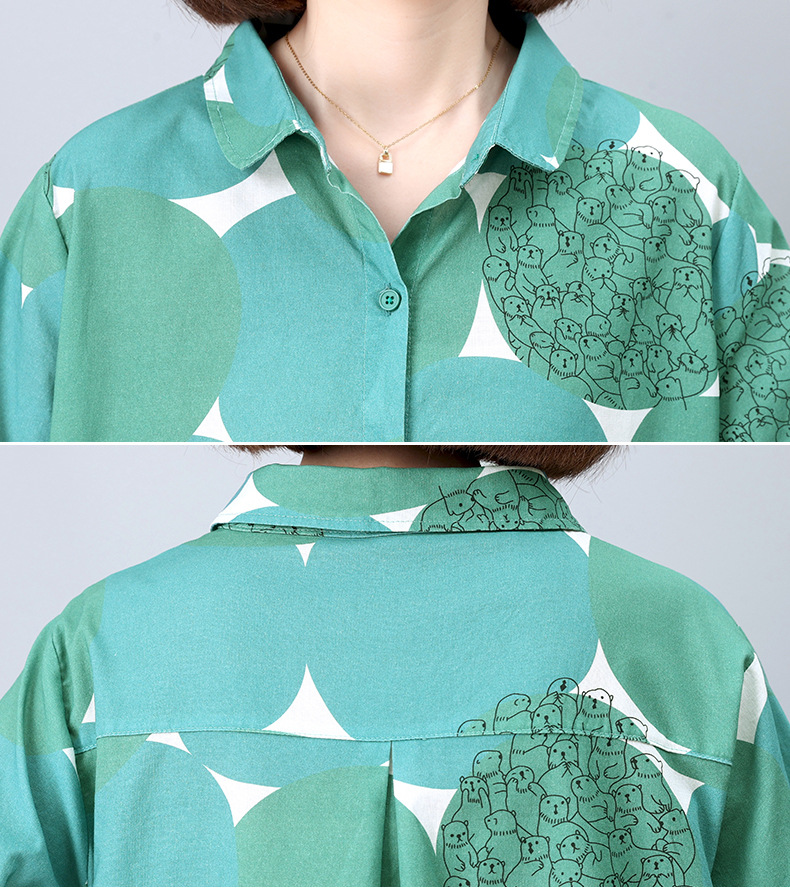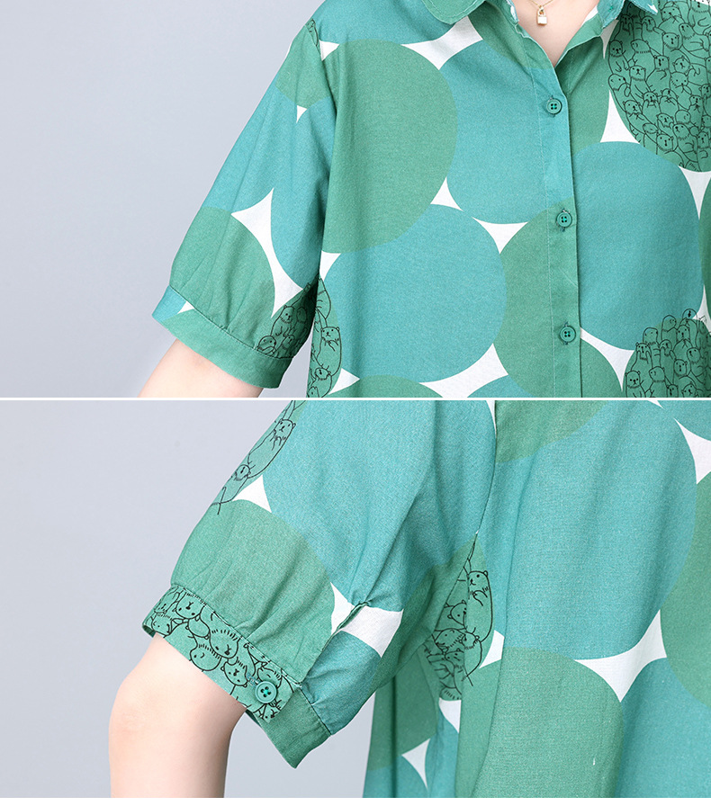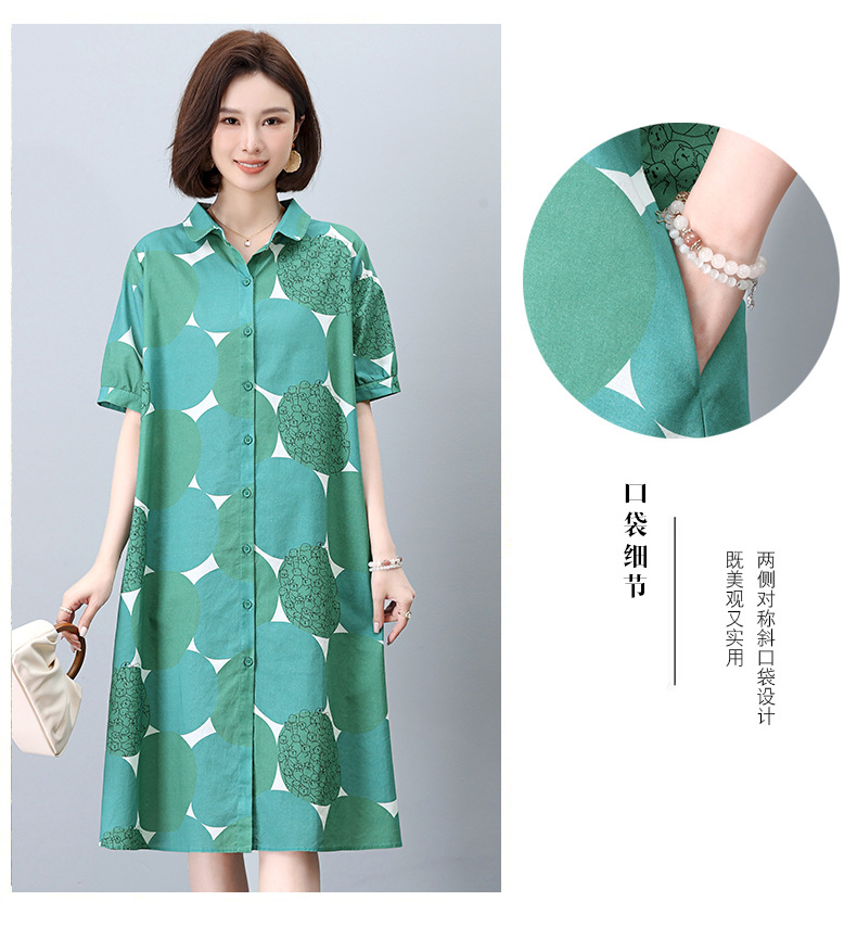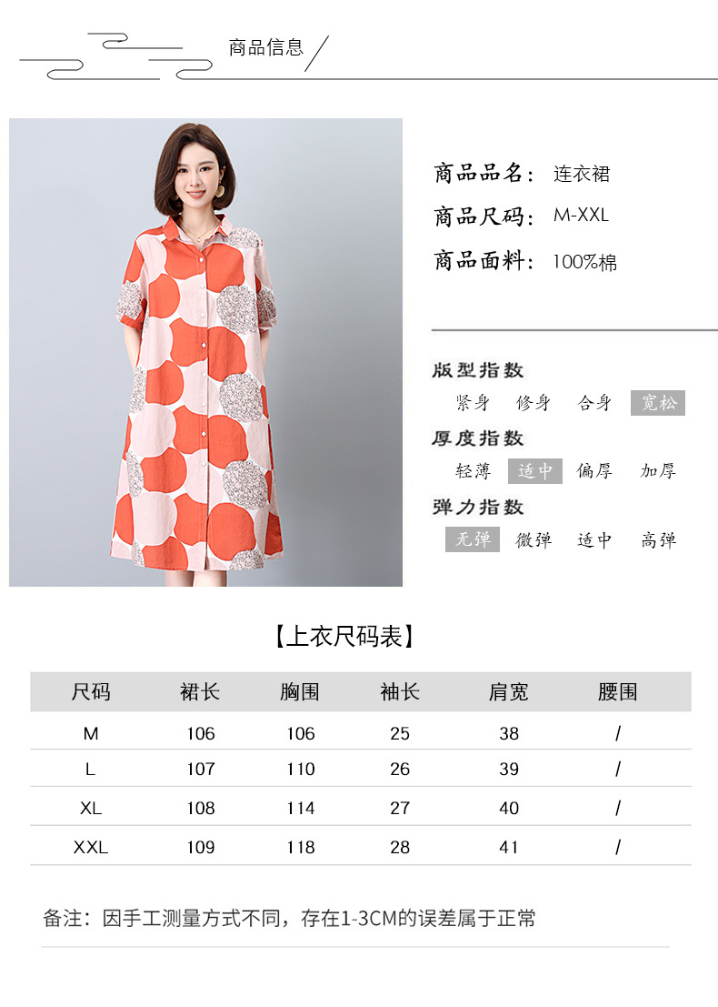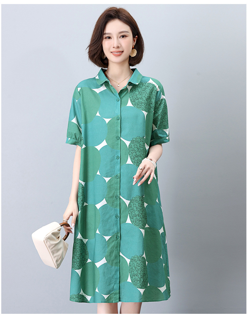 丁摩 纯棉印花连衣裙女中长款衬衫裙子Y7630