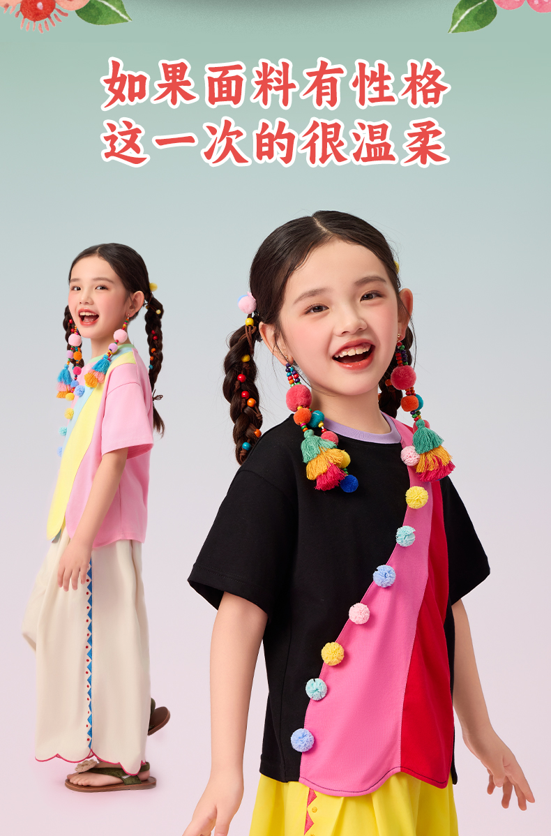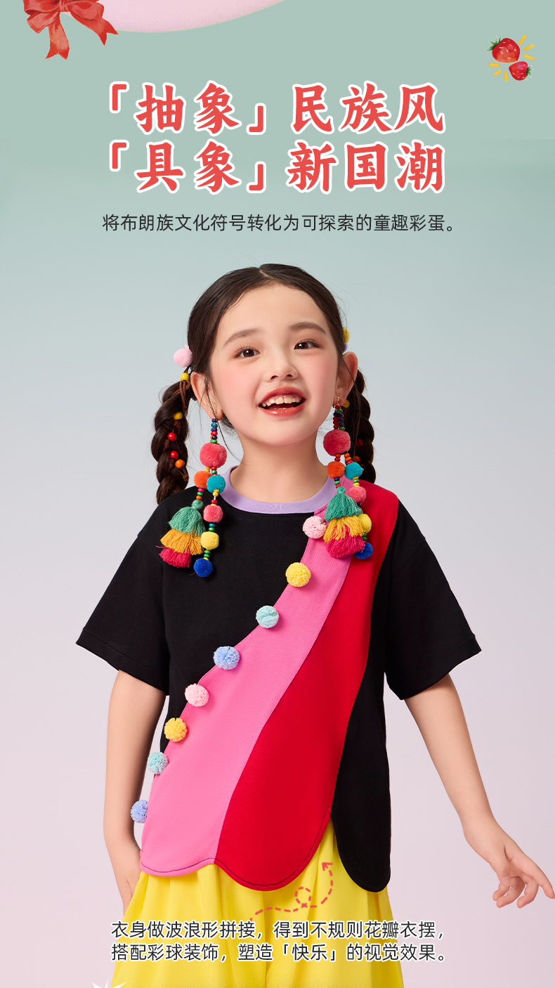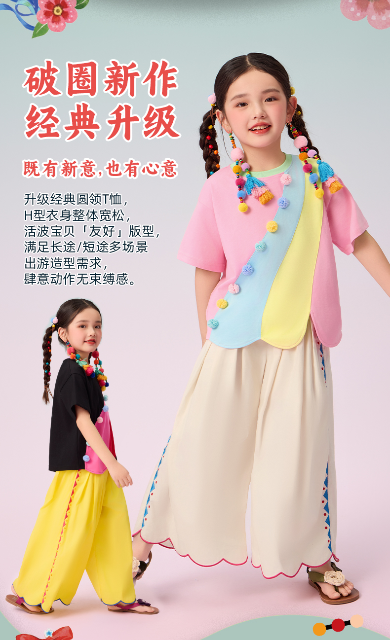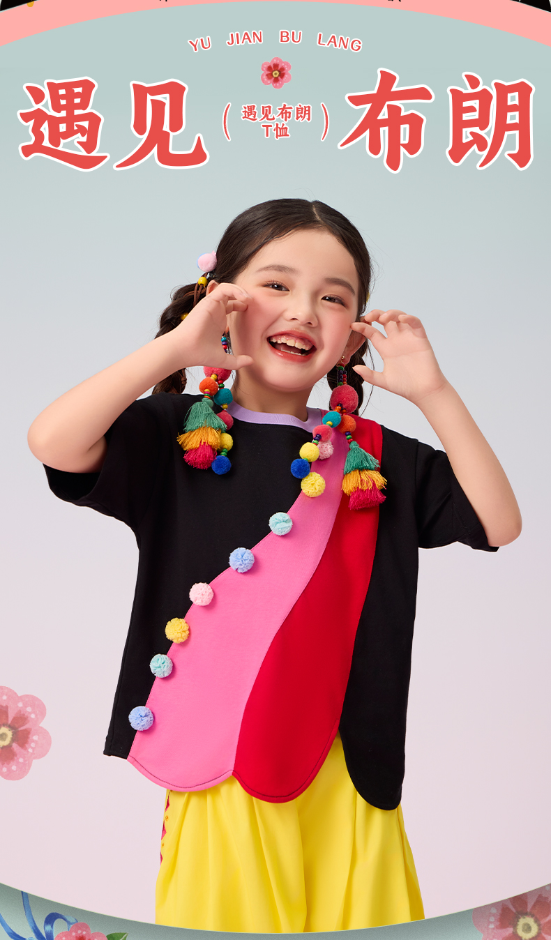 年衣短袖女童2025夏季新款民族风原创宽松圆领遇见布朗T恤