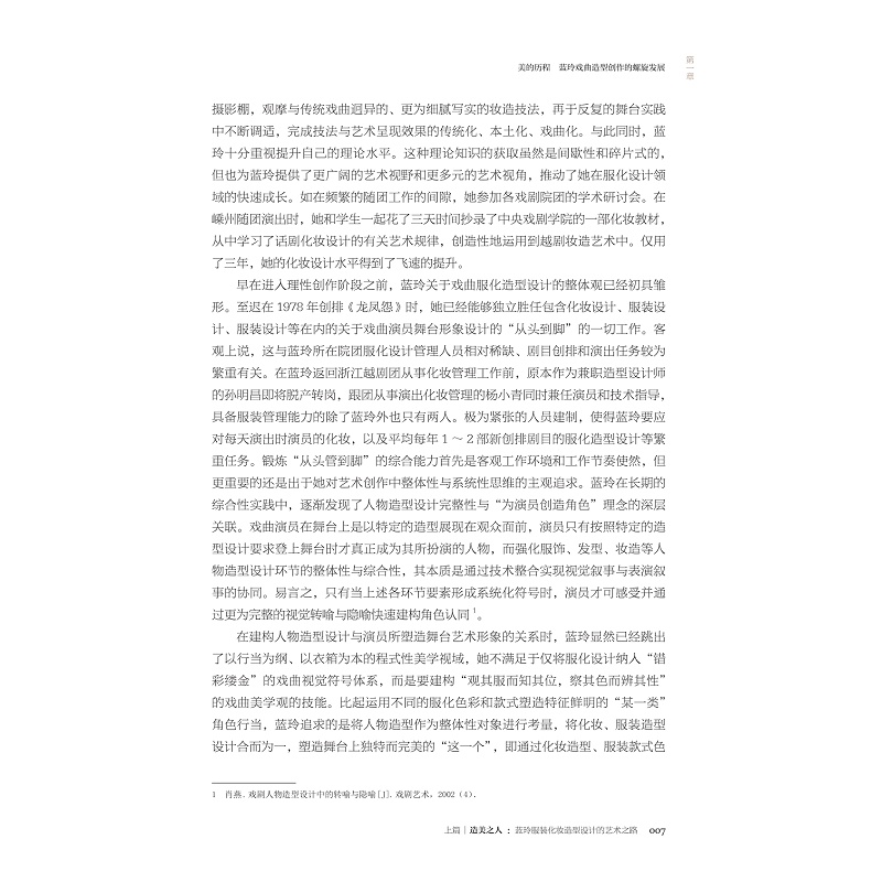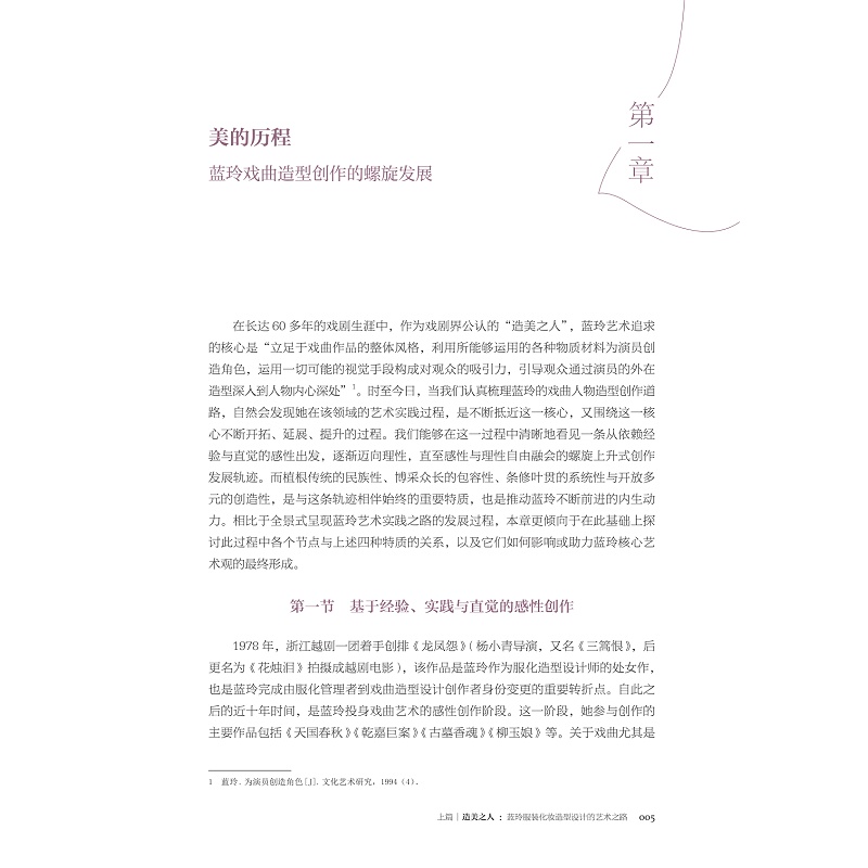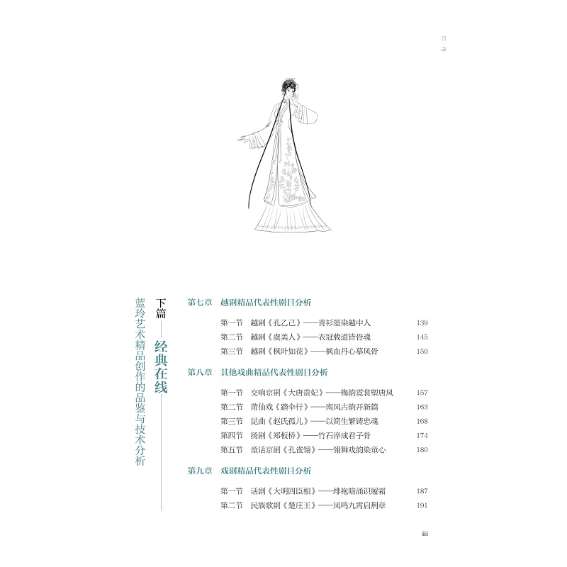 本书主要围绕国家一级舞美设计蓝玲的戏曲服装造型艺术进行研究,蓝玲的服装设计在继承传统服饰的基础上勇于创新,融古典美和现代美为一体,以简洁、流畅、优美、抒情的特点形成自己独特的风格而享誉海内外。已为十多个剧种、众多剧团及影视的百余台剧目进行了创作。本书主要内容包括:蓝玲艺术人生,美学追求、艺术体悟等。蓝玲戏曲服装造型呈现流程,主要内容以蓝玲个人创作为例,从研读剧本到舞台呈现的全部标准流程。蓝玲戏曲服装造型作品分析,主要内容以蓝玲各个时期、各个领域的代表作为例,围绕该例进行分析。