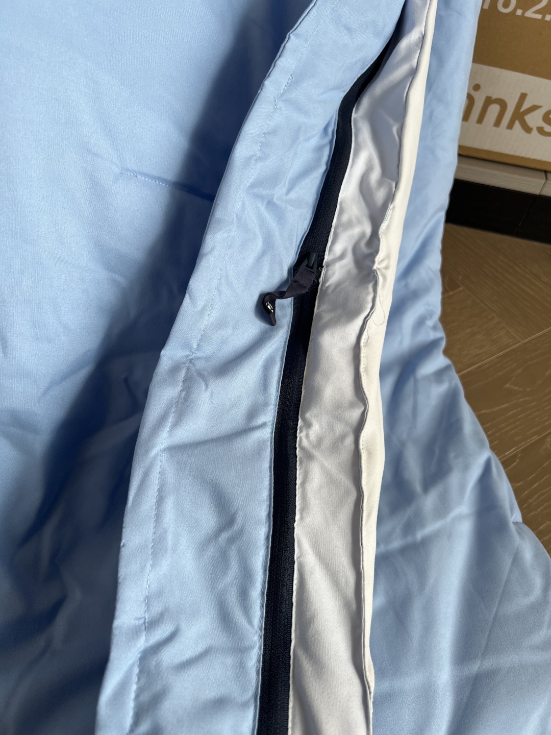 AB双层二合一的设计 就跟冲锋衣的内外双胆设计一样 它的上层能锁温保暖 下层又可以吸湿排汗 就像盖了个移动的中央空调似得 横跨四季!