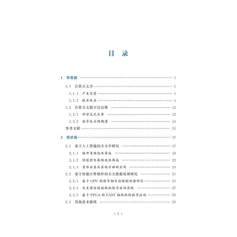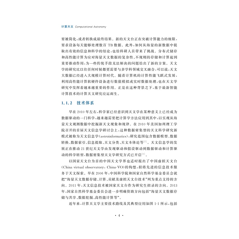 本书针对目前射电天文学领域,尤其是人工智能寻星、天文信息学、射电望远镜终端设备等领域,对精确化探索宇宙背景下巡天大数据时代的研究现状进行了阐述,并基于此探讨技术路线与发展趋势,详细论述了当前面临的重大挑战和机遇,最后还介绍了之江实验室即将部署的计算天文学方向的研究工作。