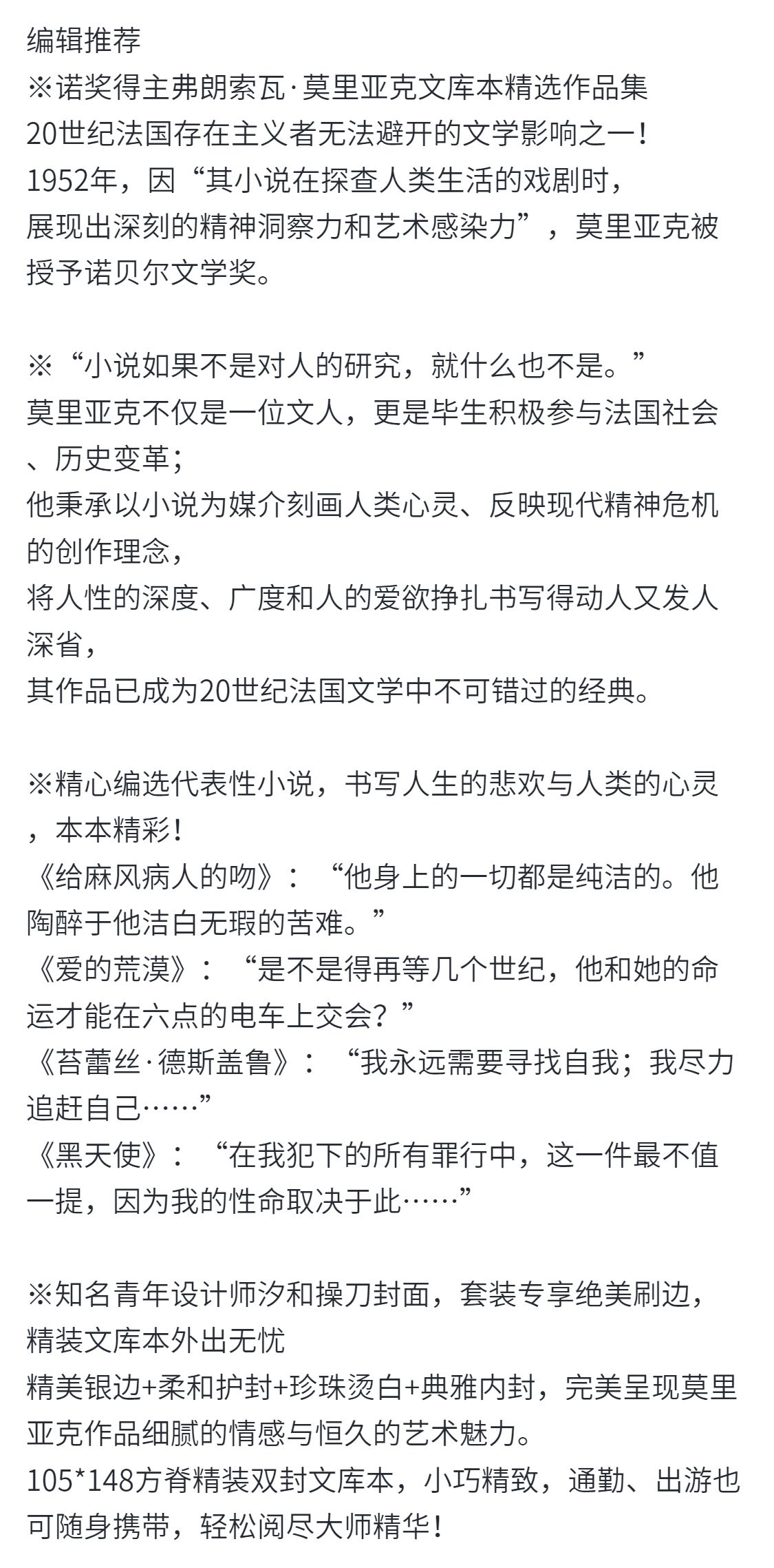 弗朗索瓦·莫里亚克精选集(全四册) | 绝美银色刷边文库本套装