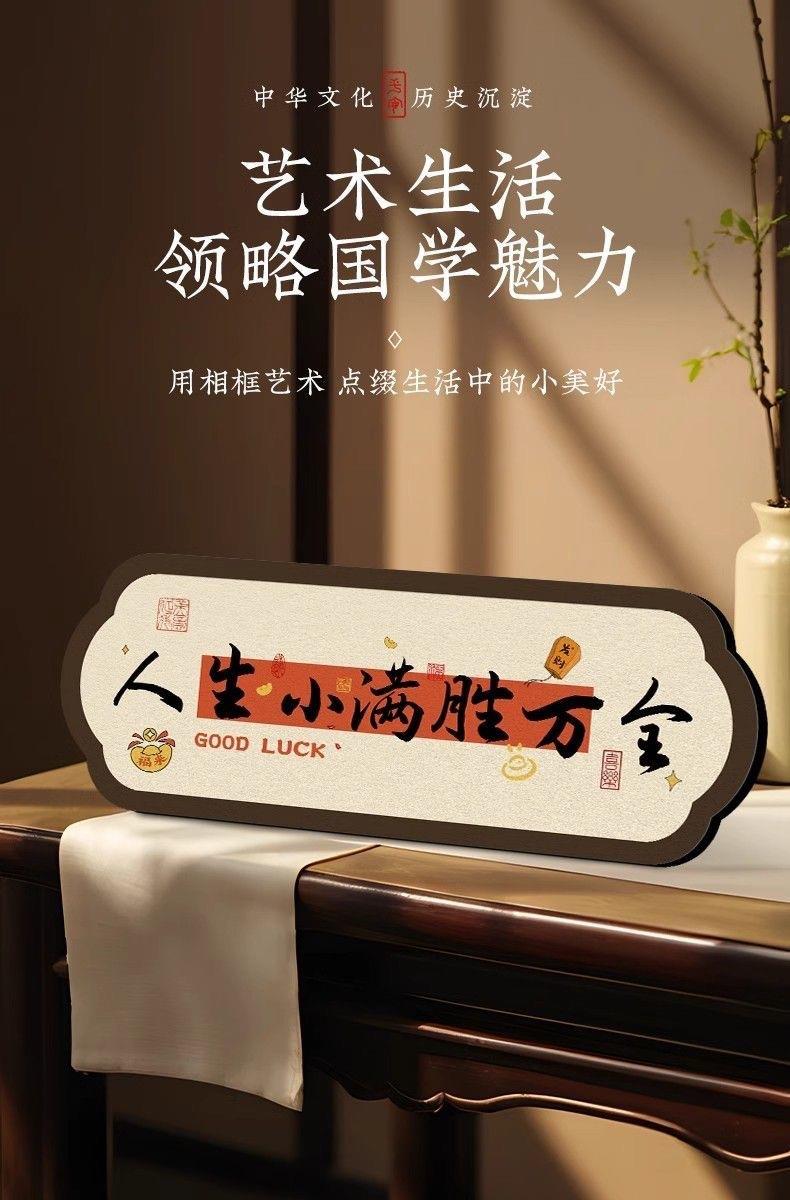 【人生小满胜万全】中式励志字画摆件横款相框摆台入户玄关客厅装饰品