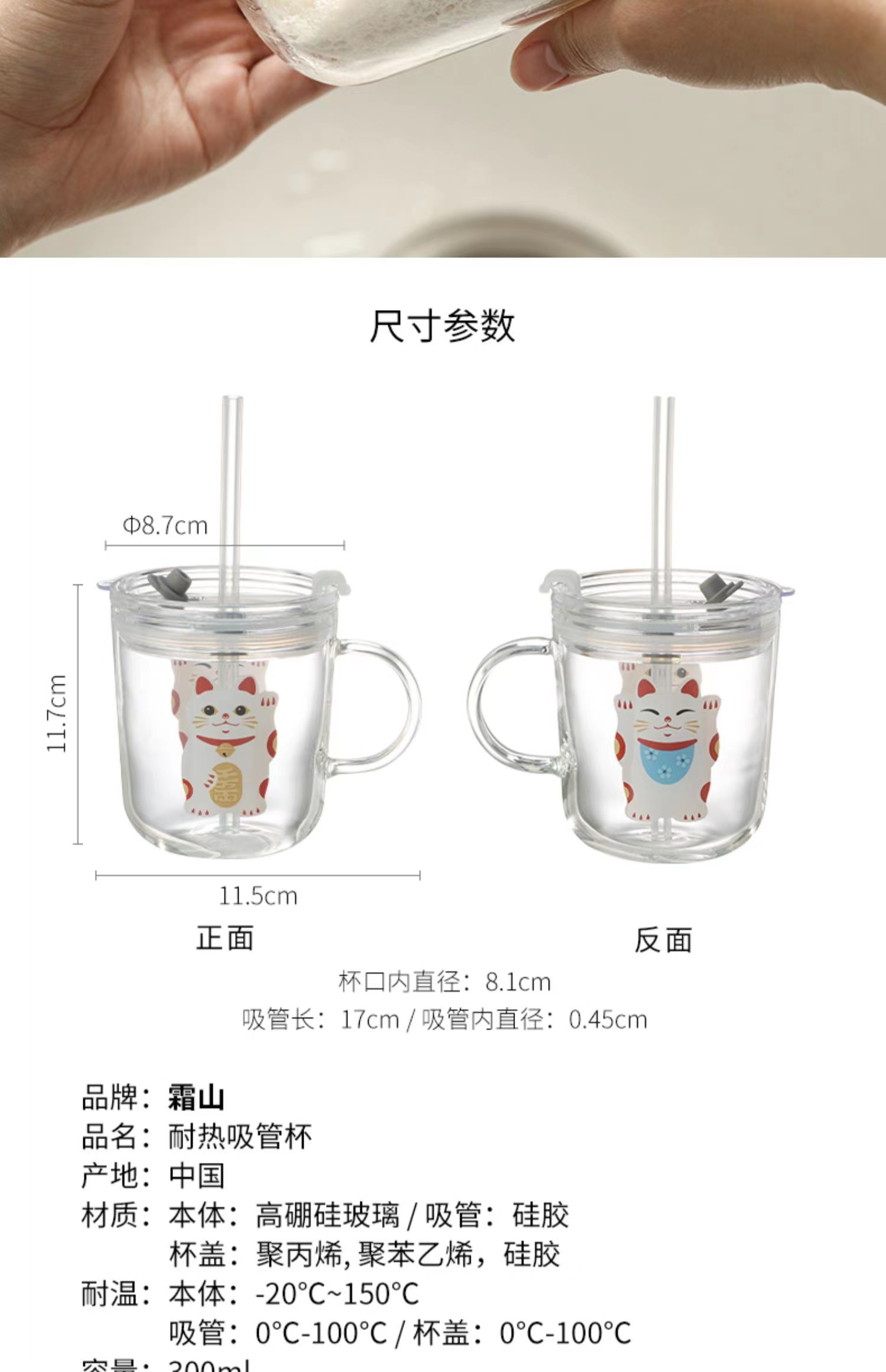 前年上过一款玻璃杯,当时也是很人气,大家都入了。很久没上这种类似马克杯,可直饮,可吸管的玻璃杯了。
