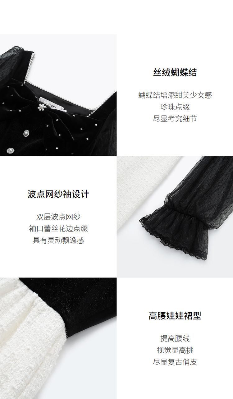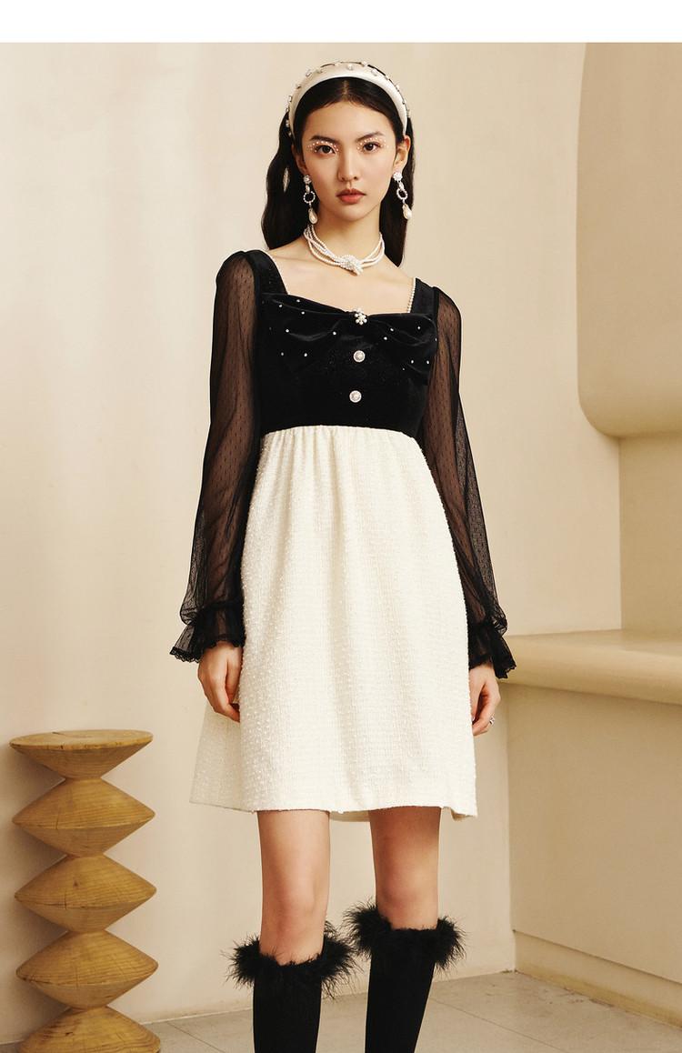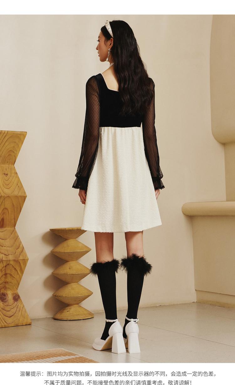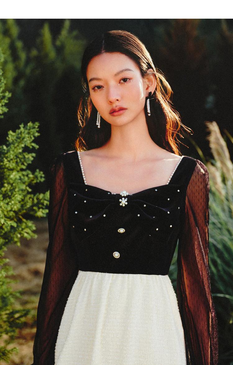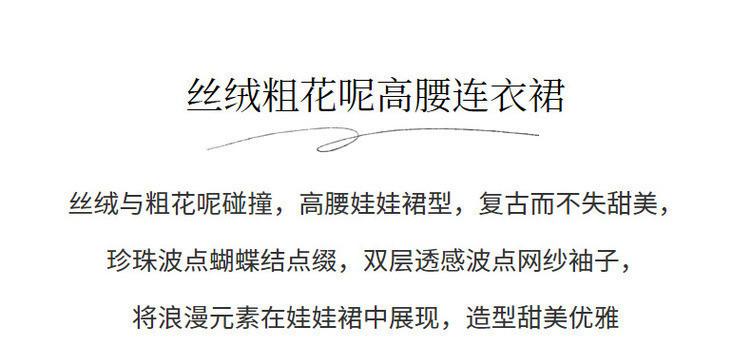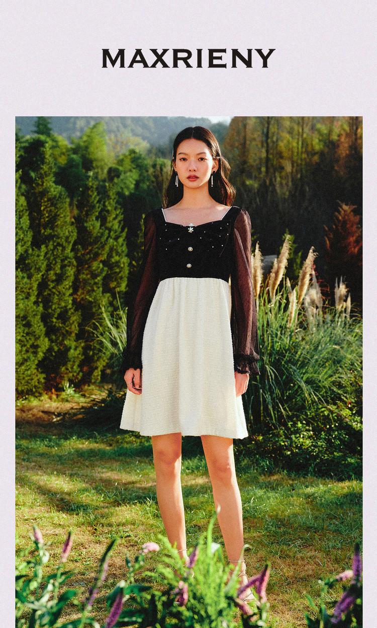 【波动心弦】MAXRIENY甜美复古感丝绒裙秋季拼接花纱连衣裙(货号:MS88DR031)