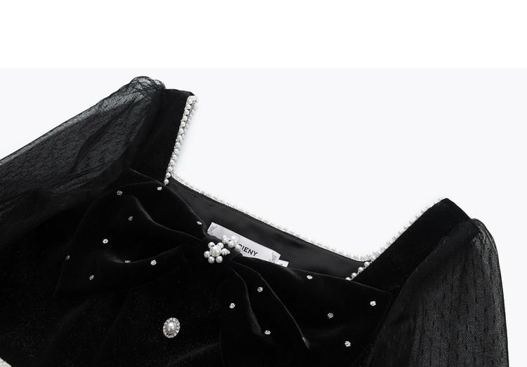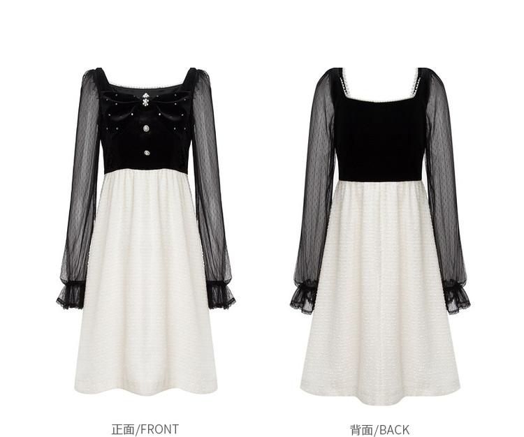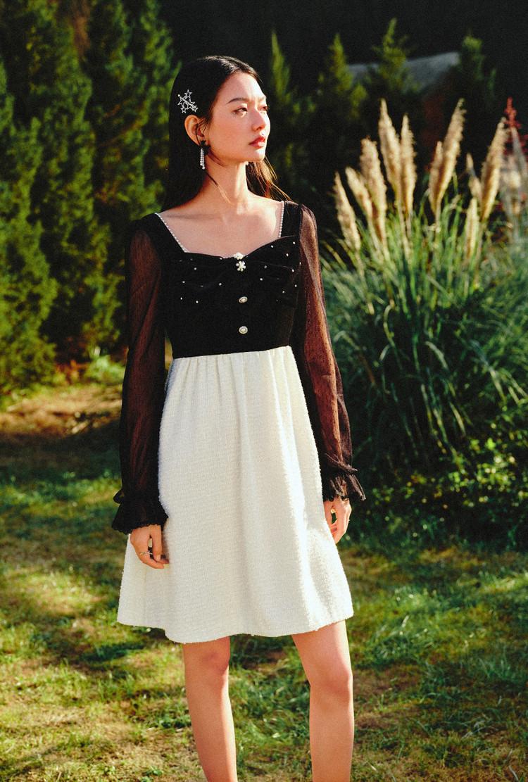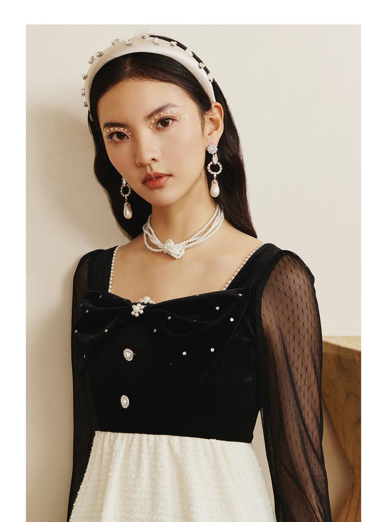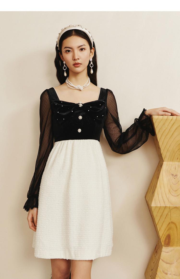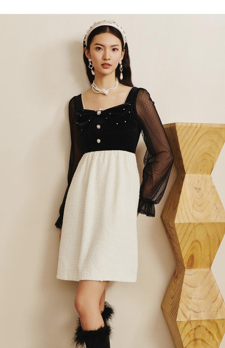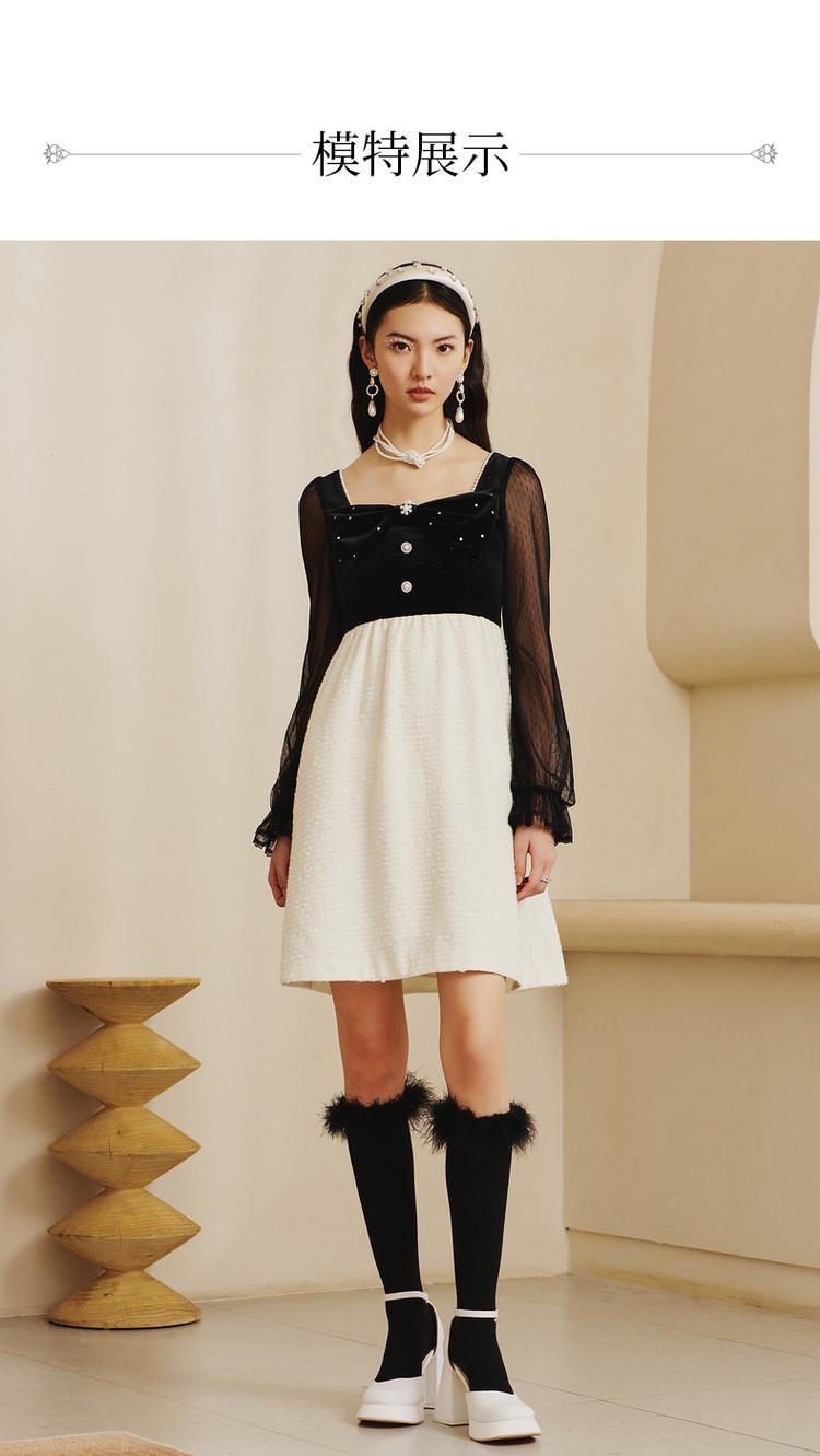 【波动心弦】MAXRIENY甜美复古感丝绒裙秋季拼接花纱连衣裙(货号:MS88DR031)