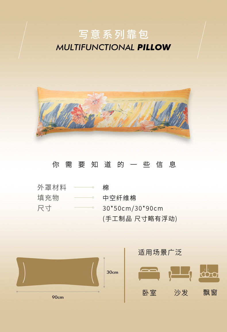写意系列长条沙发靠包抱枕法式床头夹腿睡觉客厅轻奢高级感可拆洗