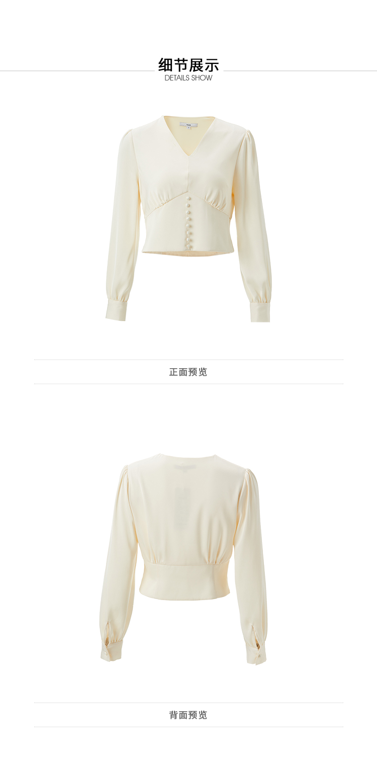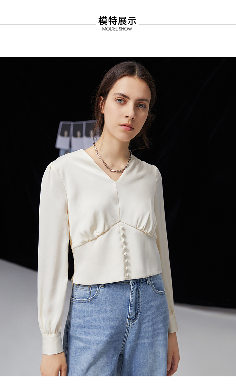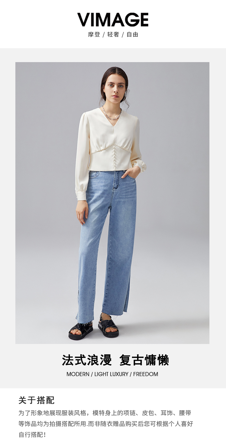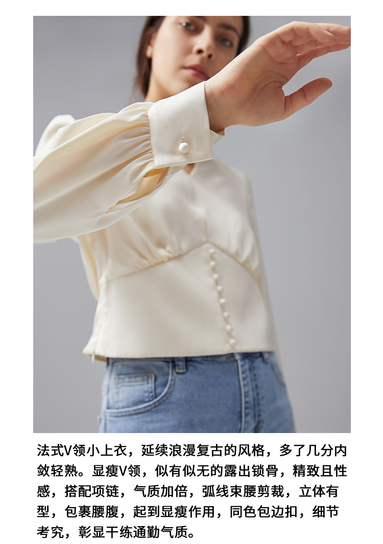 VIMAGE纬漫纪新款时尚通勤V领显瘦百搭小上衣女VC2113214