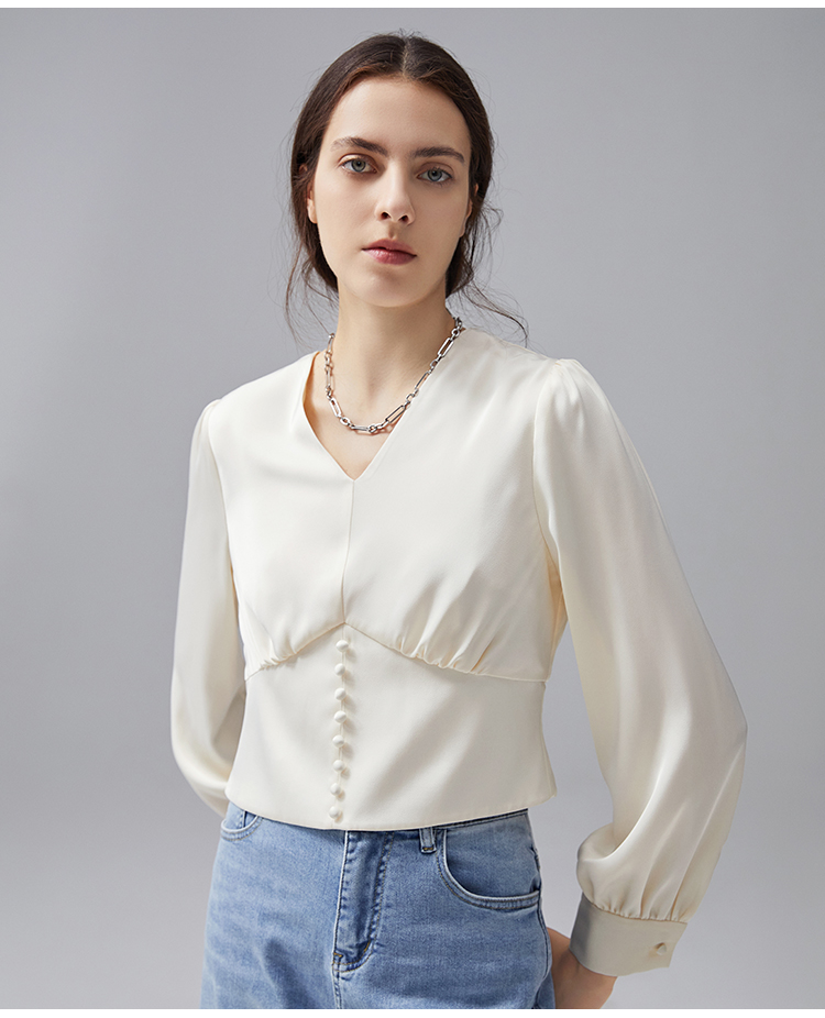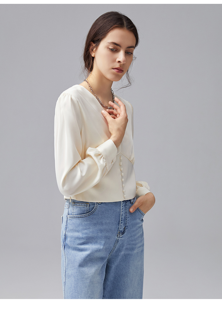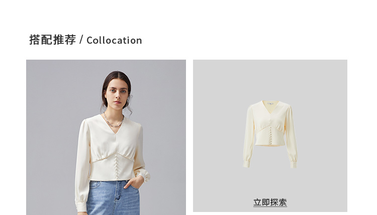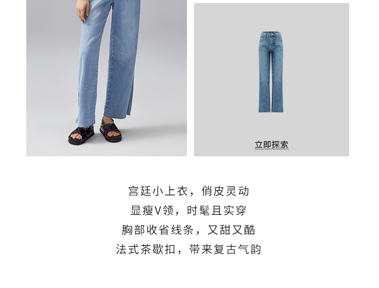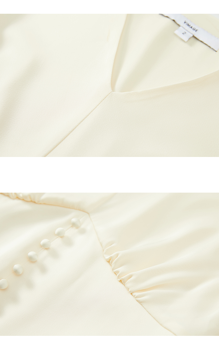 VIMAGE纬漫纪新款时尚通勤V领显瘦百搭小上衣女VC2113214
