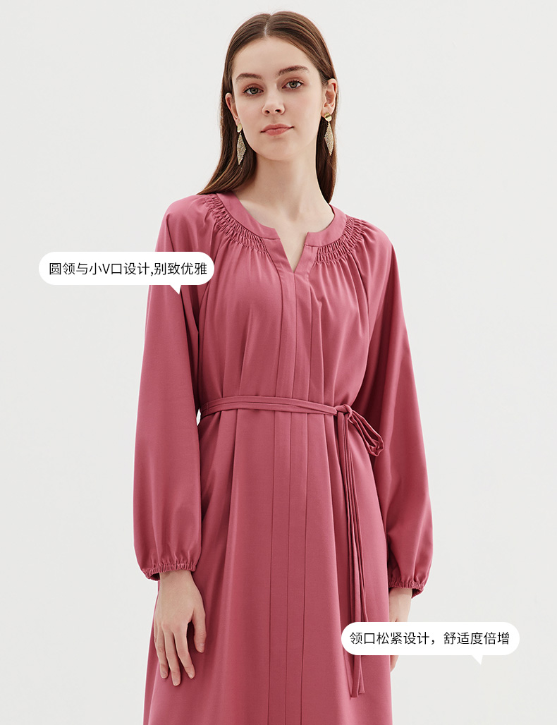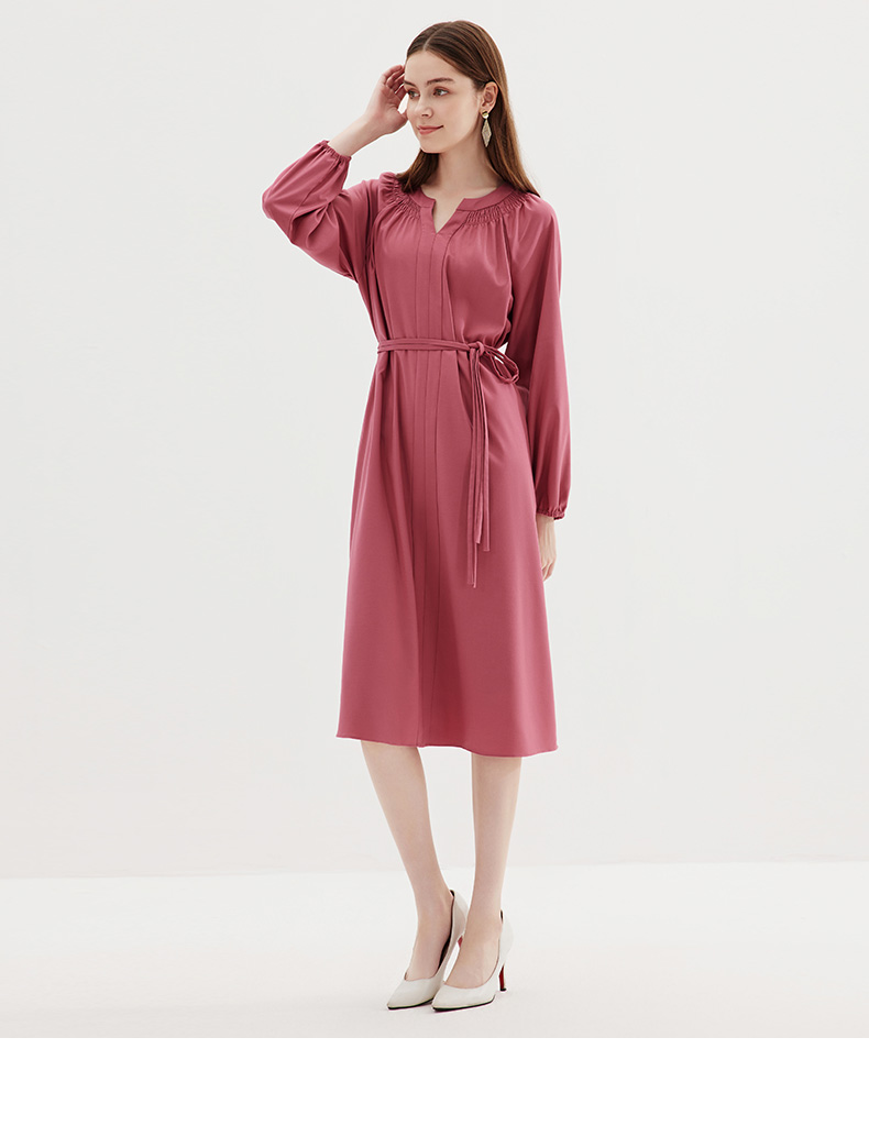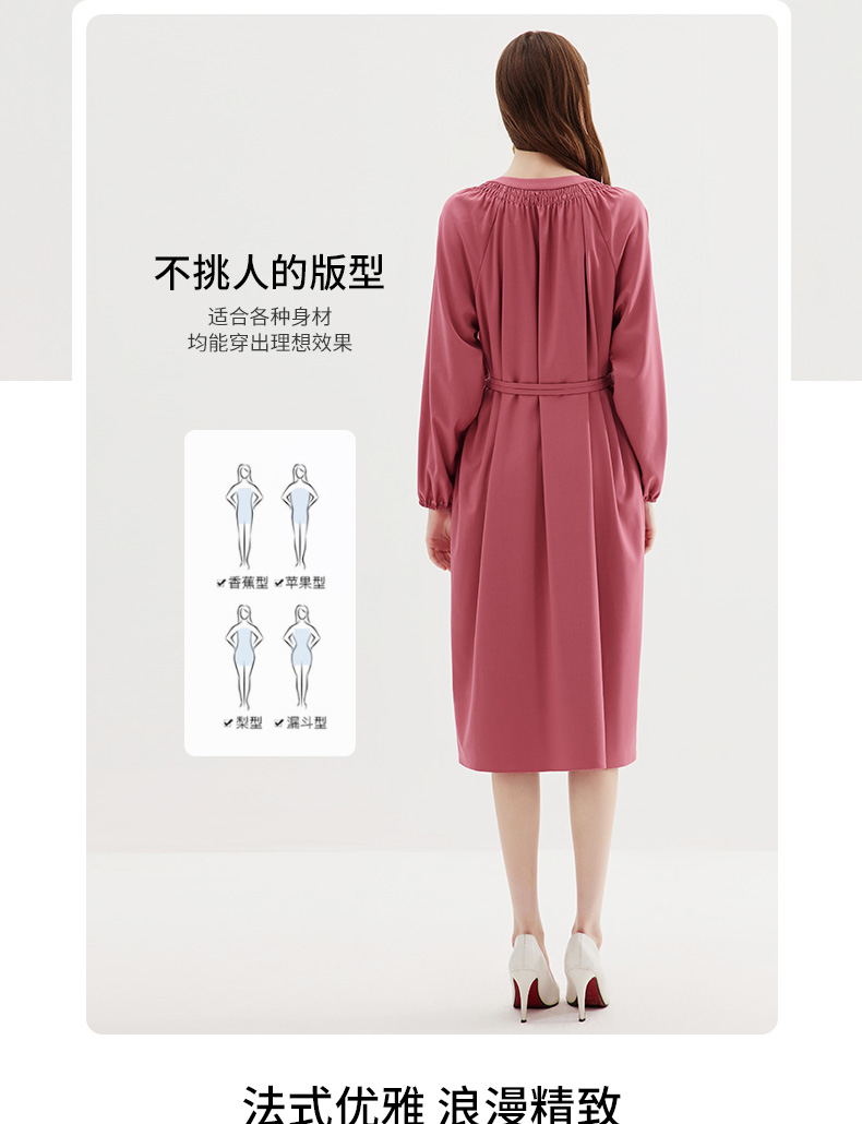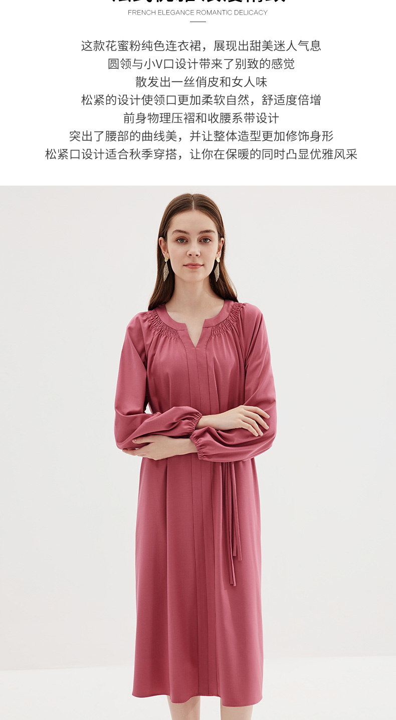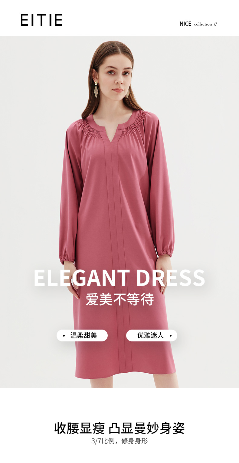 EITIE爱特爱秋季新款舒适系带显瘦百搭通勤连衣裙C2307258