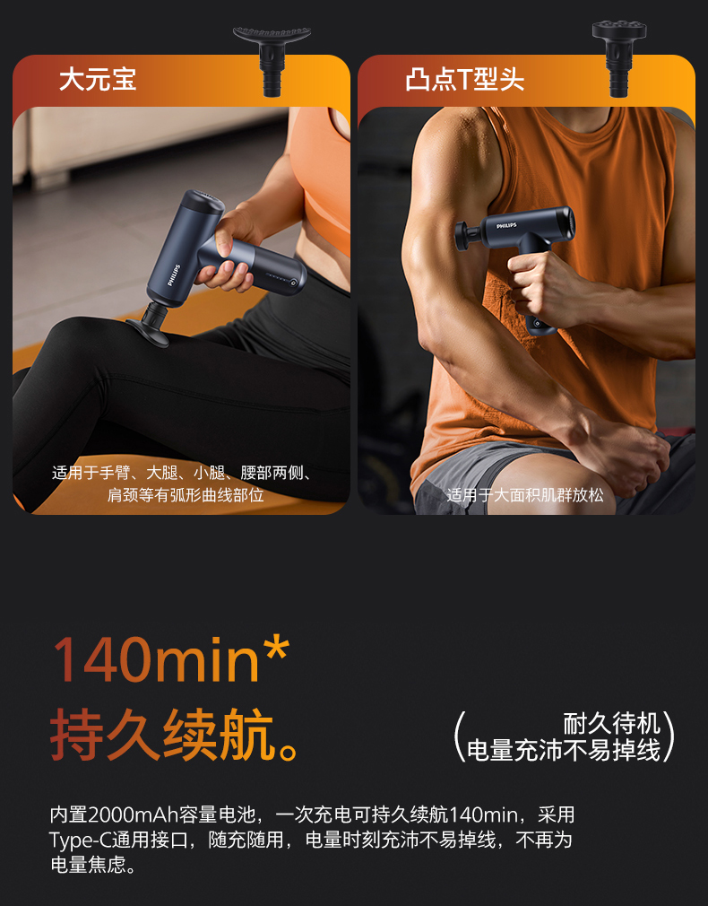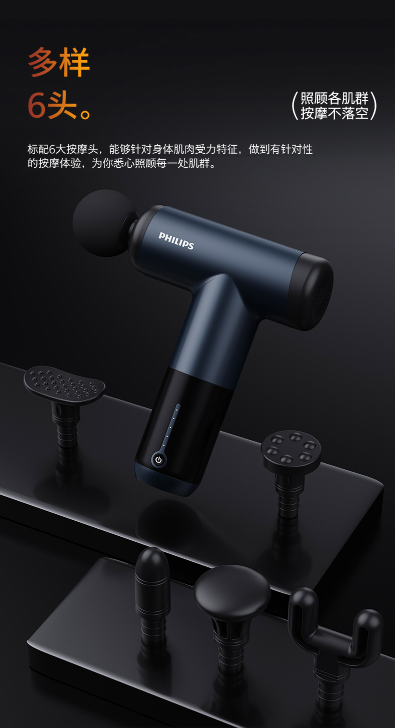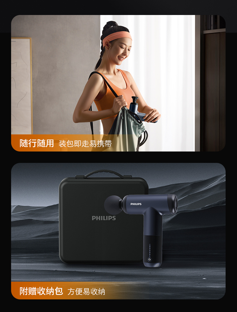 PHILIPS飞利浦mini肌肉按摩筋膜枪【增配礼盒版】(PPM7304DB)