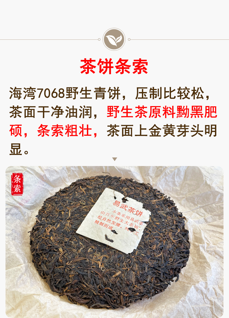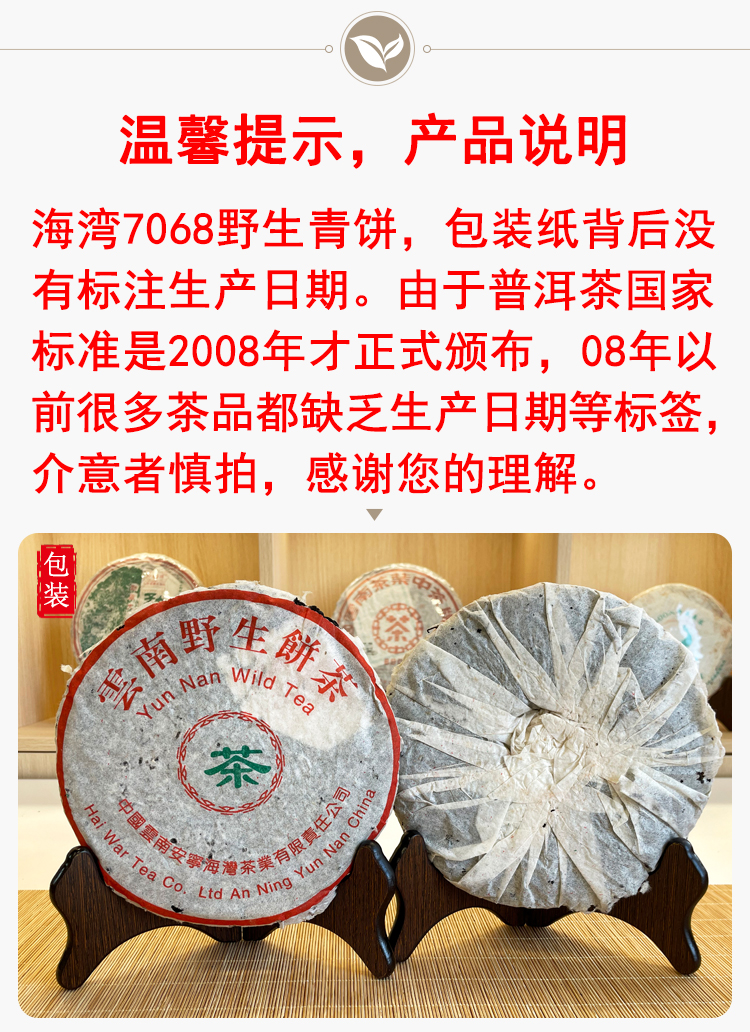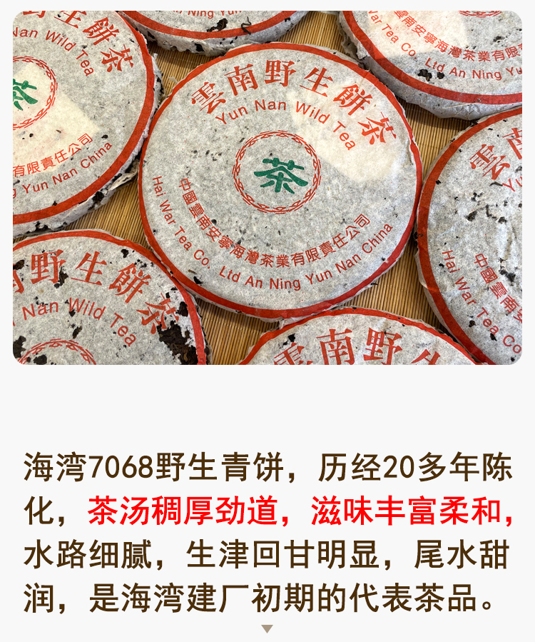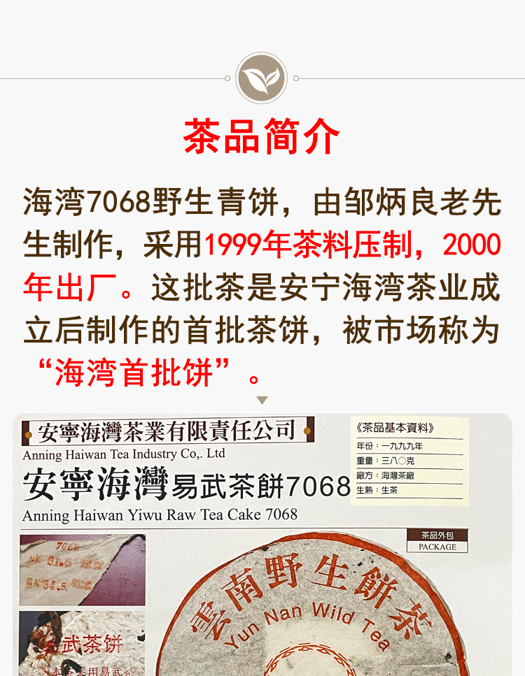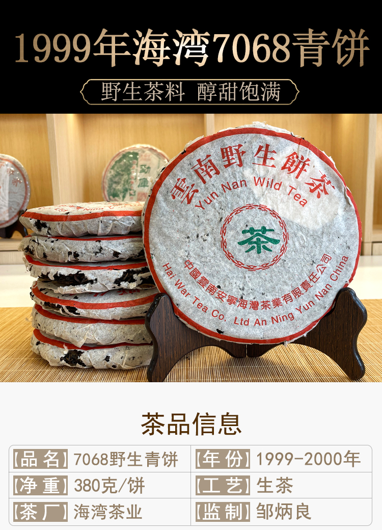 1999年(资料与市场都按这个年份,更准确应该是1999年筹备2000年出厂)海湾茶厂建厂首批产品7068青饼普洱老生茶 红版绿印野生饼茶批次 邹炳良先生倾心之作 干仓真品甜柔茶香回甘好 单片标价
