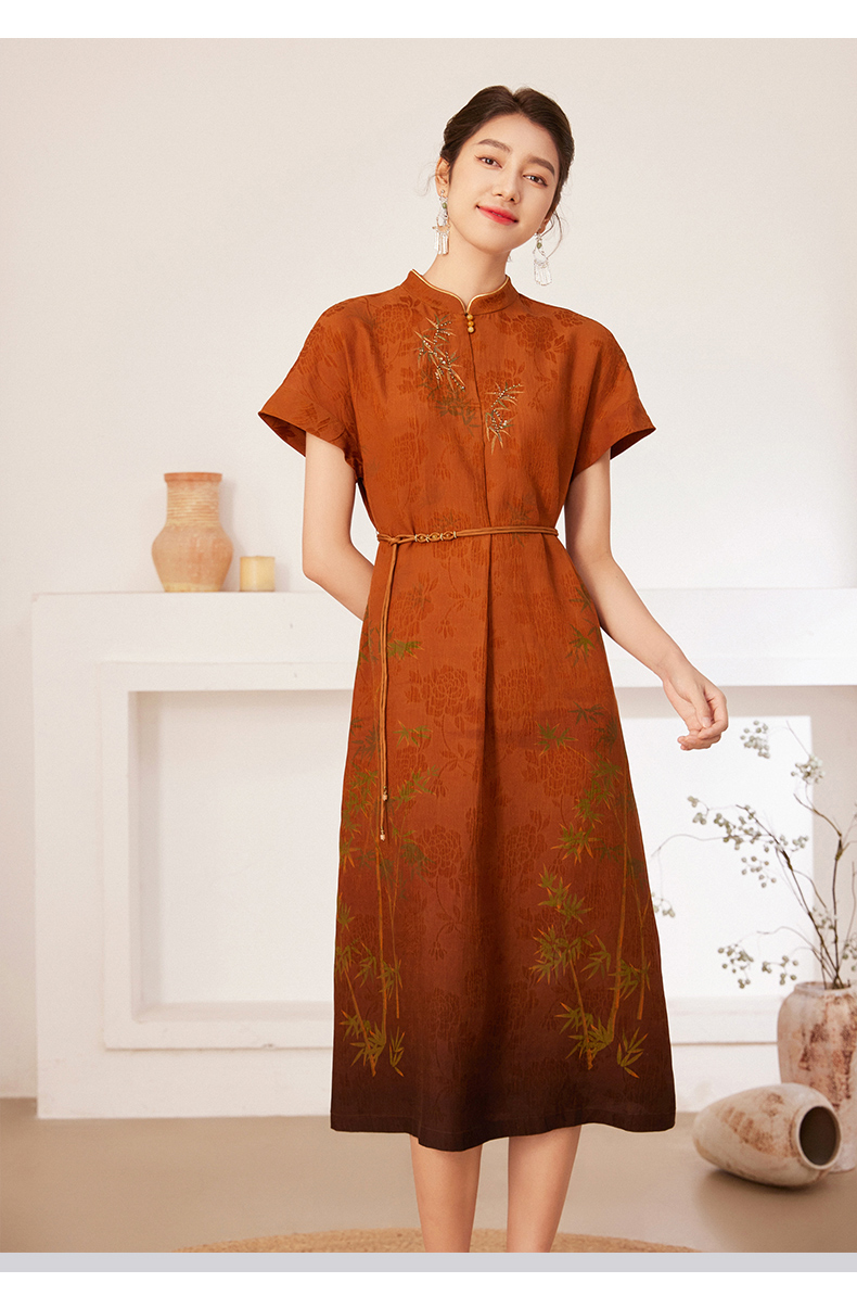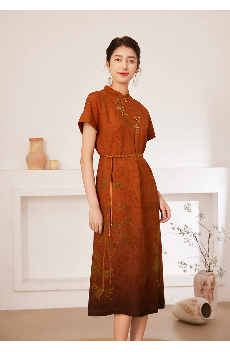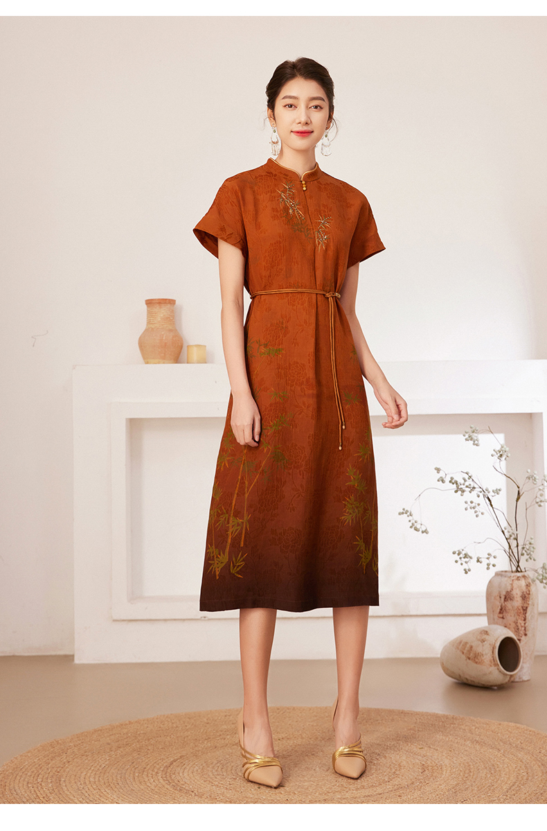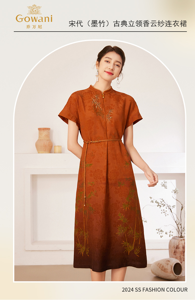【宋代墨竹】【香云纱】乔万尼100%真丝连衣裙古典立领国风收腰款EM2E900
