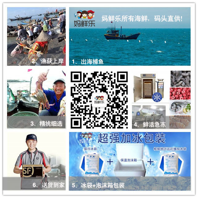 妈鲜乐的海产品,都是直接把渔船、养殖场、海钓者刚刚捕捞上岸的海产品,经过妈鲜乐设在码头的海鲜基地进行简单分类处理后,再急冻至零下-36°以下,然后用保温袋和泡沫箱打包,直接配送给消费者!