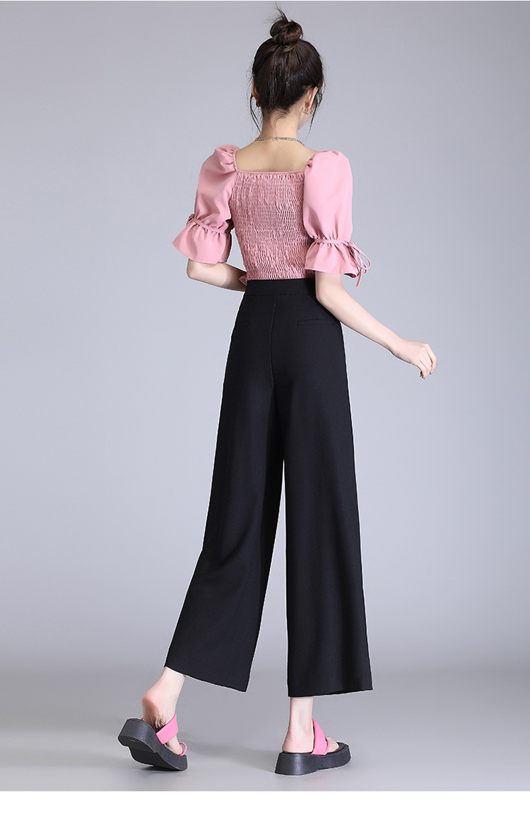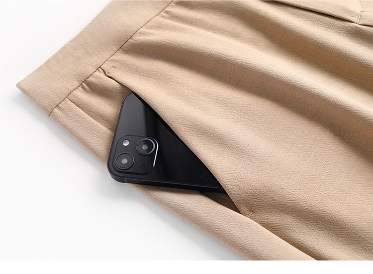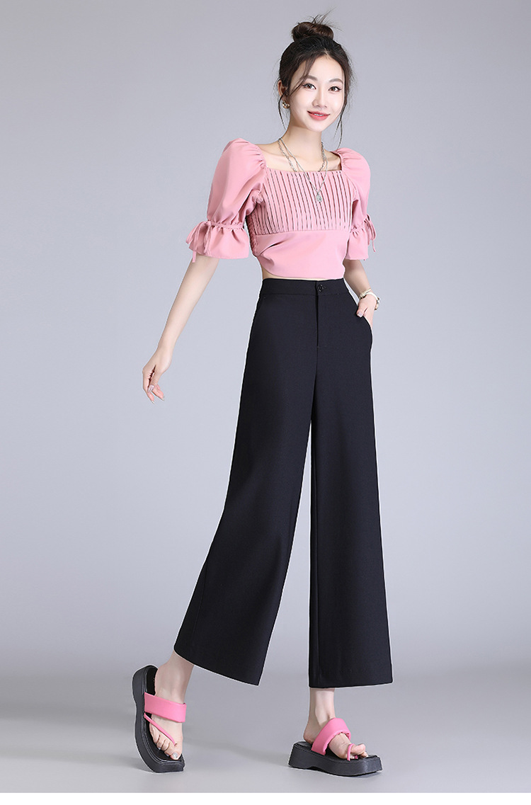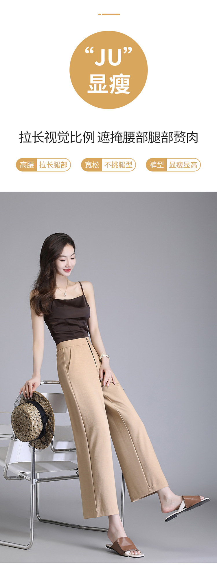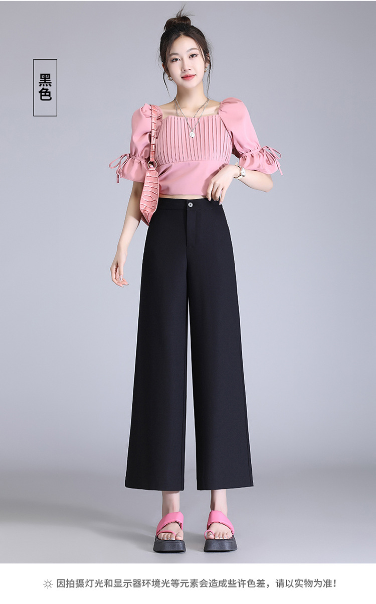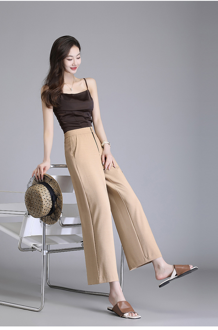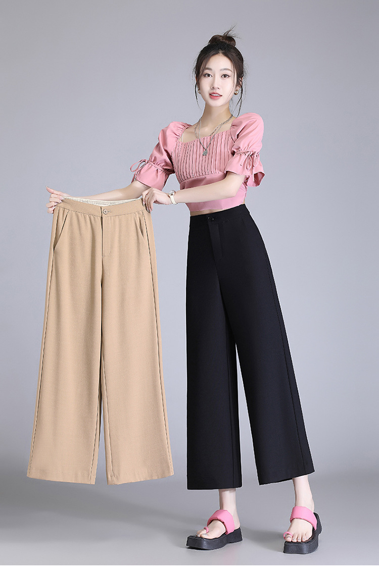 宽松休闲裤直筒阔腿裤妈妈装高腰扣子长裤MYX-8077