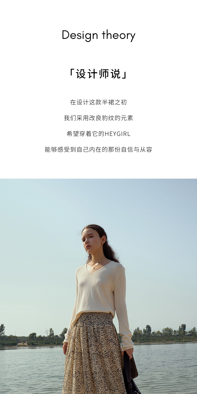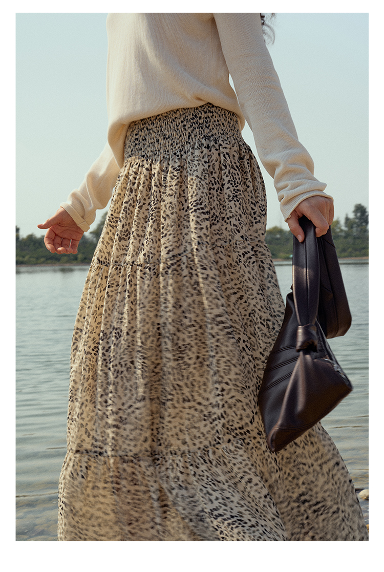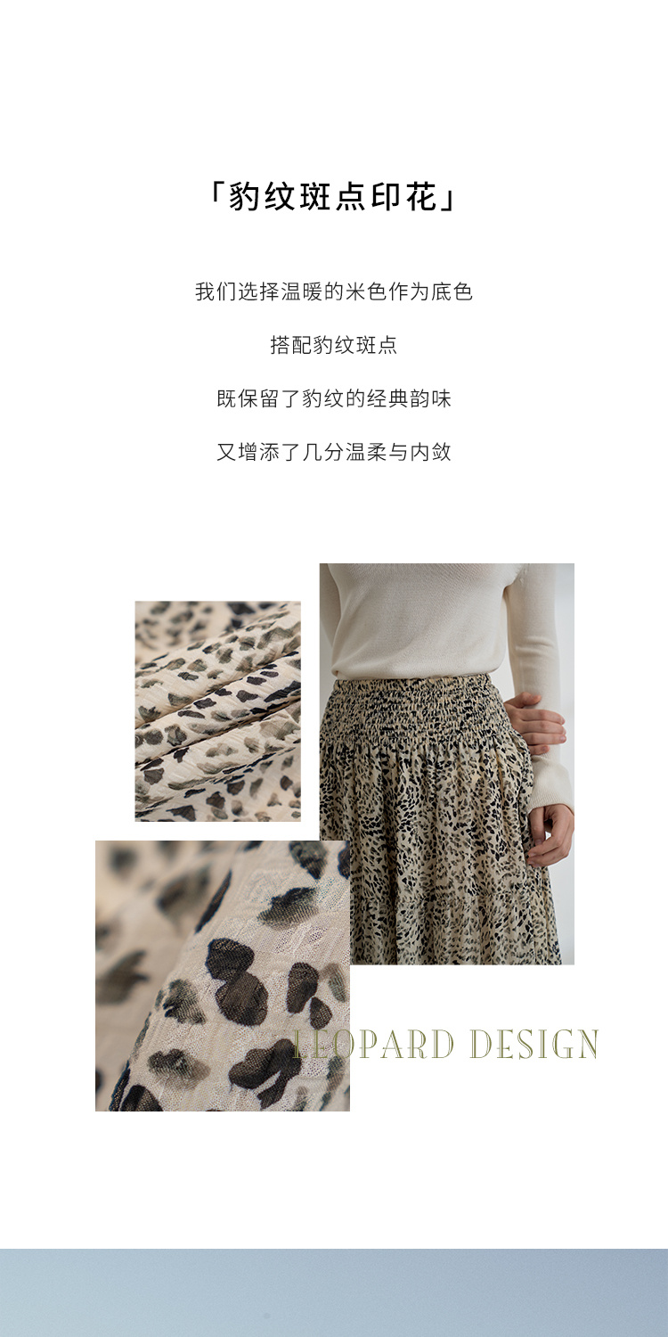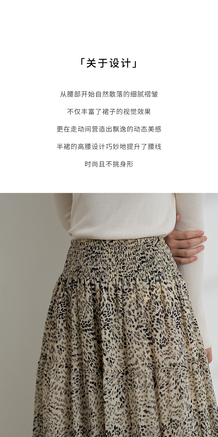 HeyDress豹纹半身裙女春秋高腰打揽显瘦设计感A字半裙小众碎花裙